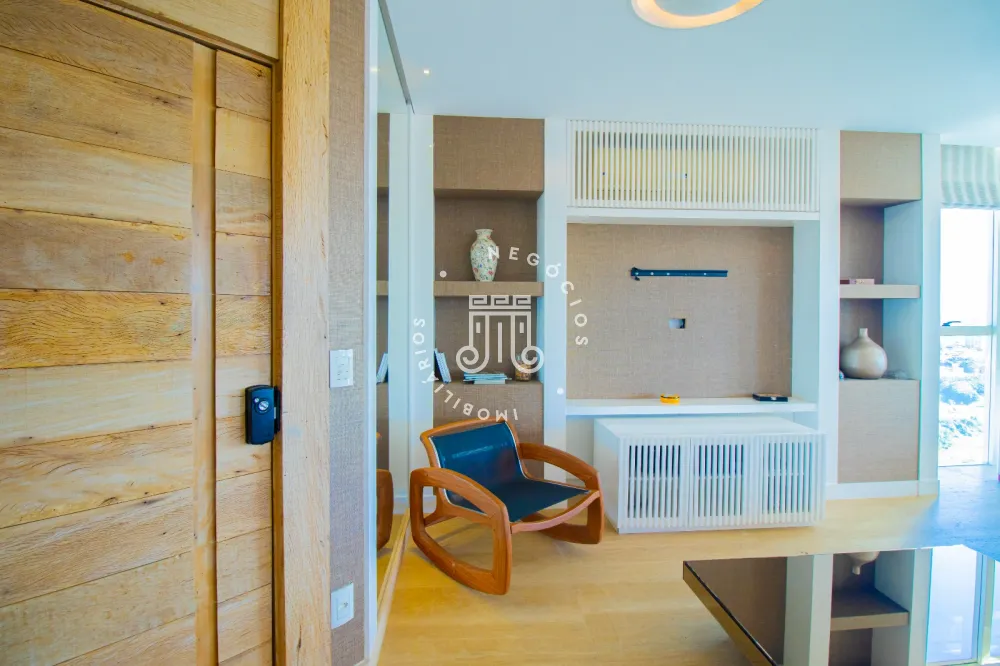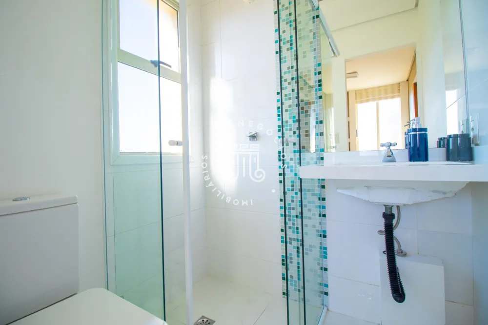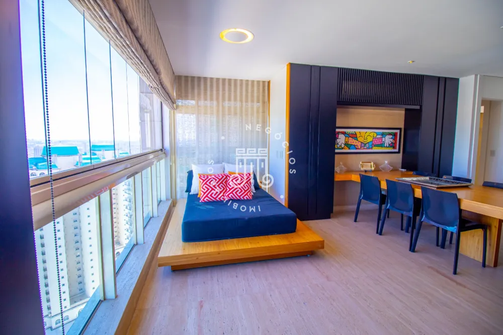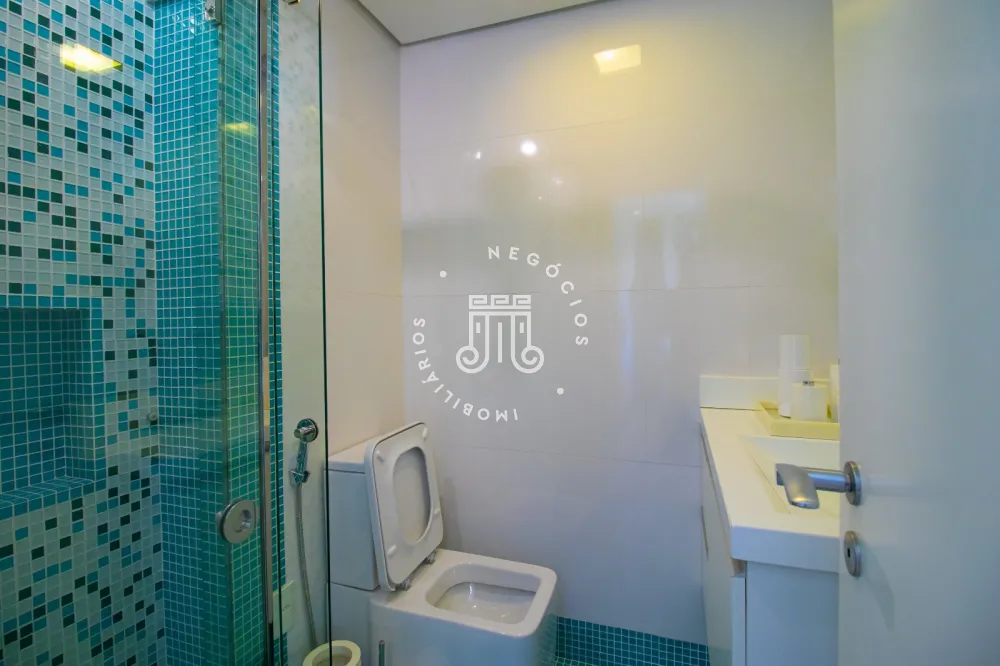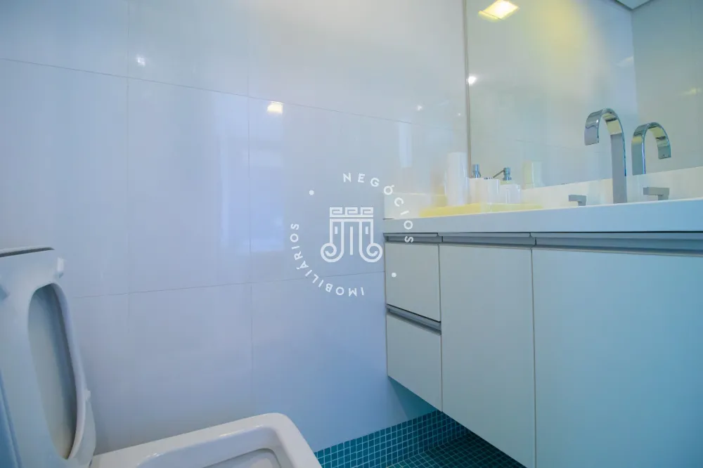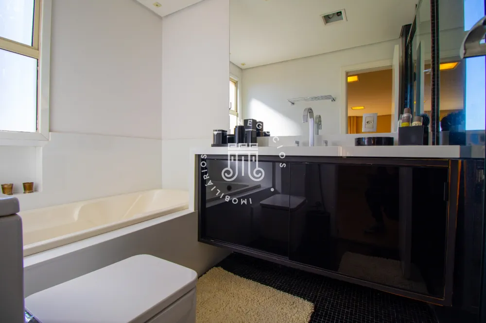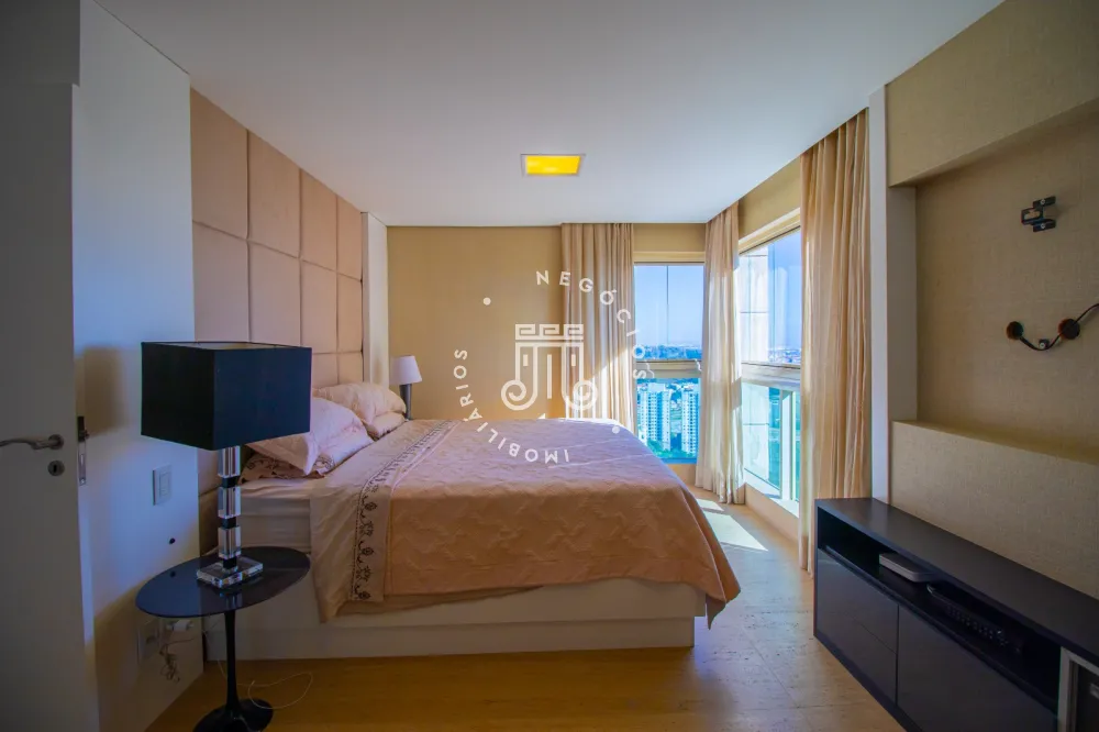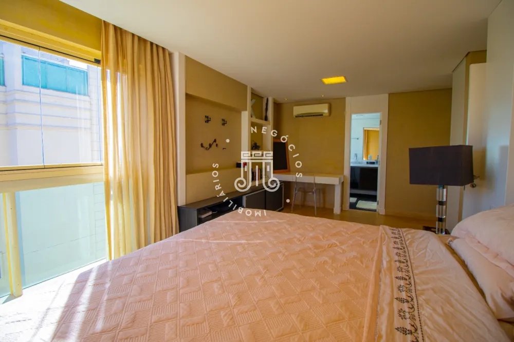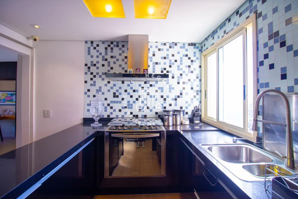 Diferenciais desta cobertura são 04 vagas cobertas, apenas 2 coberturas por andar, vista panorâmica de todos os ambientes, todo o revestimento de piso da cobertura é de mármore travertino, bancadas e pias de silestone e ônix, marcenaria em todos os ambientes, ar condicionado em todos os ambientes, 02 cozinhas equipadas e completas, som ambiente em todos os andares na área social e iluminação em led.