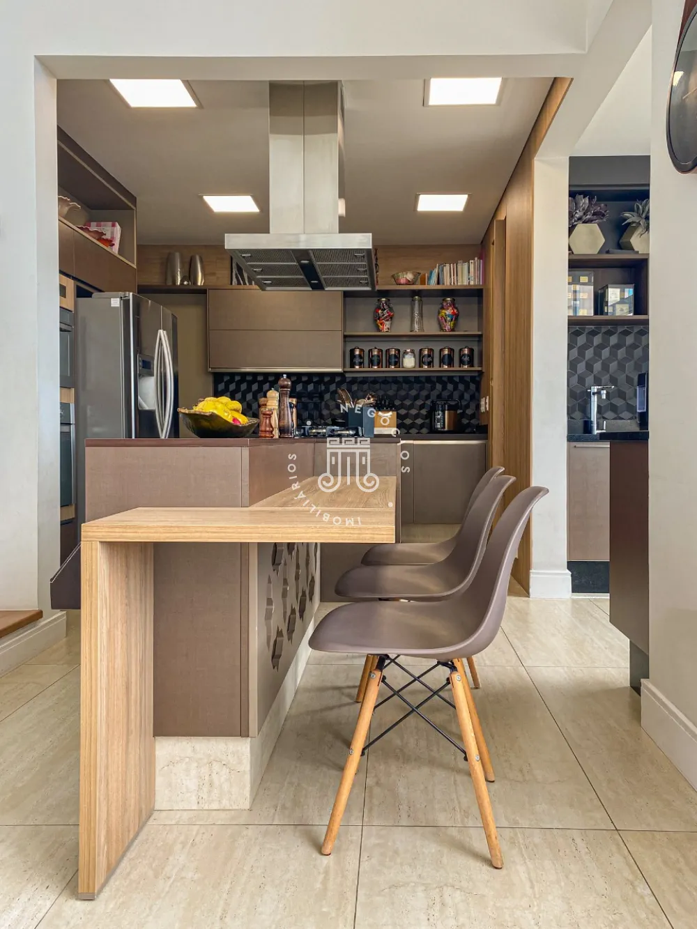 A cobertura é muito bem decorada e equipada com móveis de alta qualidade. A cozinha é espaçosa e moderna, com armários planejados e eletrodomésticos de última geração. A sala de estar é ampla e confortável, com sofás e poltronas macias e uma TV de tela plana.