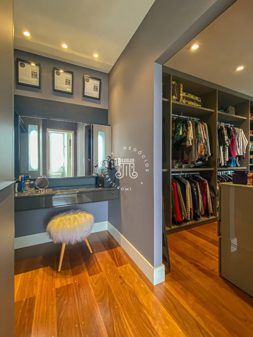 04 suítes, sendo uma suíte máster com closet e com sacada ampla.