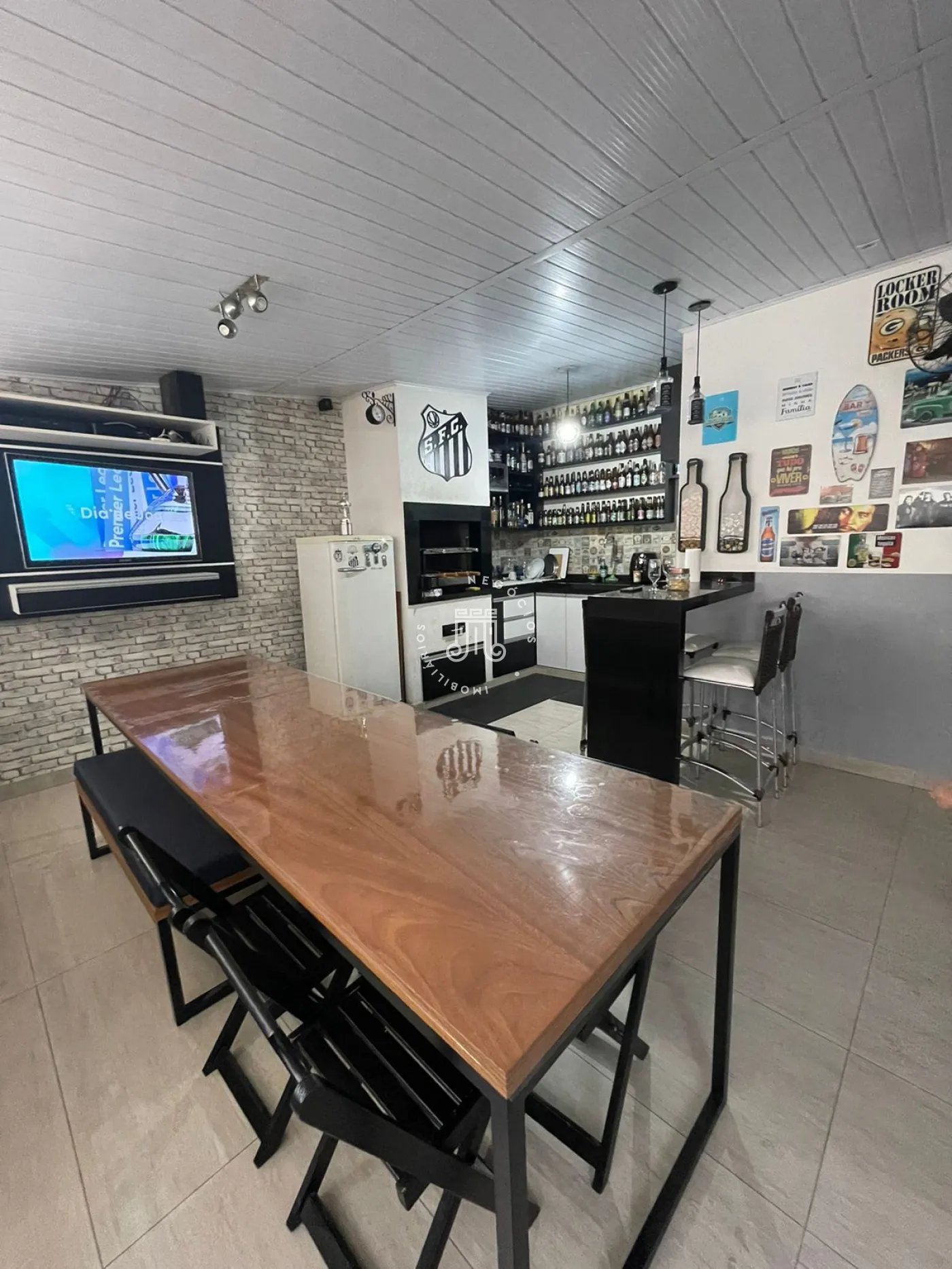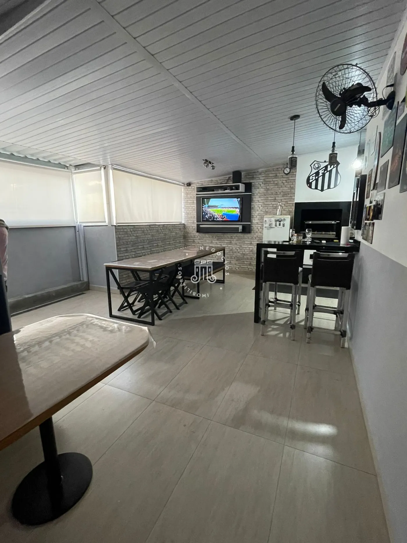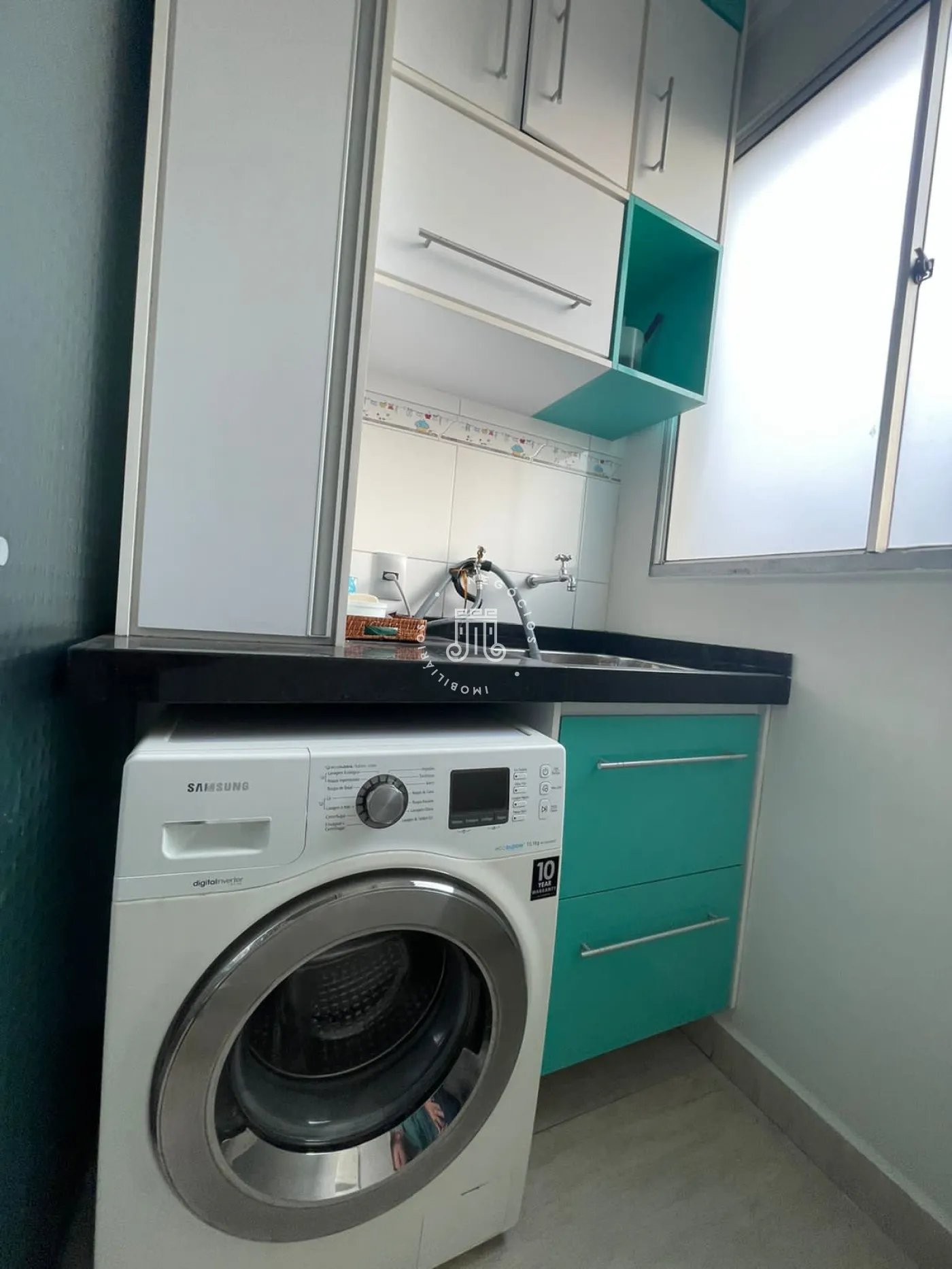 O imóvel possui 103 m² com 02 dormitórios, sendo 01 suíte com planejados, cama, gabinete e box de vidro, o segundo quarto com cama e cômoda, sala de estar com painel, Tv e 2 banquetas, cozinha com planejados, geladeira, fogão e micro-ondas, 2 banheiros sociais, área de serviço com planejado e maquina de lavar, e área gourmet com mesa de madeira com banco estofado e 4 cadeiras, mesa de marmore com 4 banquetas e canto alemão e Tv.
