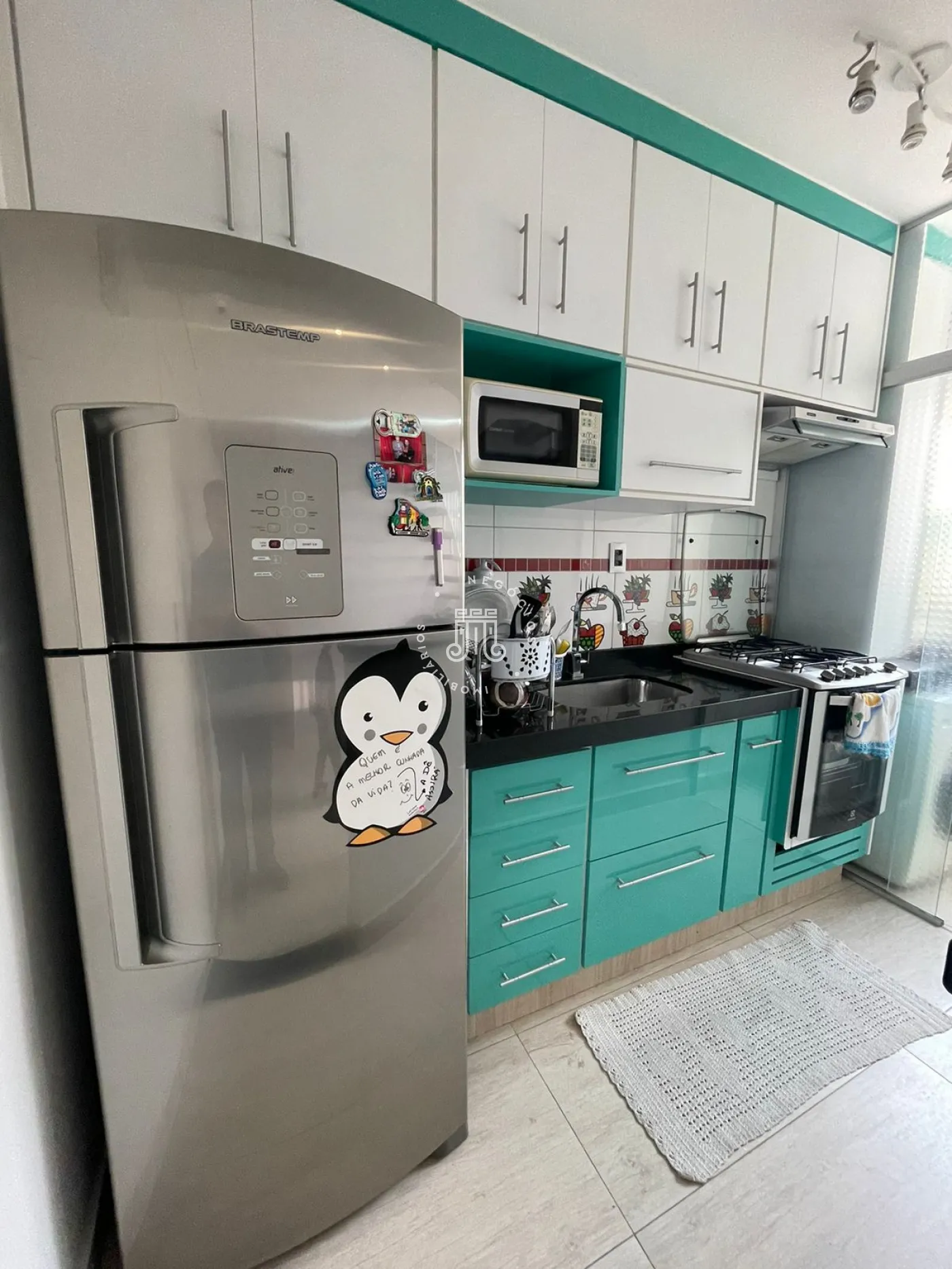 O condomínio oferece elevador, piscina, salão de festas, playground e portaria 24hrs.