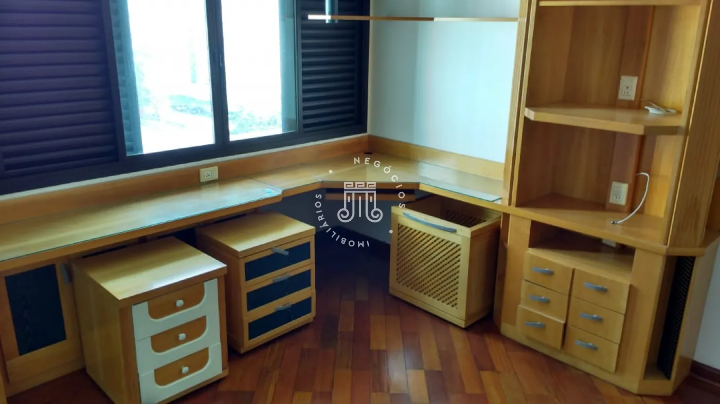 Com uma planta generosa e bem distribuída, este imóvel oferece: 4 suítes com conforto e privacidade em cada um dos quartos, todos com armários planejados, 4 salas com um amplo ambientes para sala de estar, jantar, TV e um espaço adicional para suas necessidades, todas com sacadas. Lavabo com praticidade para seus convidados, cozinha ampla espaço perfeito para preparar deliciosas refeições, equipada com armários. Área de serviços ampla, com banheiro de serviço e escritório, ambos com sacada. Armários presente em todos os ambientes, garantindo organização e espaço.