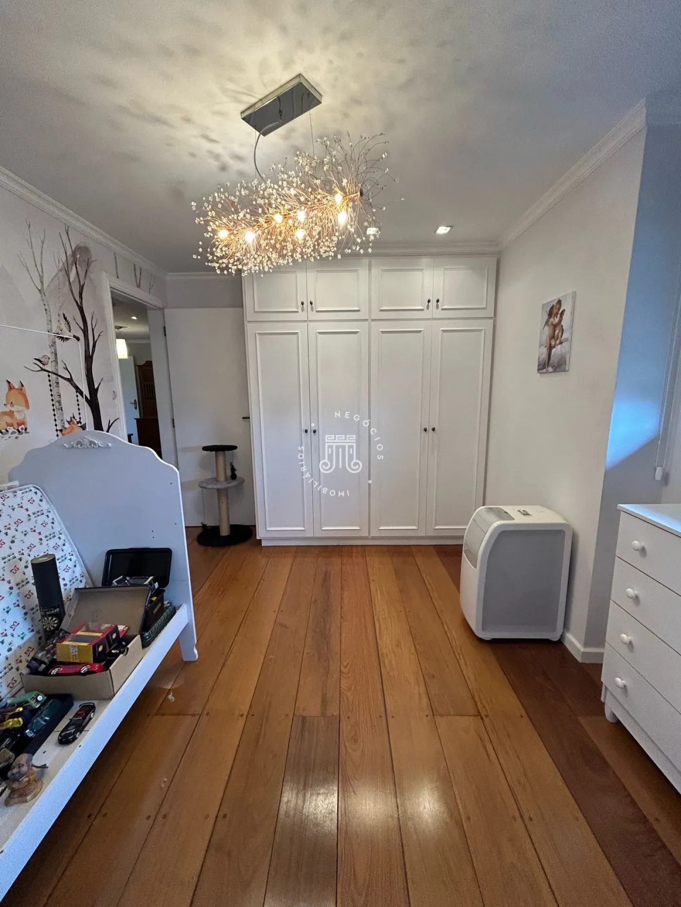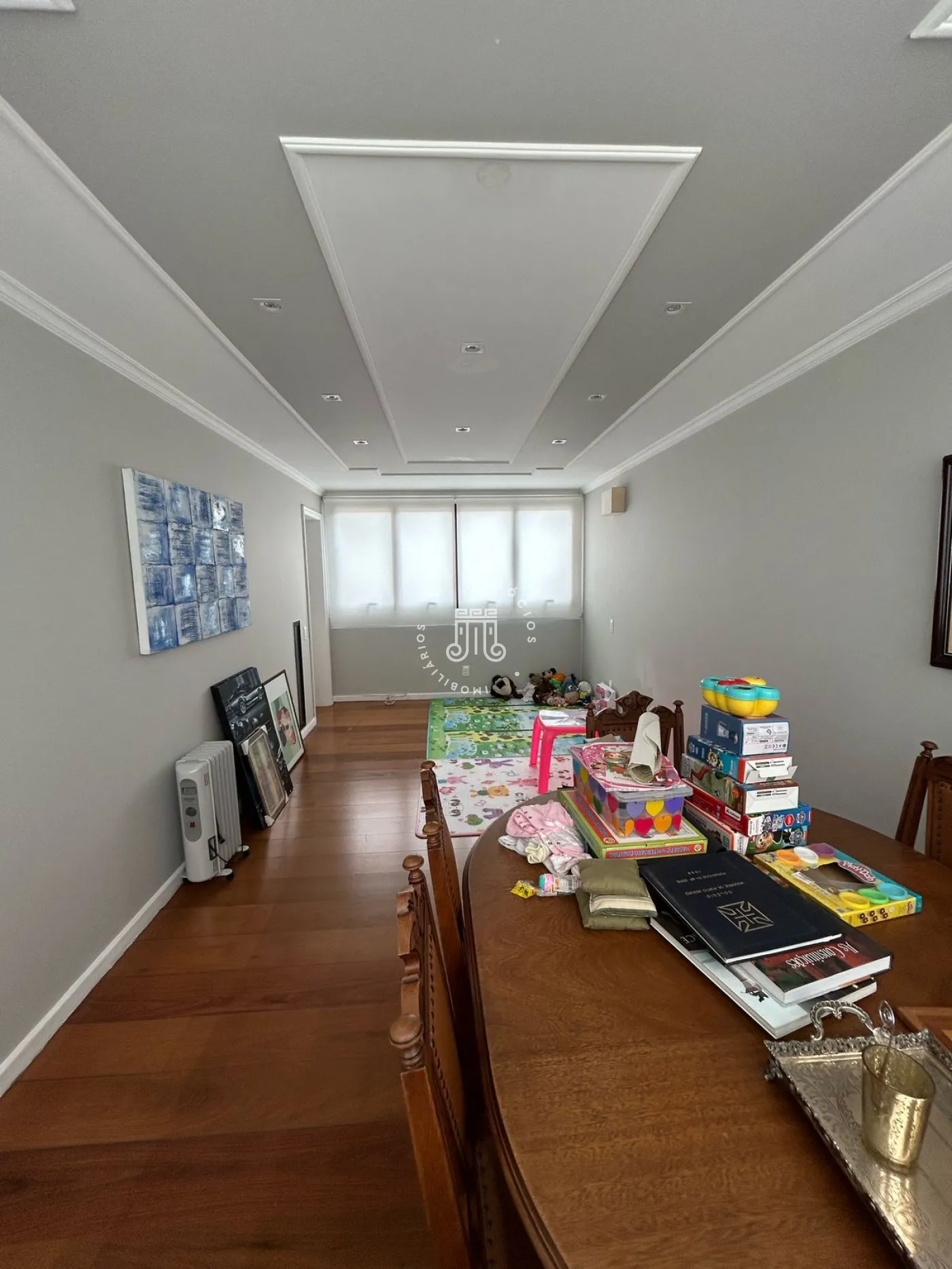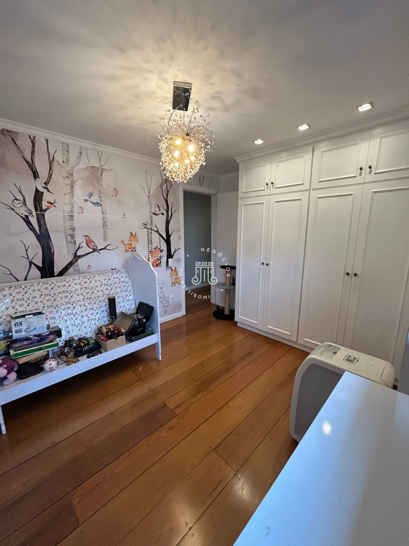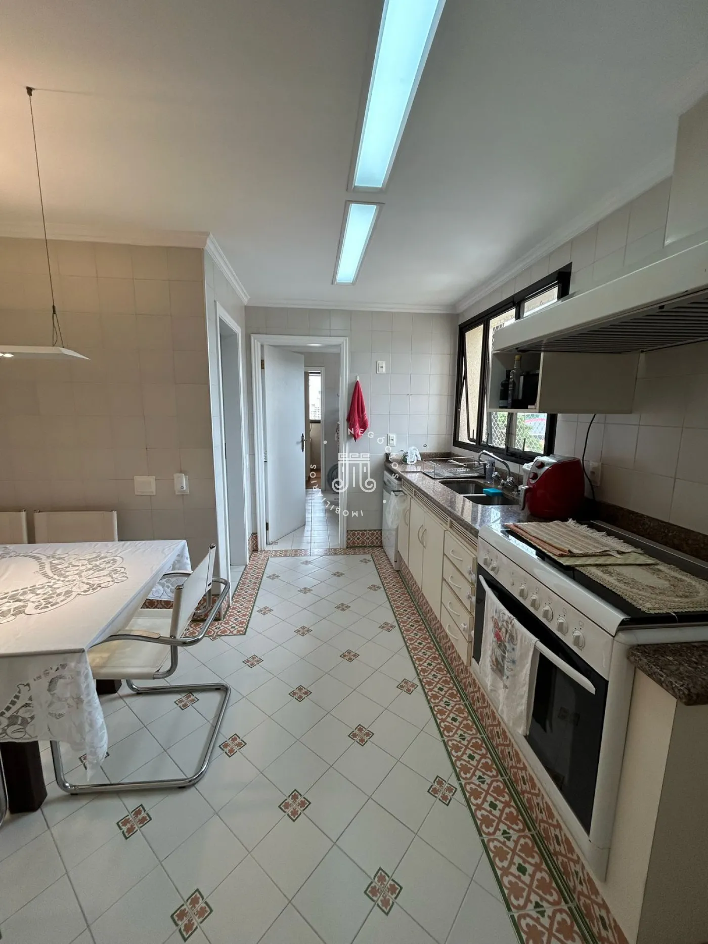 O apartamento possui 4 suítes, ante sala, sala de jantar, sala de estar, (a suíte principal e a sala de estar contam com ar condicionado), 1 banheiro na área de serviço, 1 lavabo, dispensa, elevador privativo, 4 vagas de garagem. O condomínio oferece salão de festas, academia, churrasqueira.