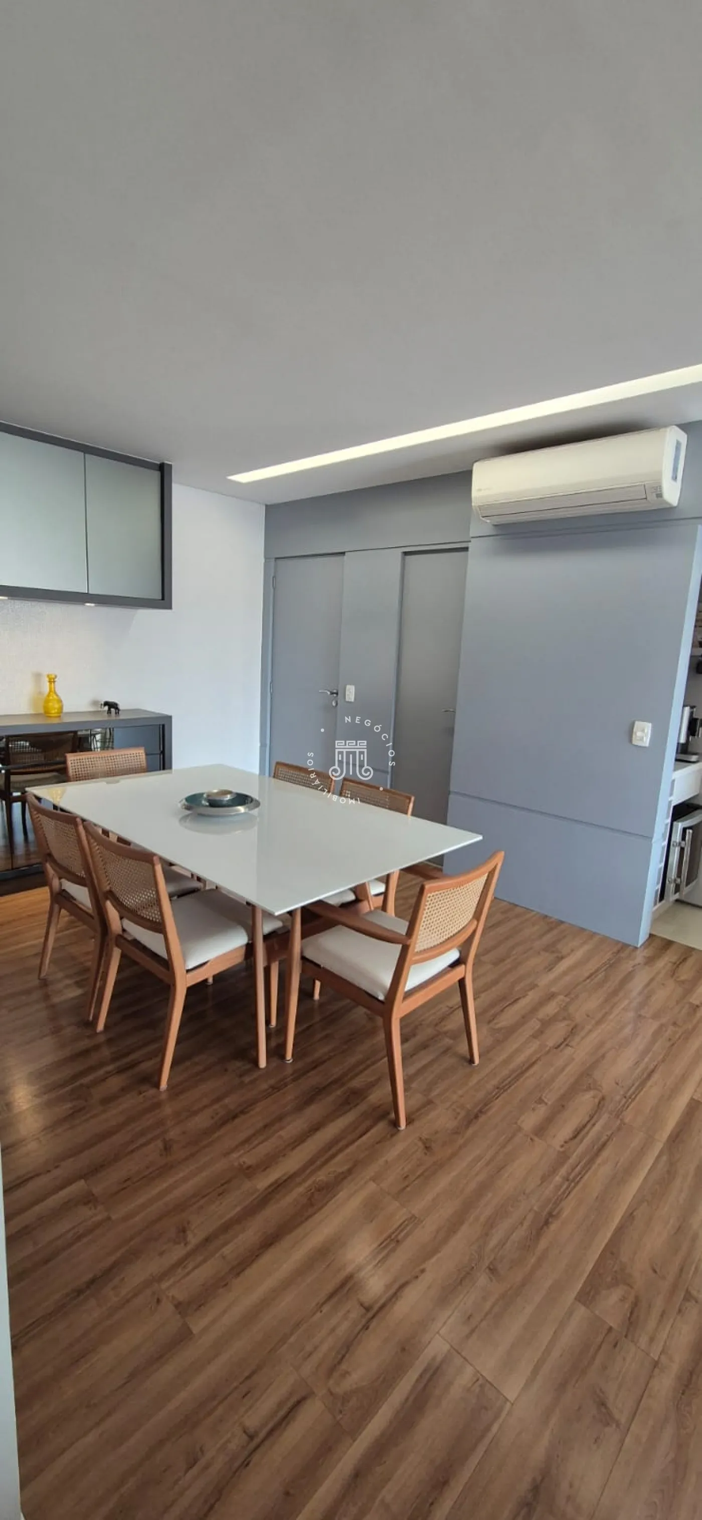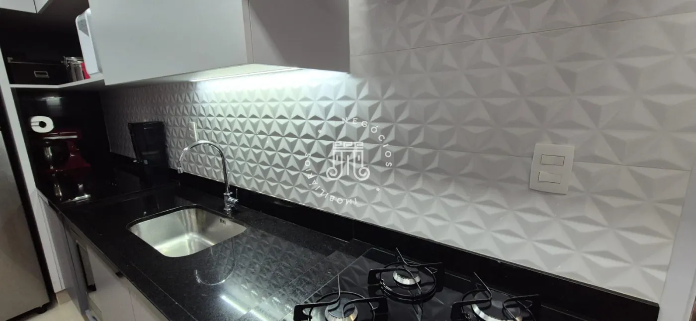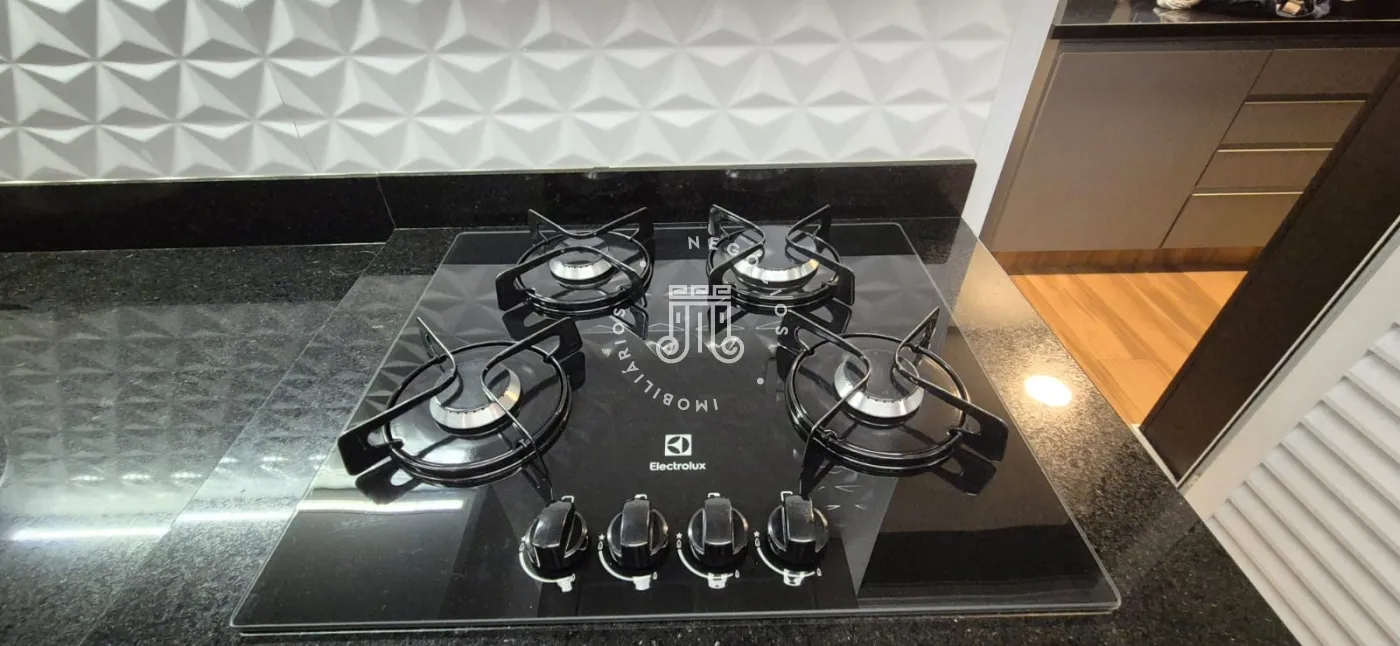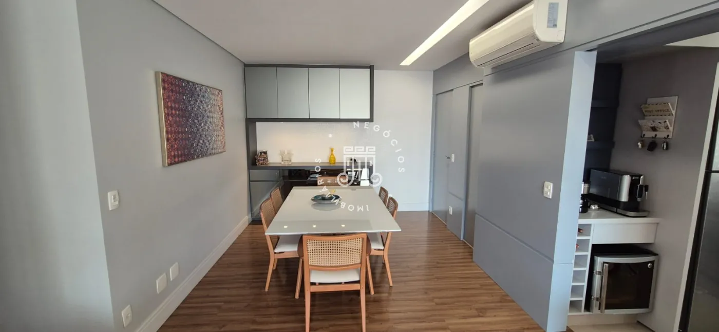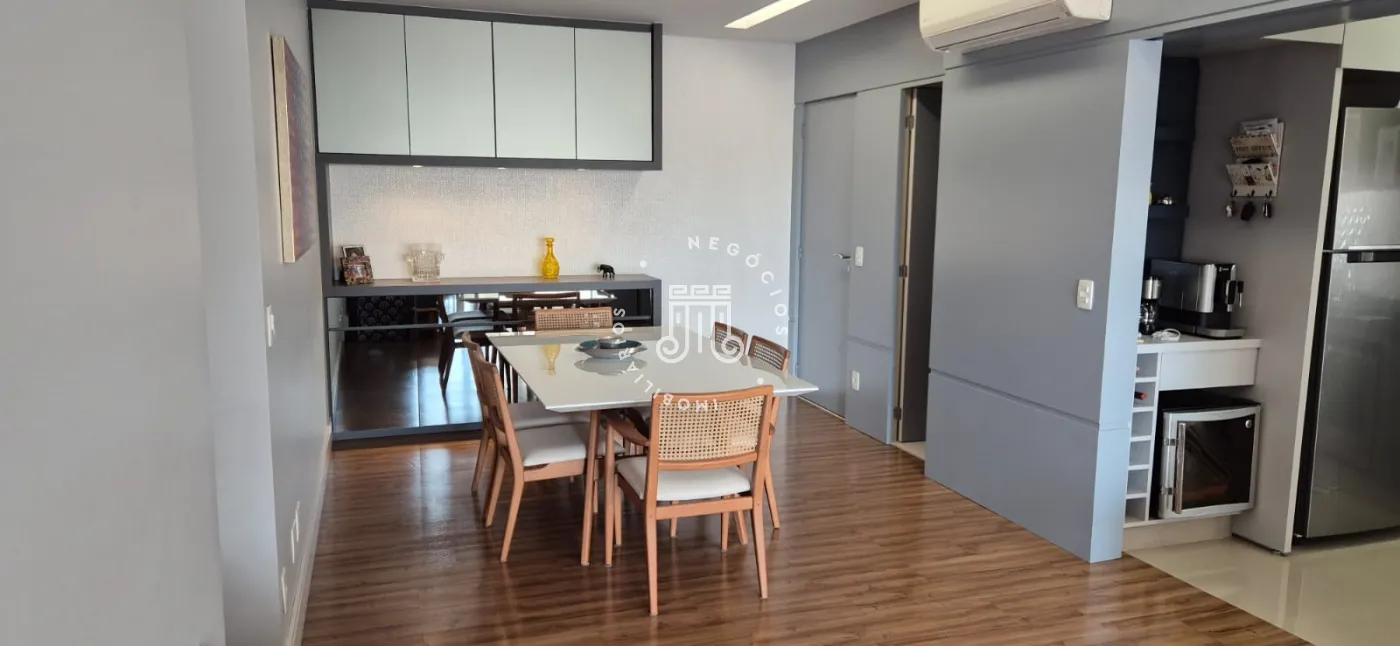O imóvel possui ar-condicionado na suíte máster, sala de jantar/TV e na sacada, além de três vagas de garagem.