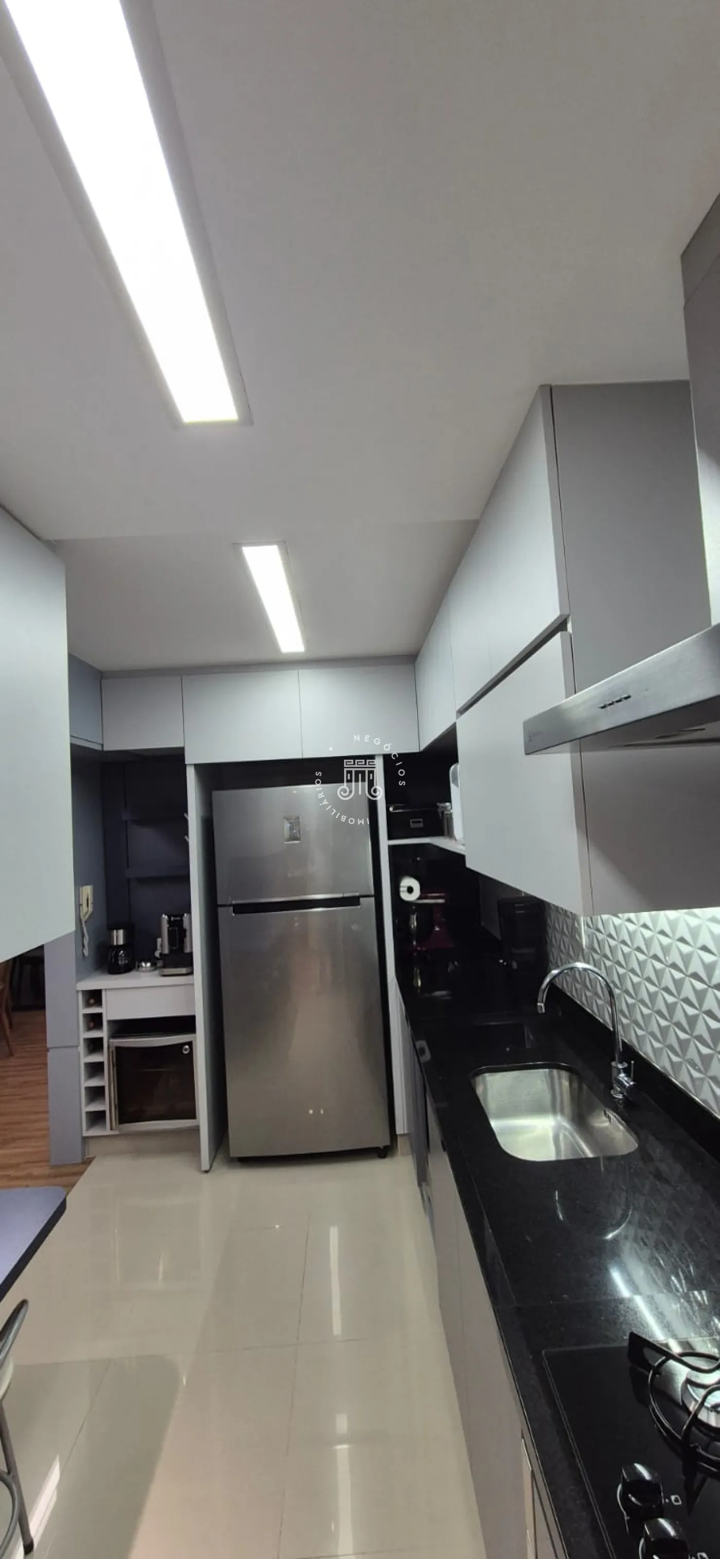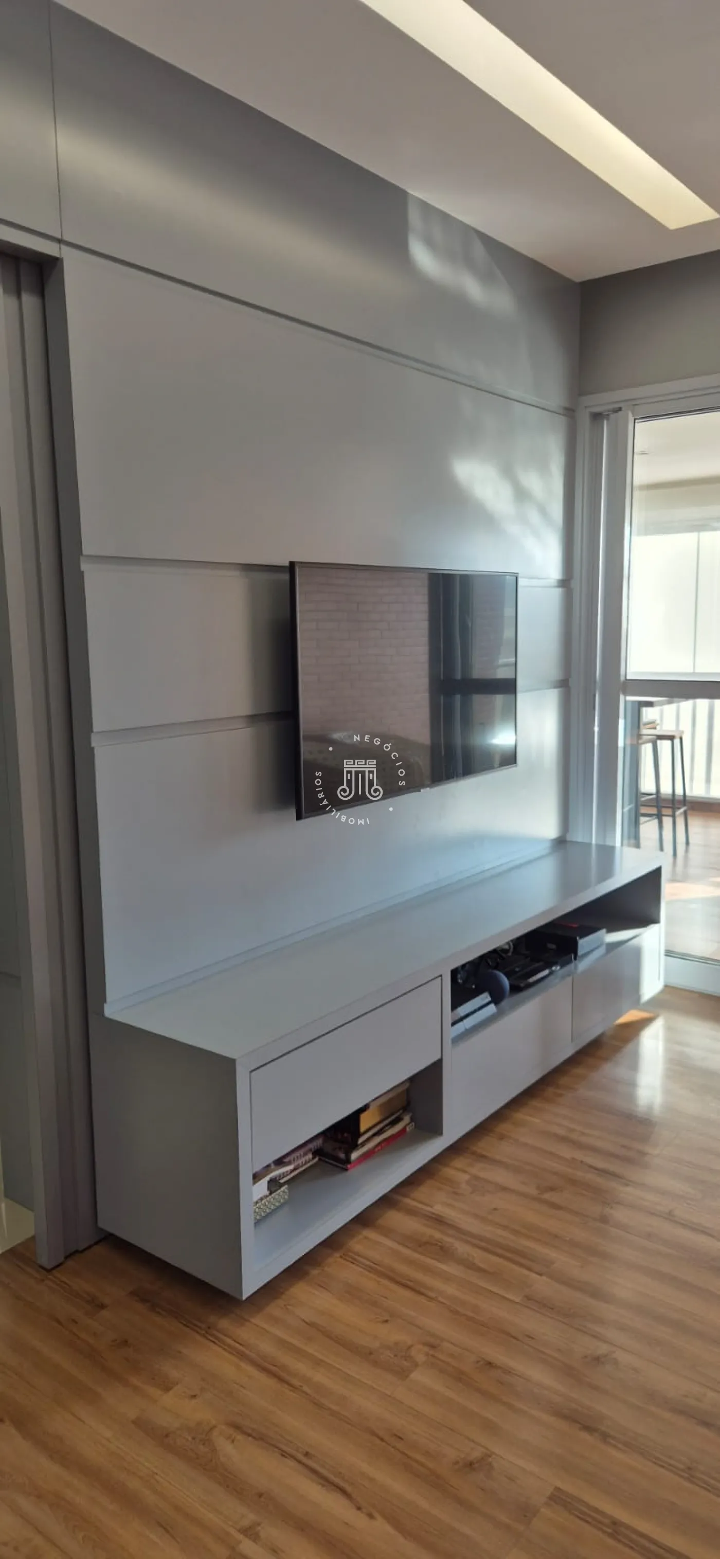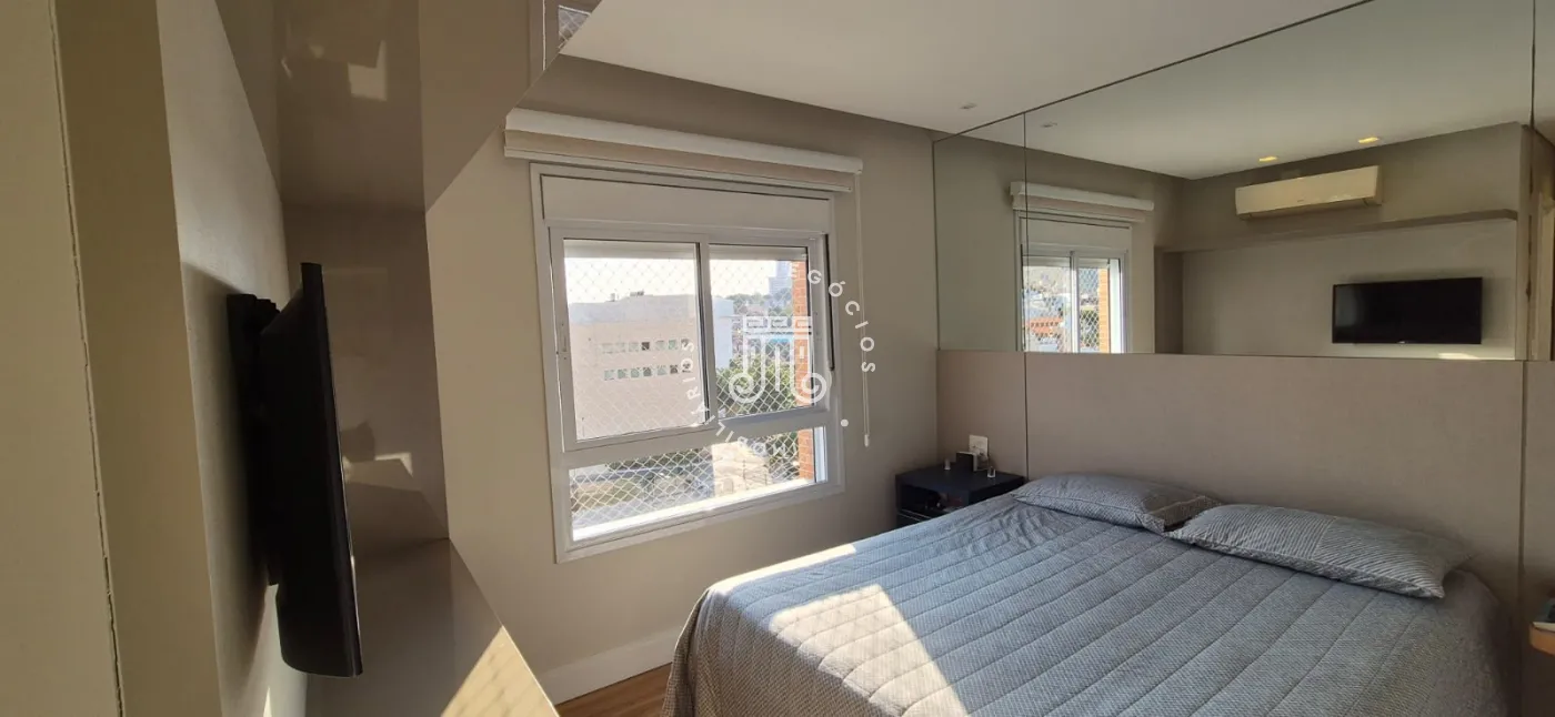 O imóvel possui ar-condicionado na suíte máster, sala de jantar/TV e na sacada, além de três vagas de garagem.
