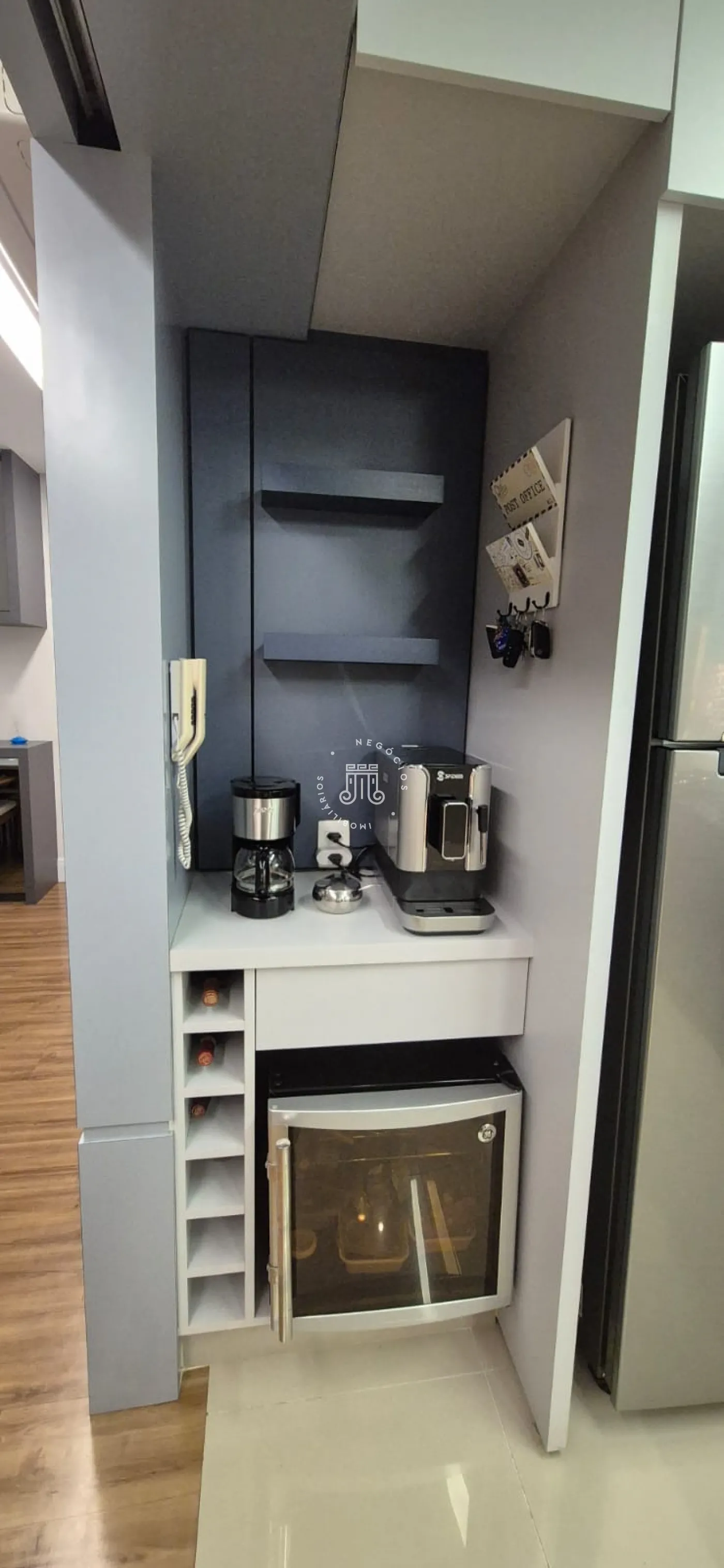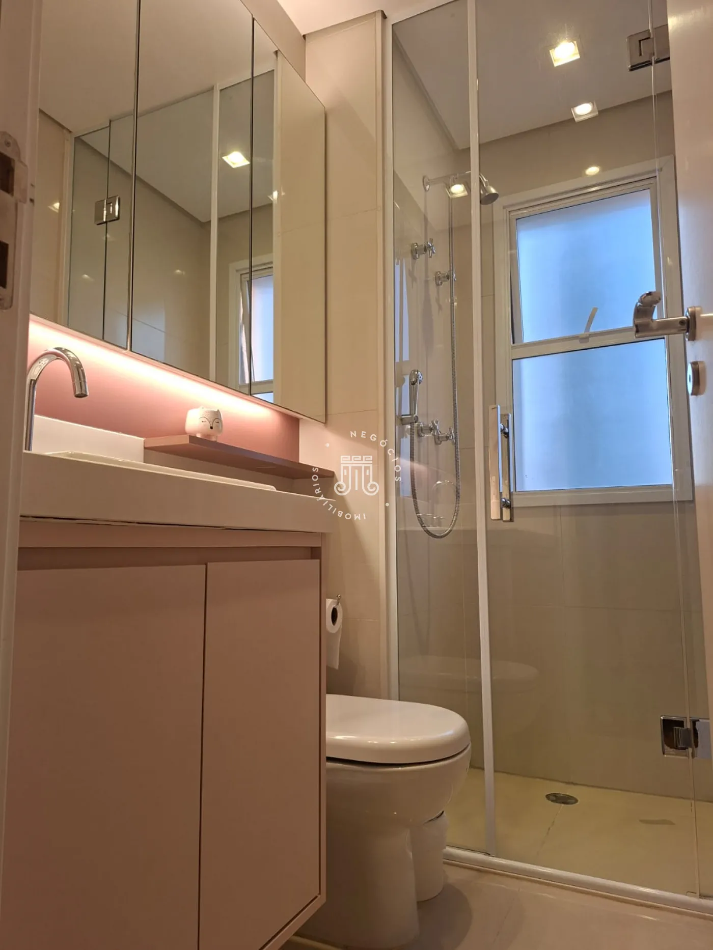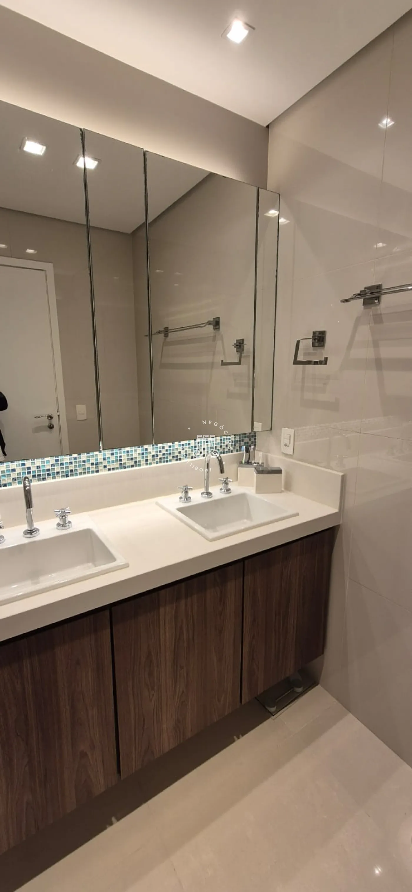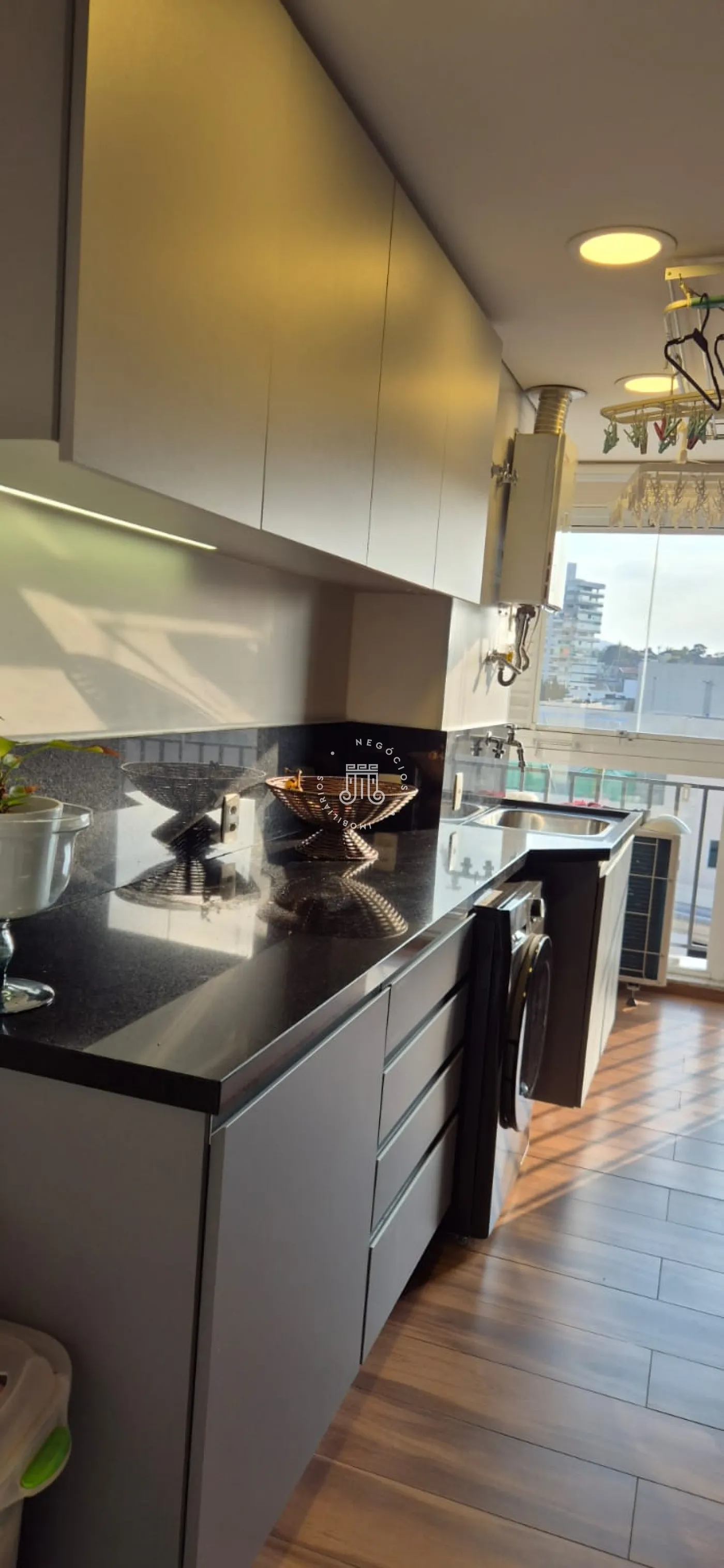 O imóvel possui ar-condicionado na suíte máster, sala de jantar/TV e na sacada, além de três vagas de garagem.
