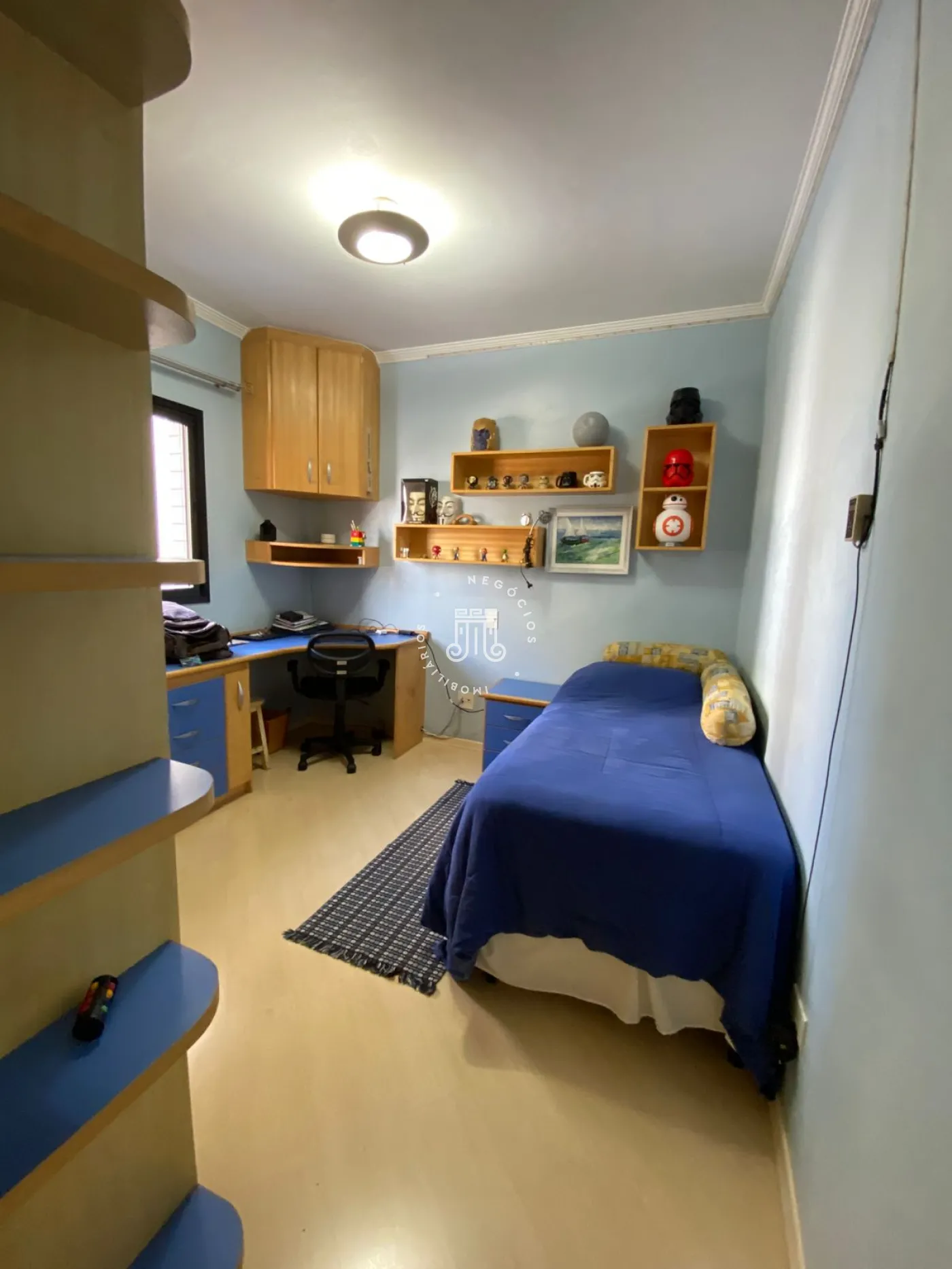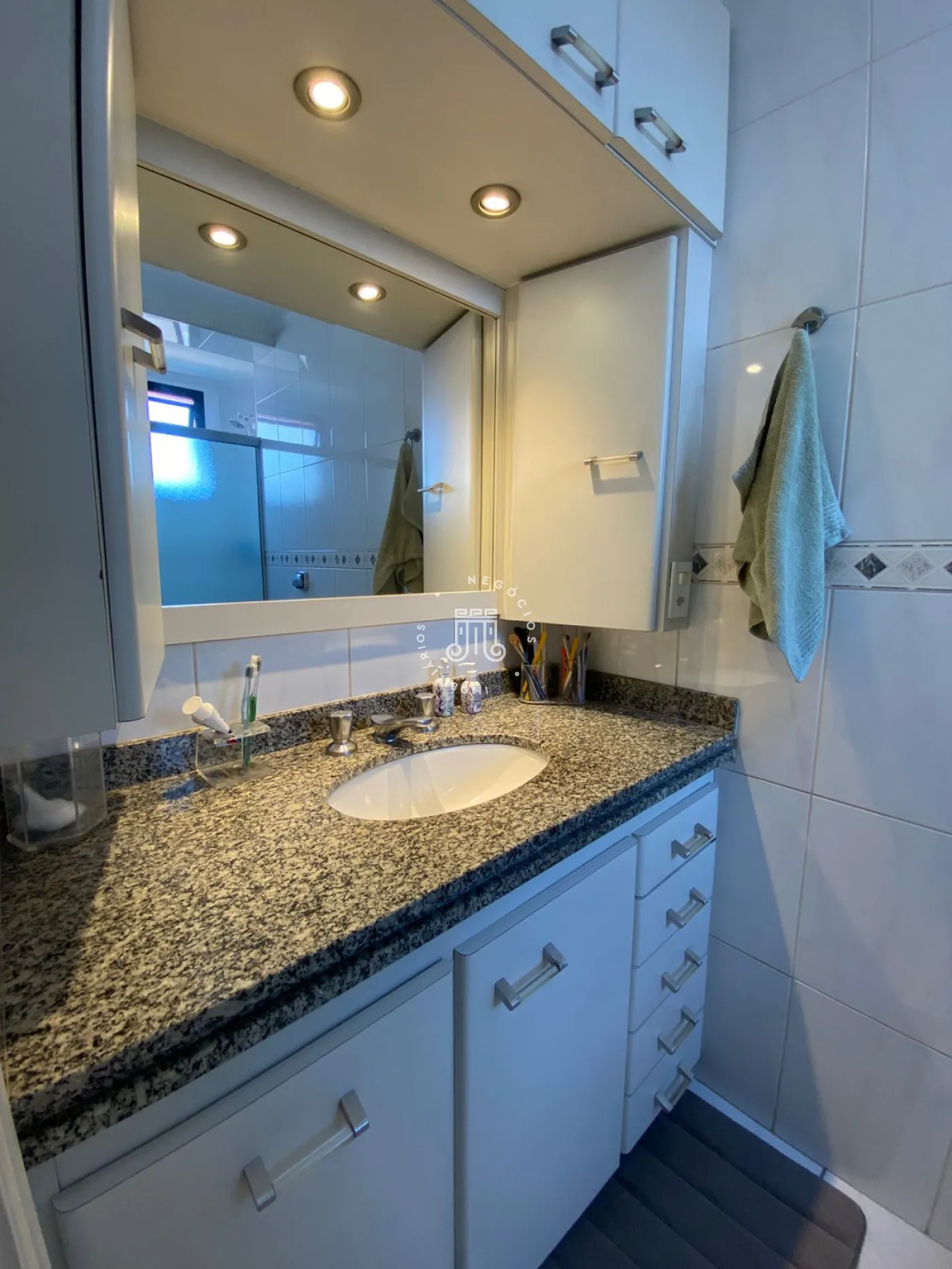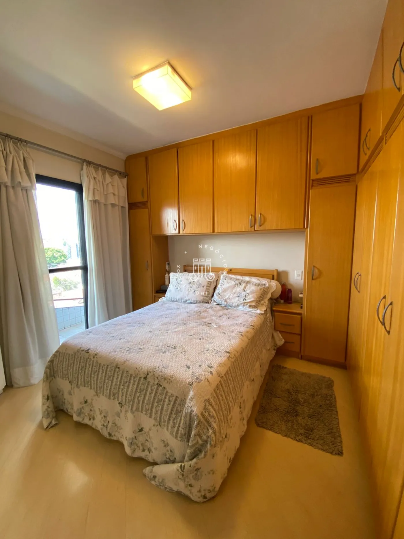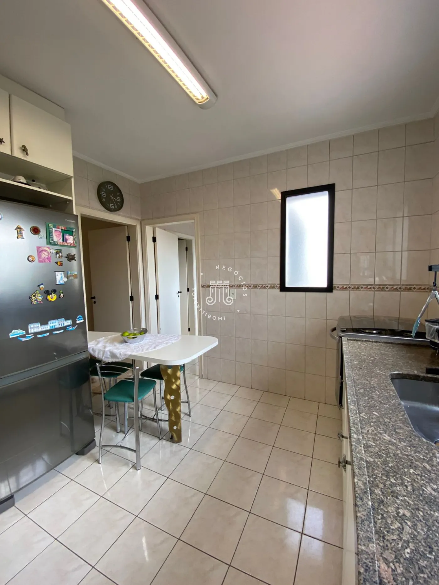 Composto por 3 quartos com armários sendo 1 deles suíte com sacada, sala para 2 ambientes em L com sacada, cozinha com armários, área de serviço, banheiro de serviço e despensa com armários.