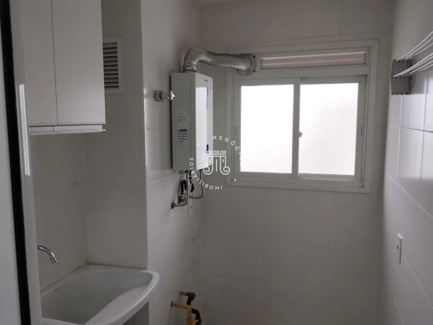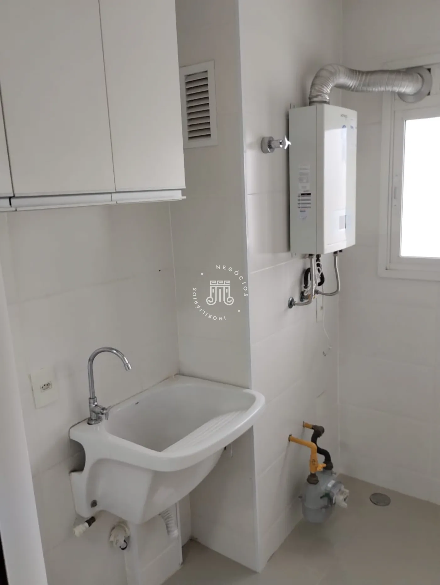 Cozinha e Lavanderia: Estilo americano com armários e aquecedor a gás.