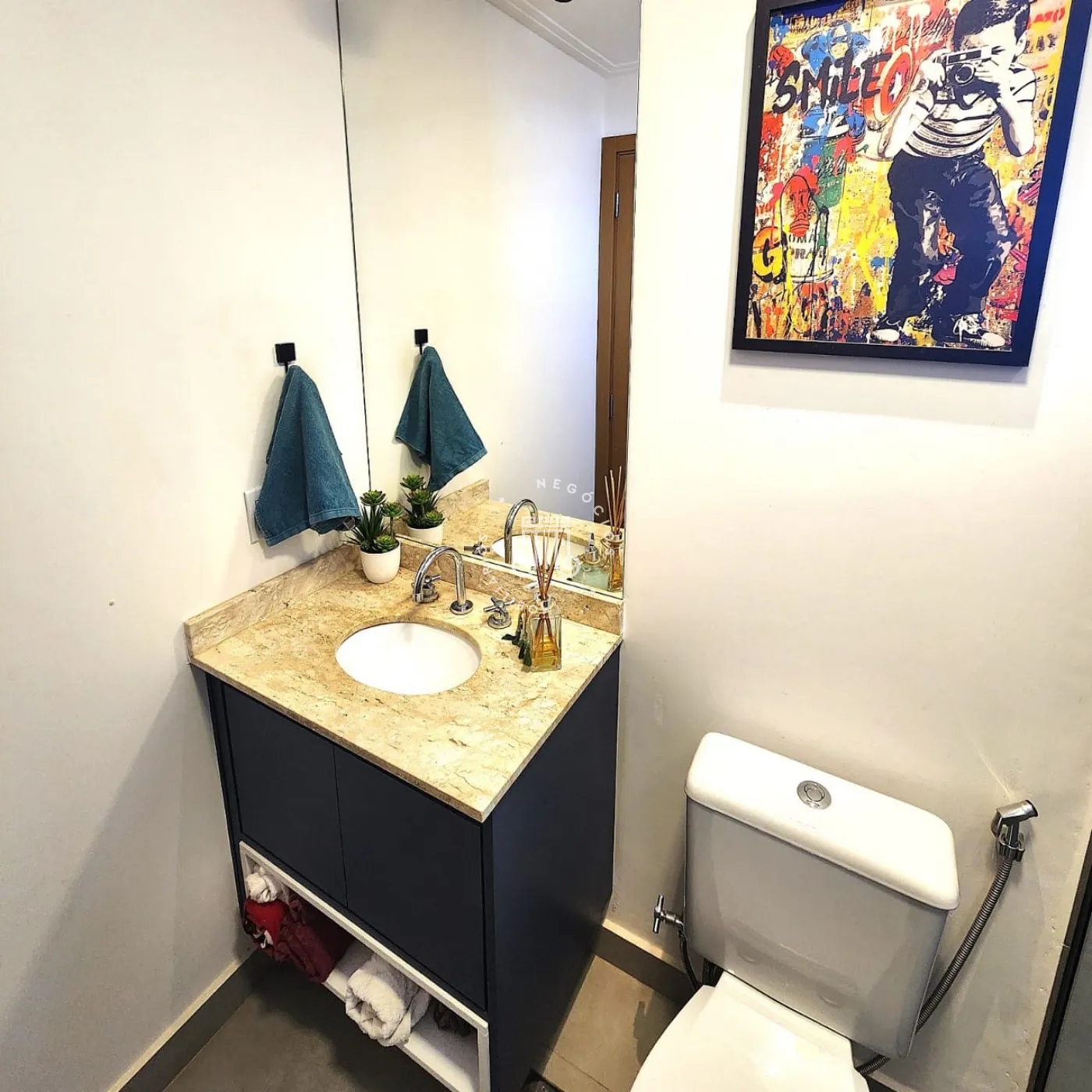 Piso vinílico utilizado em todos os cômodos e o piso frio apenas nos banheiros, água com aquecimento a gás que atende chuveiros e pias, ar condicionado na sala com possibilidade de instalação na suíte, tudo muito bem planejado para deixar esse apartamento ainda mais aconchegante !