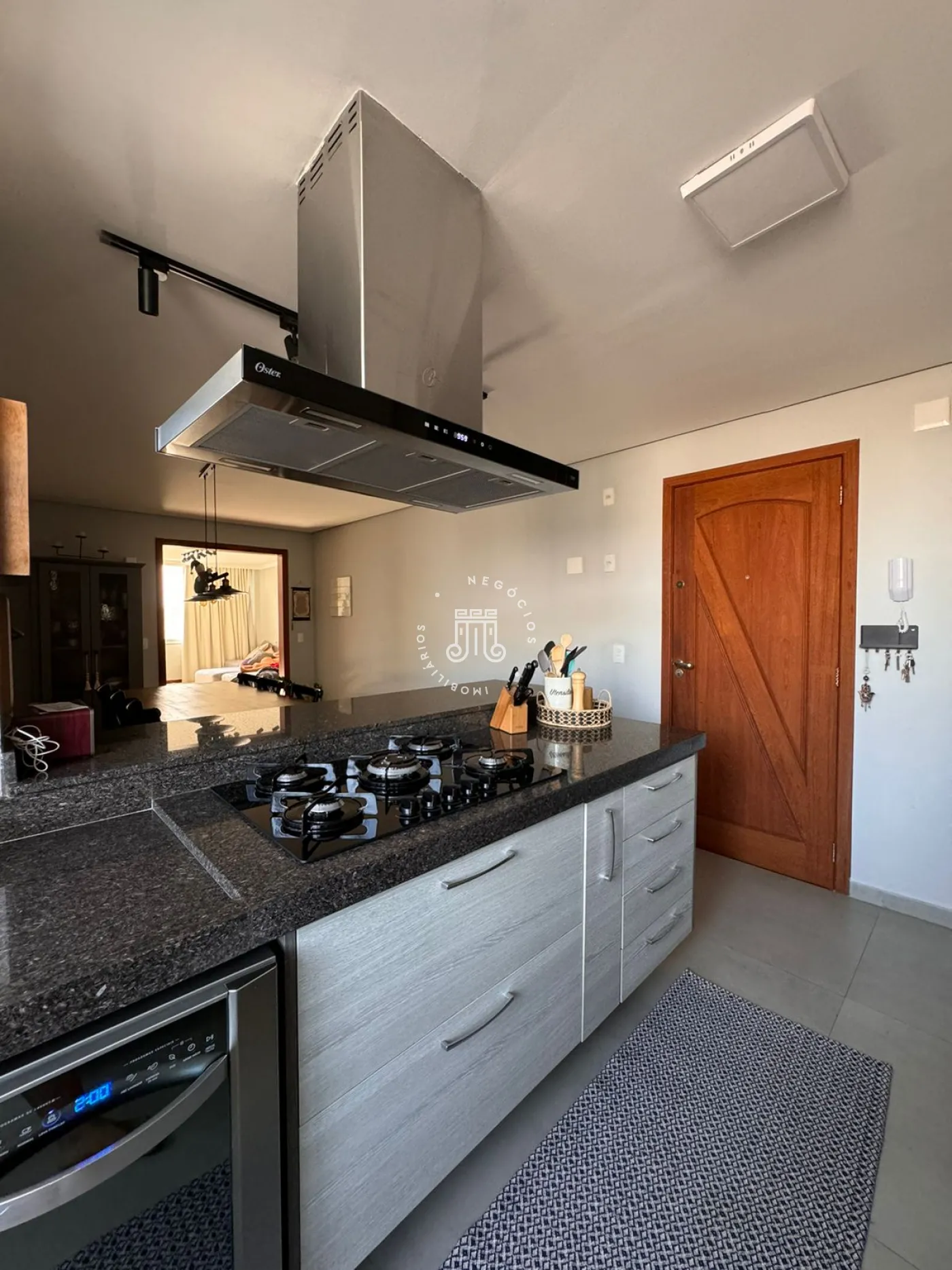 Com 137 m² de área privativa sendo 3 quartos amplos, sendo uma suíte com banheira de hidromassagem, banheiro social com chuveiro, sala de jantar integrada à cozinha através de um elegante balcão, uma cozinha equipada com armários planejados, forno elétrico, lava-louças, cooktop 5 bocas e exaustor, área de serviço, 1 vaga coberta.