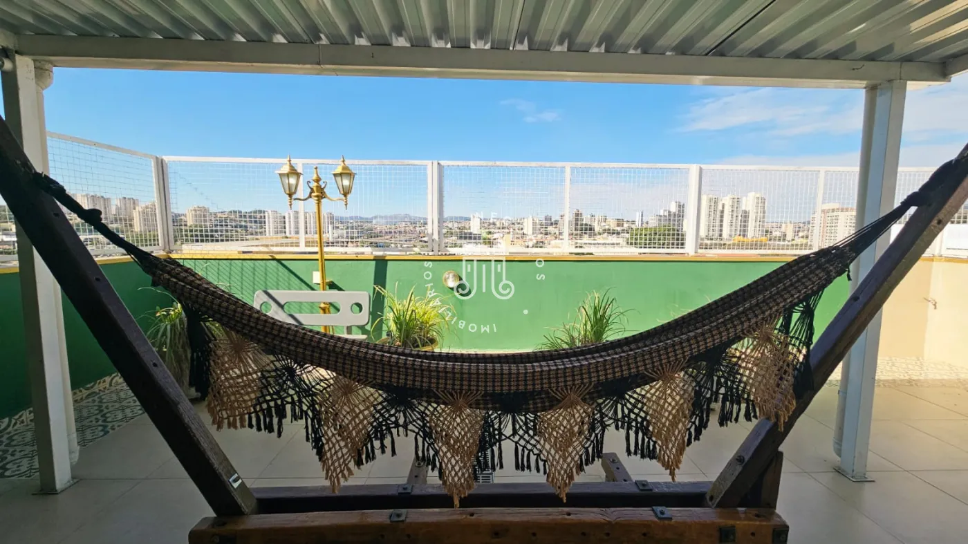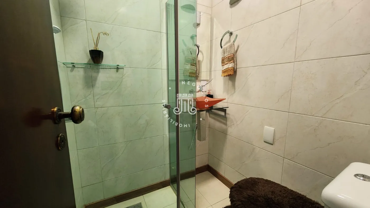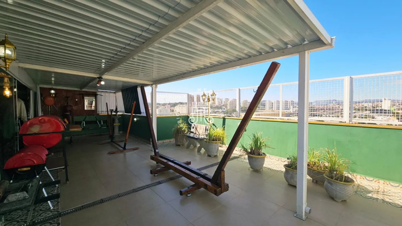 Imóvel com 93 metros quadrados de área útil, distribuídos em três quartos, sendo uma suíte, dois banheiros, sala, cozinha com armários, lavanderia, além de uma vaga de garagem. O apartamento possui terraço privativo na cobertura, também com 93 metros quadrados, com churrasqueira e acesso por escada.