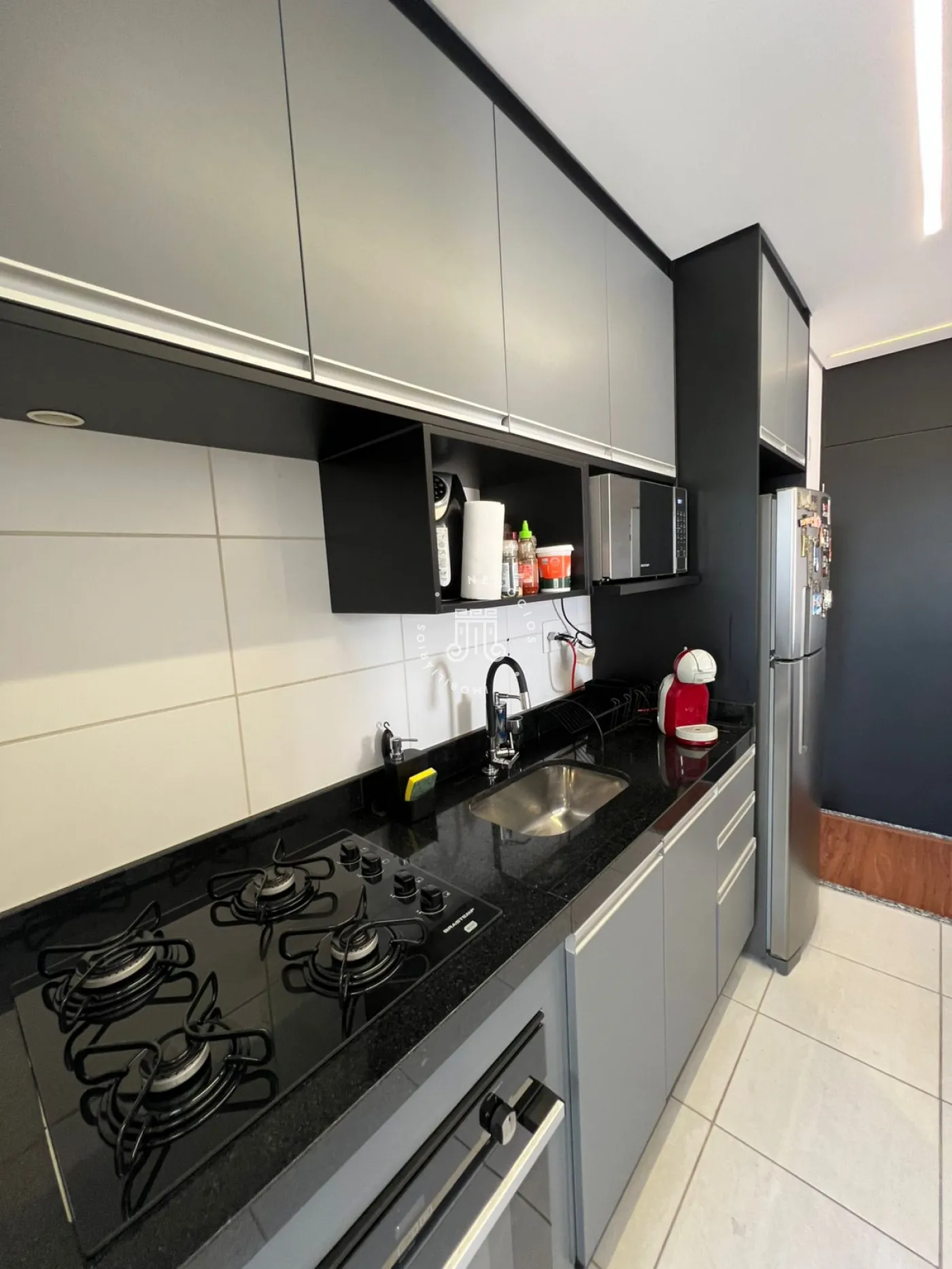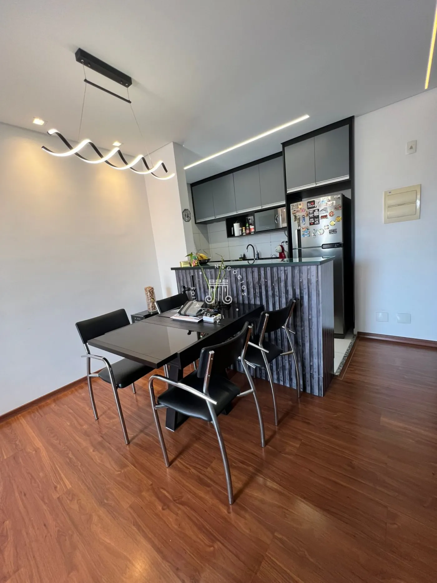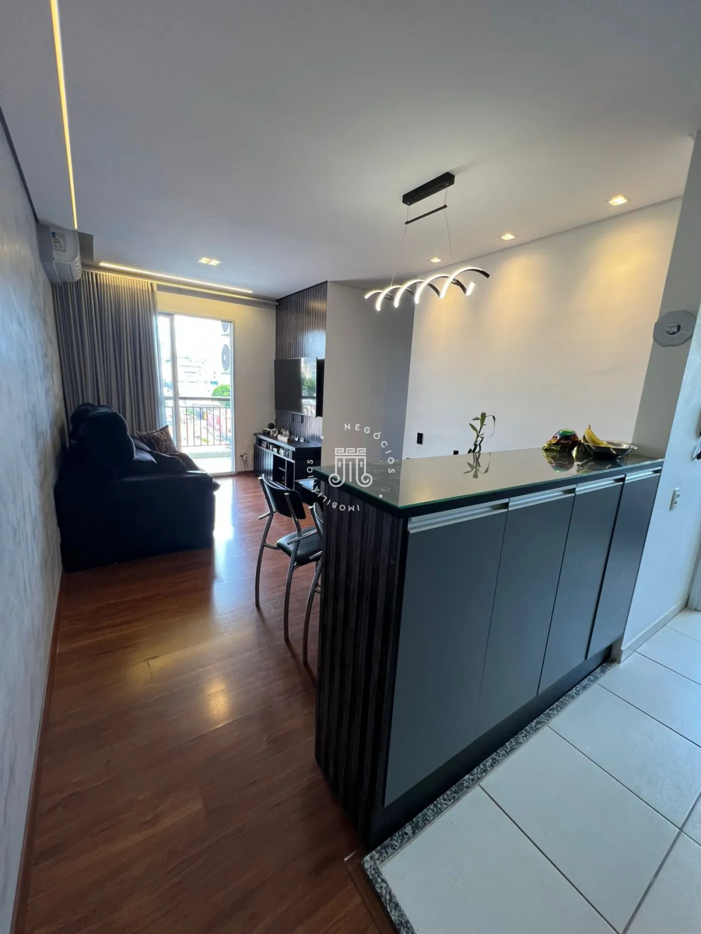 Apartamento com 3 dormitórios, sendo 1 suíte, cozinha com cooktop novo, sala de estar e jantar, banheiro social, sacada, 2 vagas de garagem paralelas e depósito na garagem. Possui armários embutidos e 2 aparelhos de ar-condicionado (na sala e na suíte).