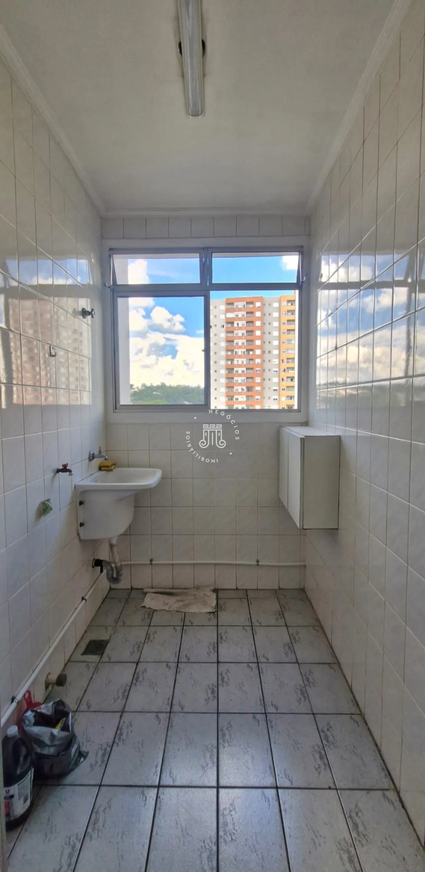 São 2 quartos sendo 1 suíte. Banheiro social grande, sala de estar ampla integrada com sala de jantar. Cozinha grande com armários e entrada de serviço. Lavanderia separada espaçosa com janela grande. O apartamento tem piso de madeira maciça. Varanda com tela e uma vaga de garagem coberta.