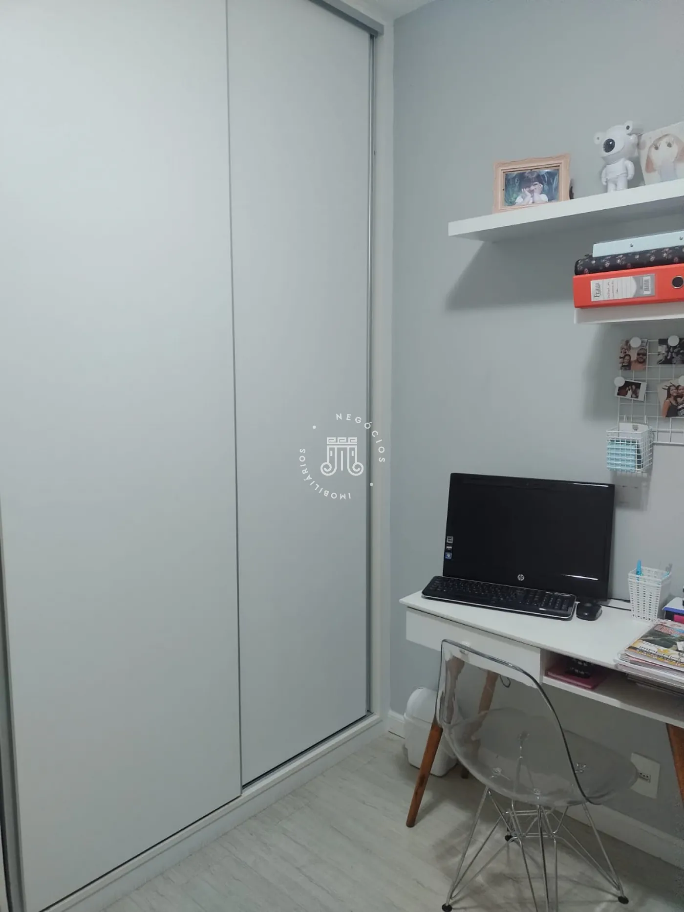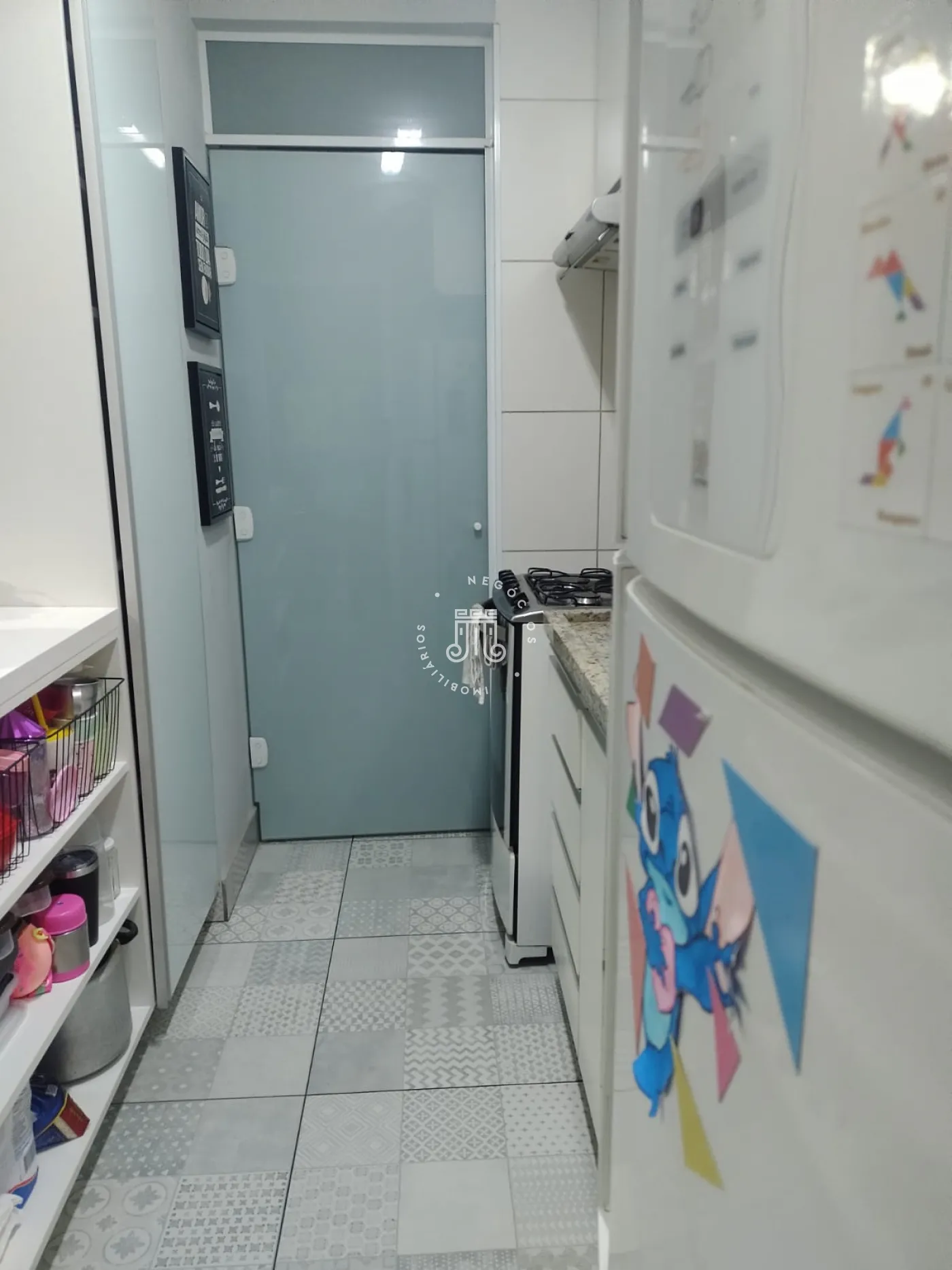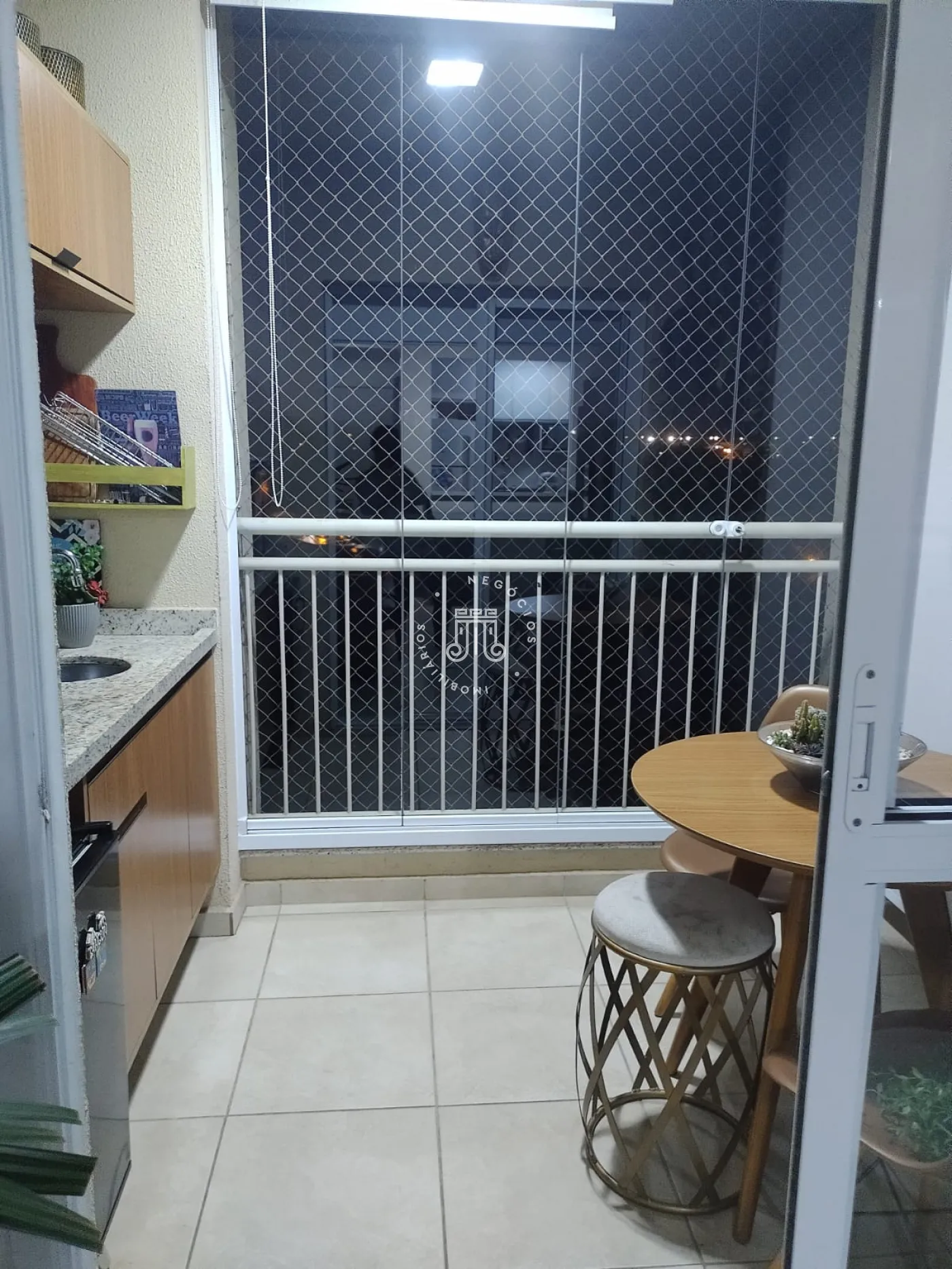 Com 2 quartos com armários planejados, sendo 1 suíte, sala dois ambientes ampliada e com varanda gourmet envidraçada, churrasqueira elétrica e telas de proteção, 2 banheiros com box de vidro e gabinete, cozinha com planejados, área de serviço, gás encanado e 1 vagas de garagem cobertas.