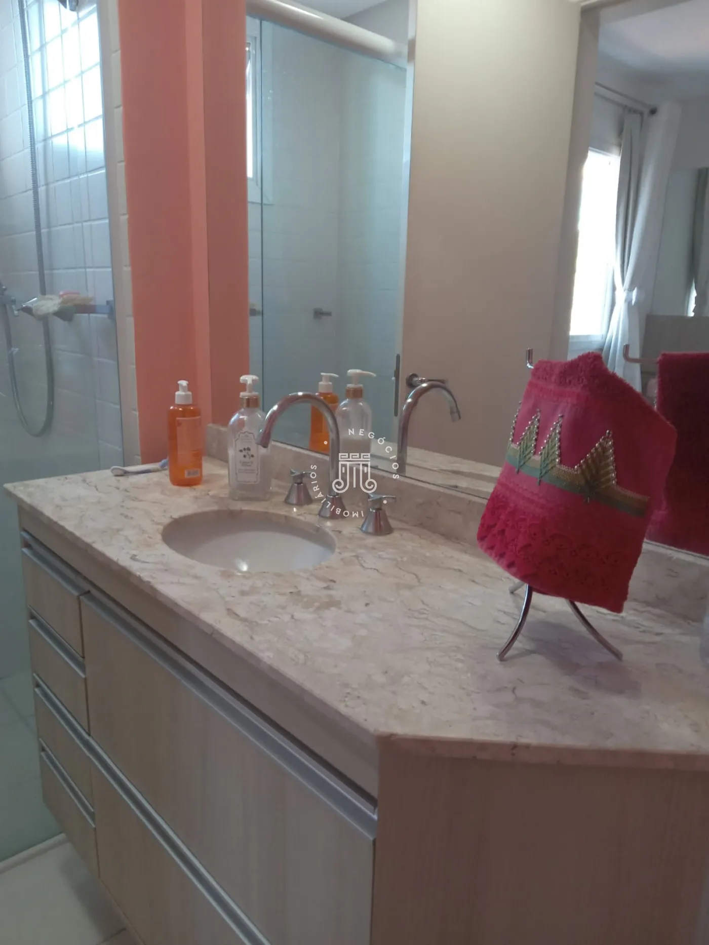Apartamento à venda com 90m², 3 quartos com armários planejados sendo 1 suíte com closet. Sala de estar integrada com sala de jantar, banheiro social, cozinha e lavanderia também com armários planejados, varanda gourmet grande com churrasqueira e fechamento em vidro e 2 vagas de garagem. Andar alto!