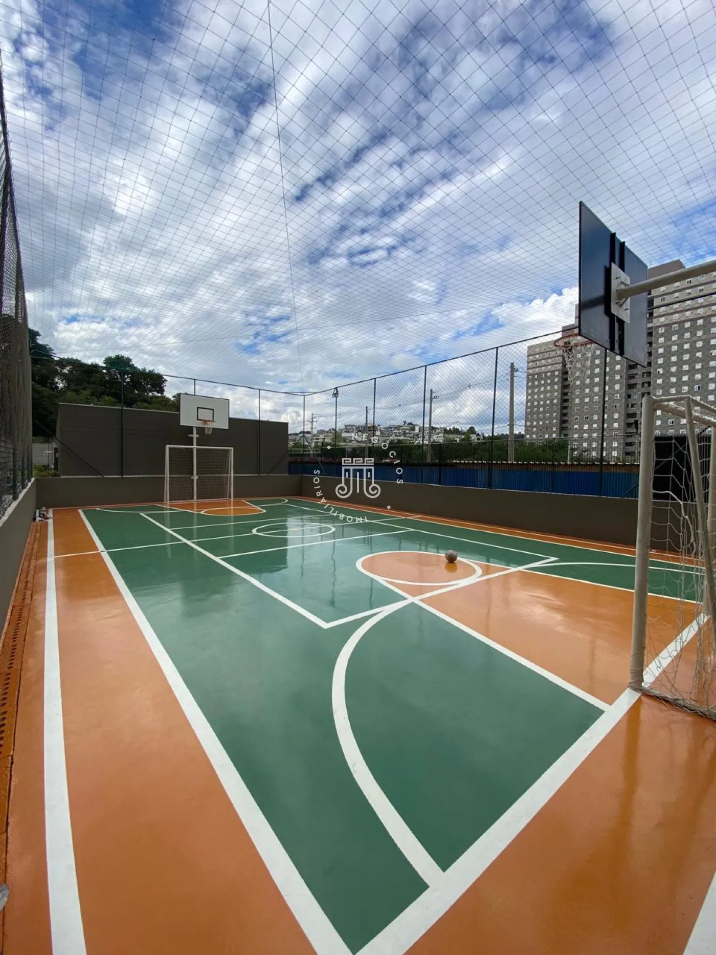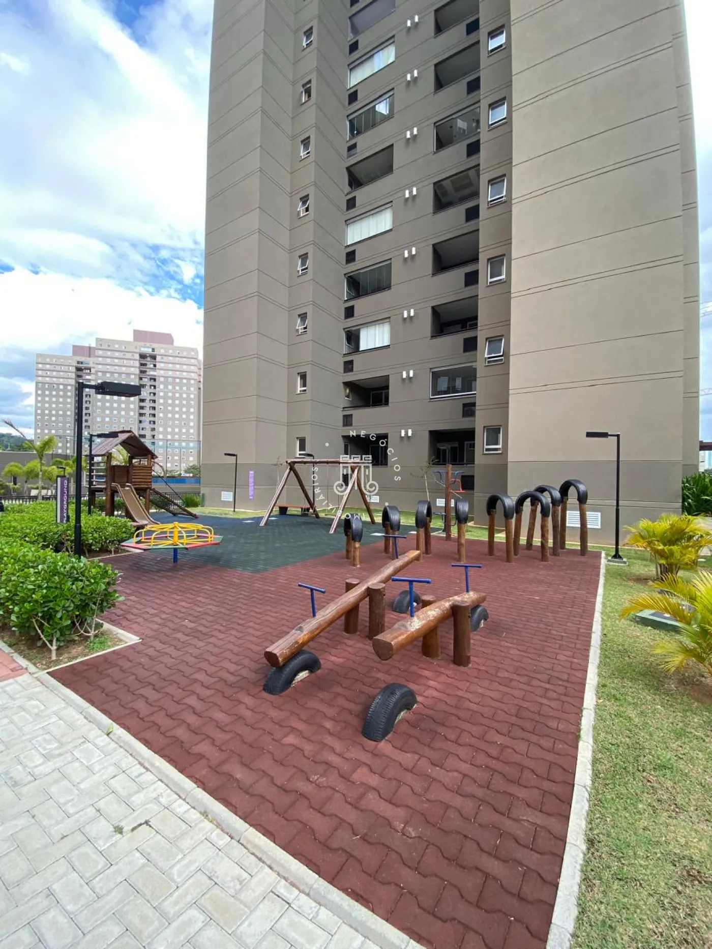 O condomínio oferece estrutura de lazer com piscina para adultos e crianças, academia, salão de festas, quadra poliesportiva, espaço para animais, playground, churrasqueira externa, portaria 24 horas e feira noturna.