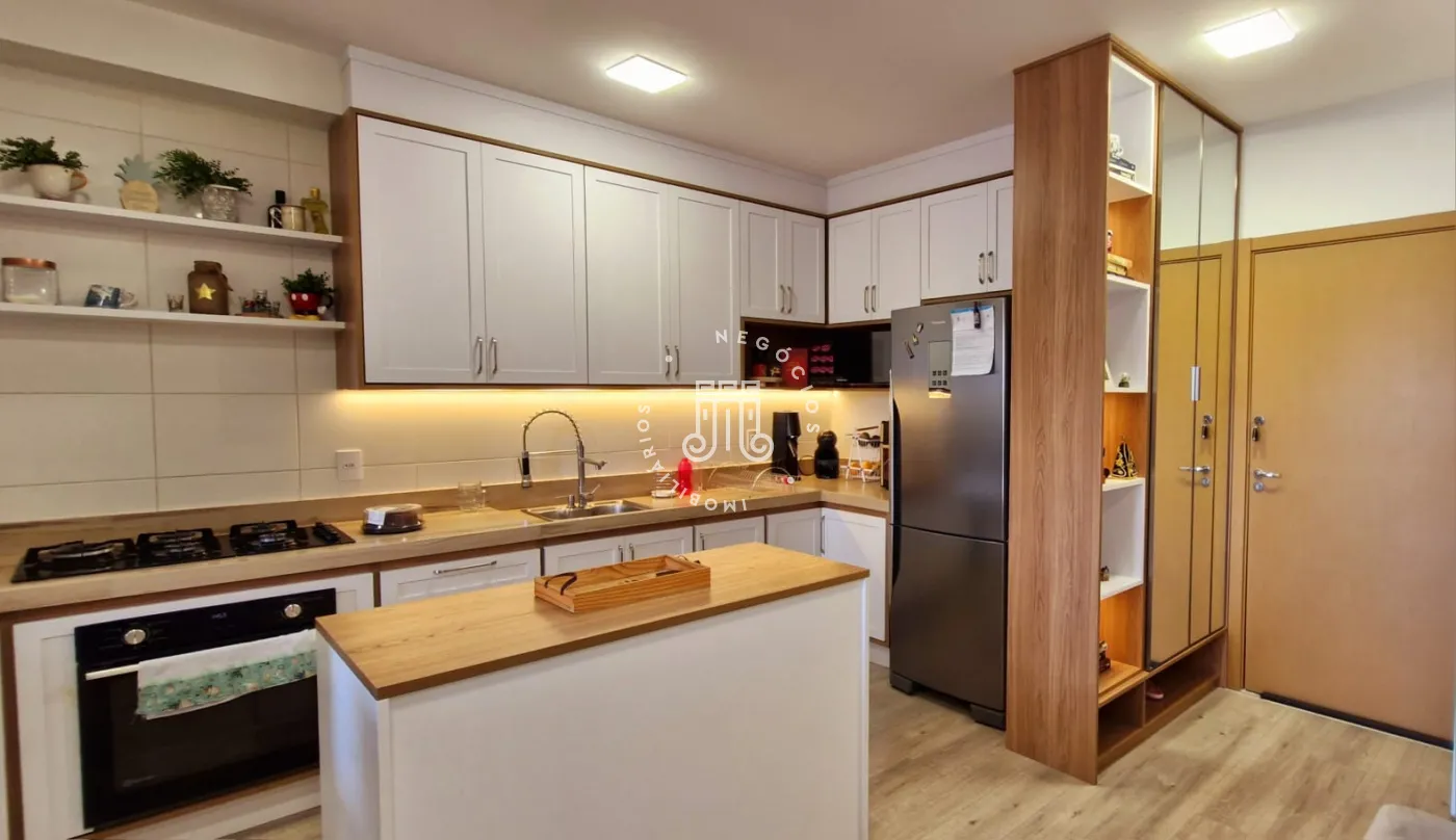 São 3 quartos sendo uma suíte, cozinha em conceito aberto com armários planejados e ilha móvel e led nas bancadas. Sala ampla aberta para sala de jantar e cozinha. Varanda gourmet grande com vista livre, com churrasqueira e pia. Banheiro social grande com armário. 2 vagas de garagens cobertas.