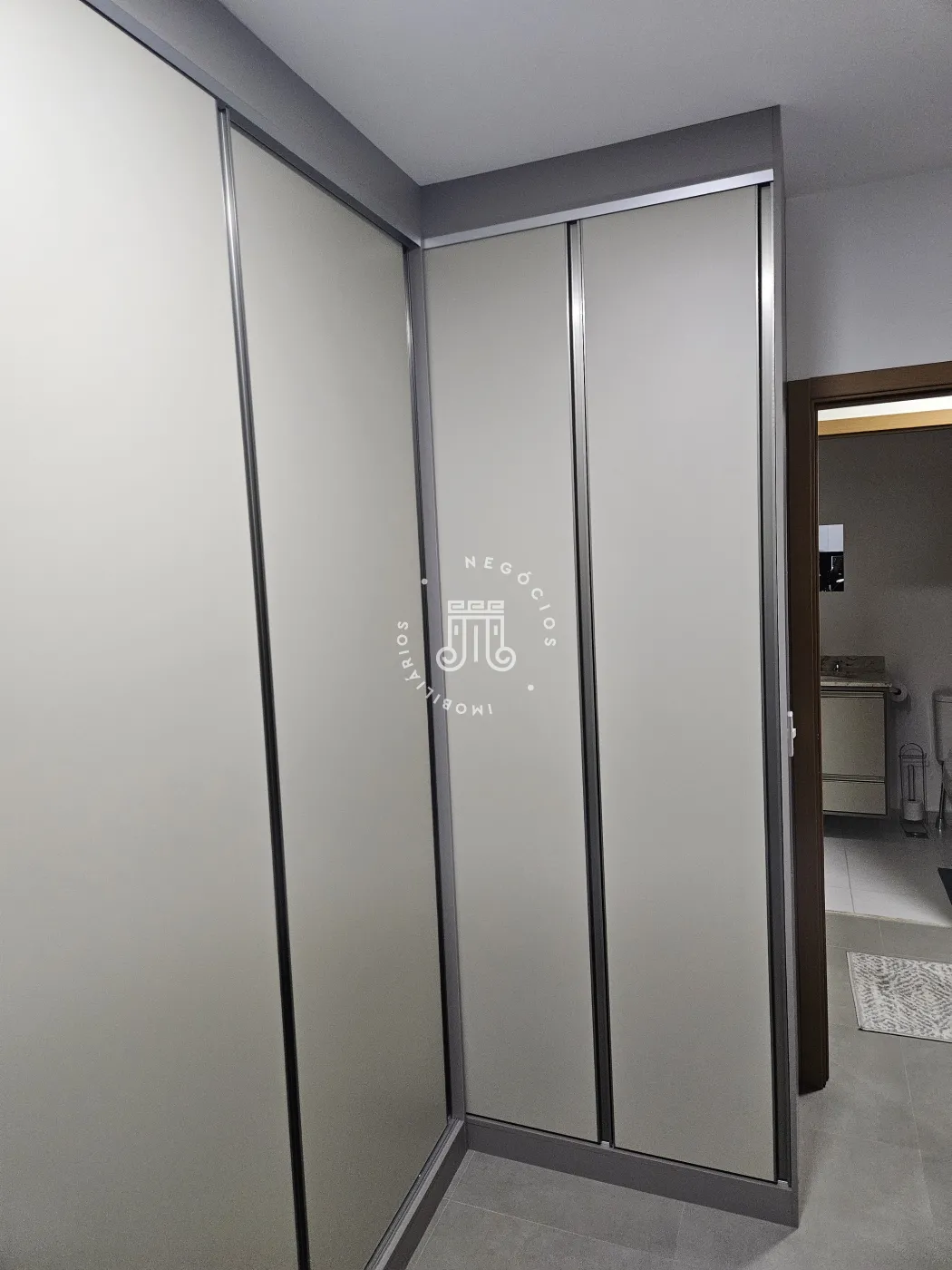 São 3 dormitórios, todos planejados, sendo 1 suíte, sala para 2 ambientes, varanda gourmet envidraçada com churrasqueira e pia, cozinha planejada, banheiro social completo, área de serviço com armários, 2 vagas cobertas e demarcadas. Sol da manhã e aquecimento à gás nos chuveiros e pias.