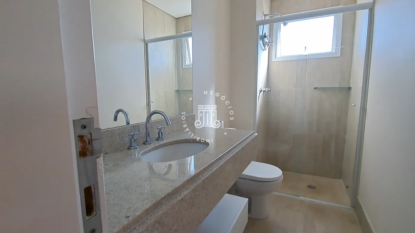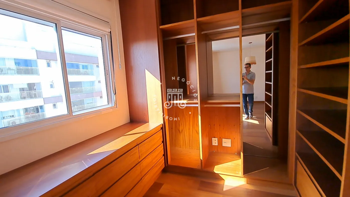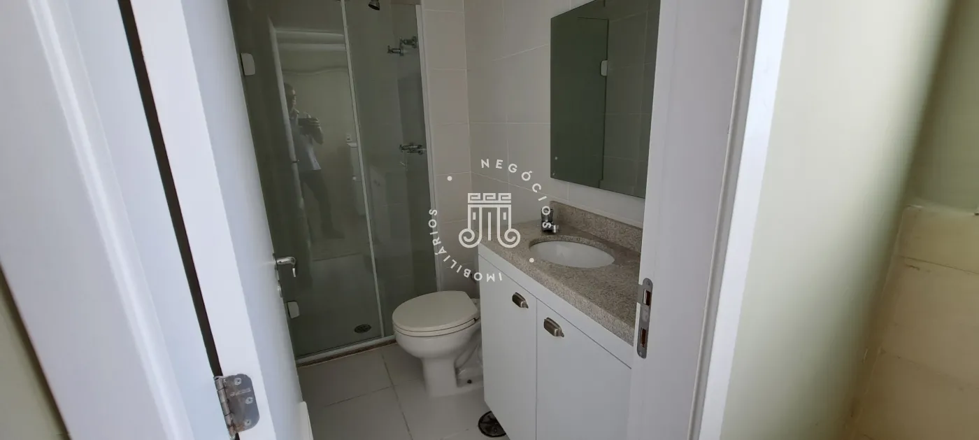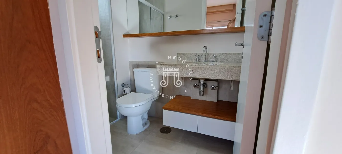 Apartamento com 1 suíte, sala com 2 ambientes e possibilidade de adaptação para um segundo dormitório. Imóvel com ar-condicionado em todos os cômodos. Varanda com churrasqueira e fechamento em vidro retrátil. Possui banheiro social, cozinha, despensa, área de serviço com banheiro e garagem com 2 vagas cobertas.