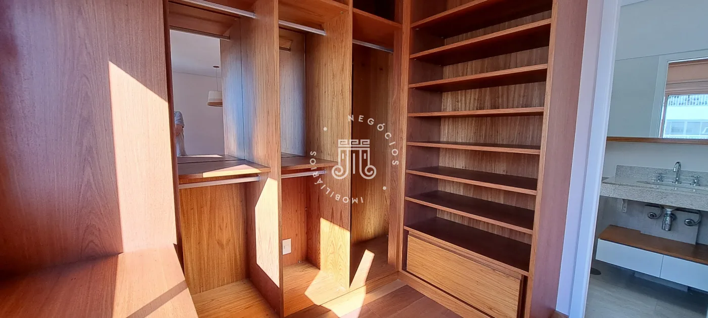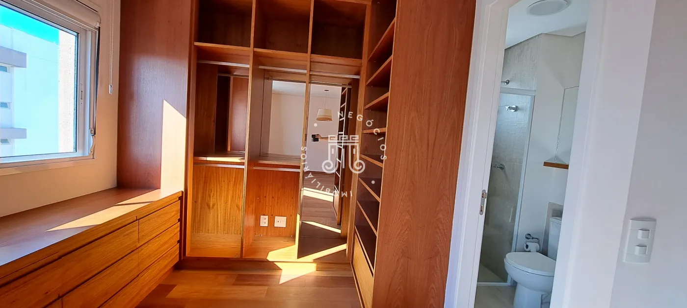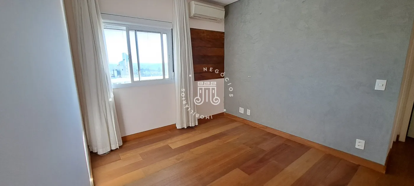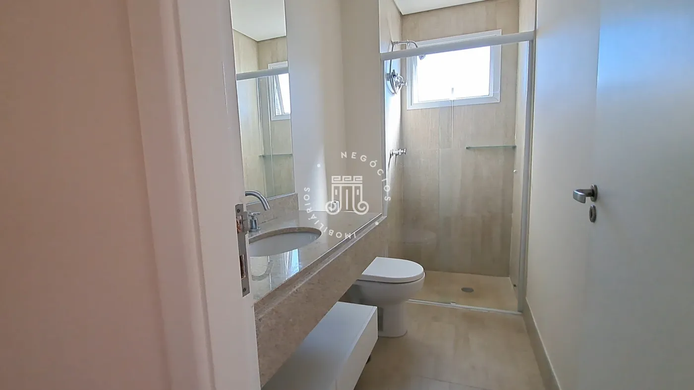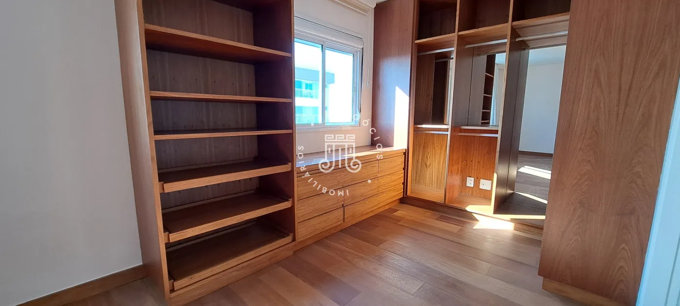 Apartamento com 1 suíte, sala com 2 ambientes e possibilidade de adaptação para um segundo dormitório. Imóvel com ar-condicionado em todos os cômodos. Varanda com churrasqueira e fechamento em vidro retrátil. Possui banheiro social, cozinha, despensa, área de serviço com banheiro e garagem com 2 vagas cobertas.