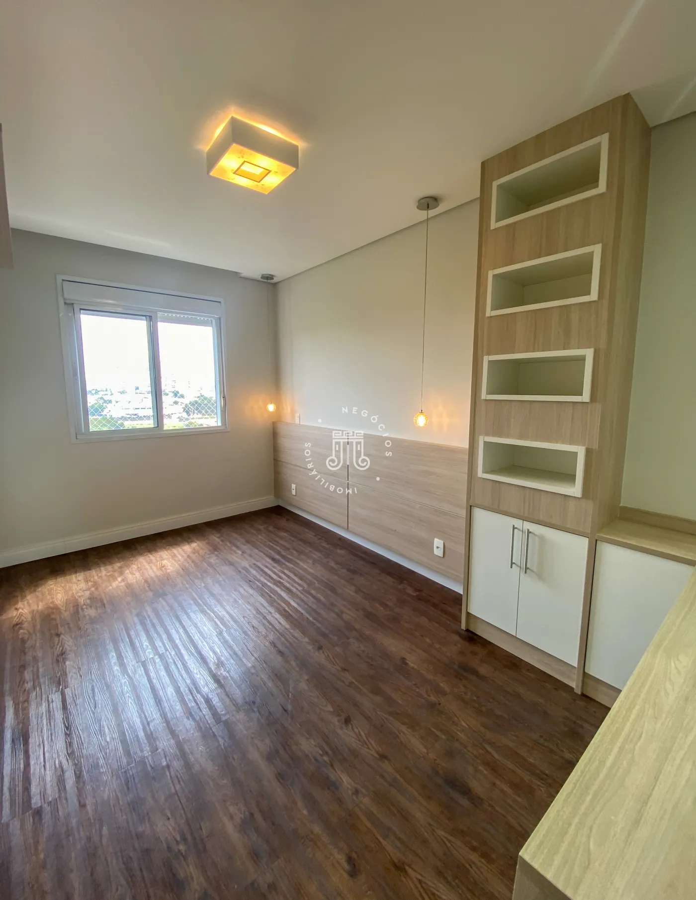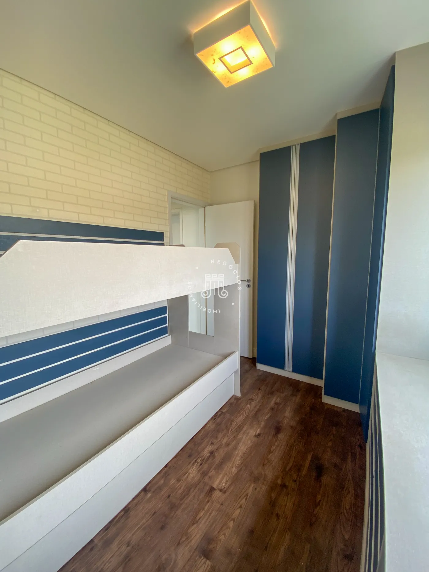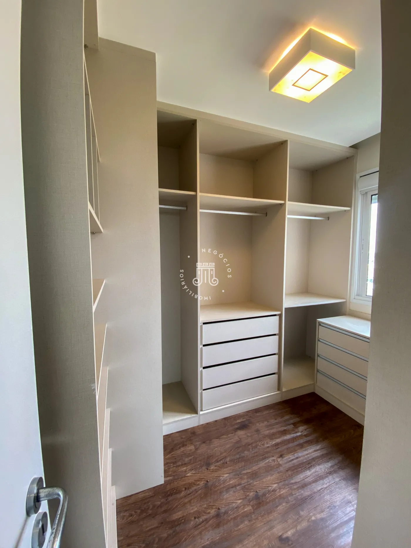 O imóvel possui três dormitórios, sendo uma suíte, um quarto de solteiro e um quarto utilizado como closet. Na saída, há duas vagas fixas e cobertas. O espaço comum oferece cinema, piscina, quadra poliesportiva e área de jogos. As crianças dispõem de playgrounds, brinquedoteca e sala de balé. Há também espaço destinado a animais de estimação, sala de estudos e acesso à internet em área compartilhada.