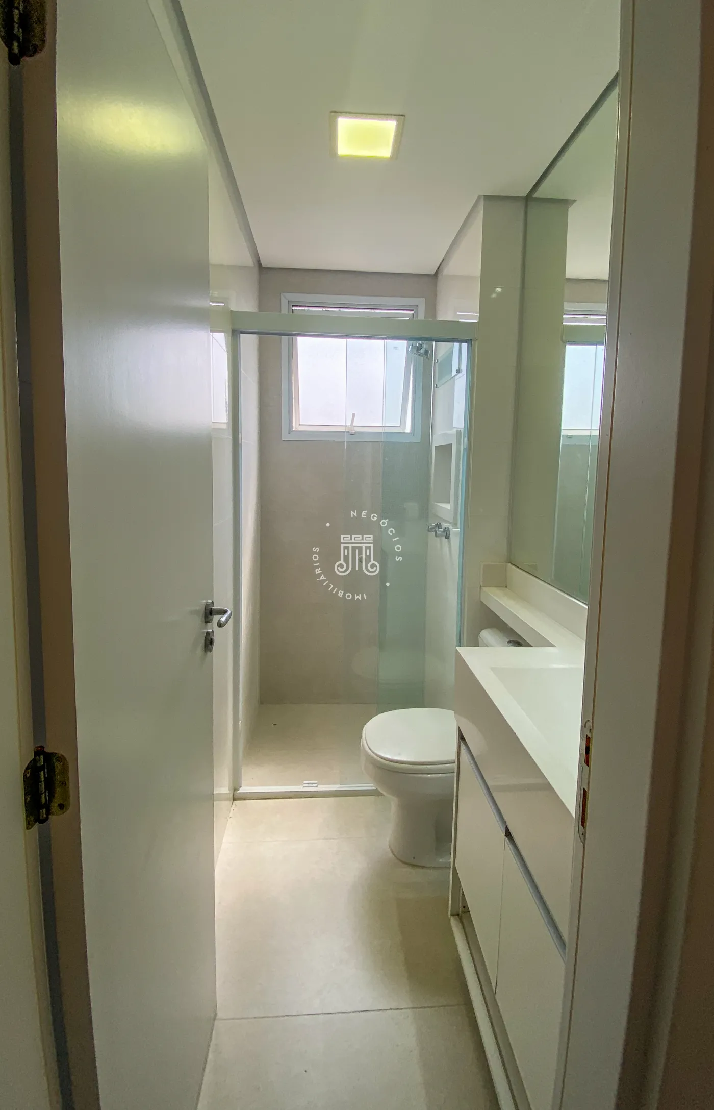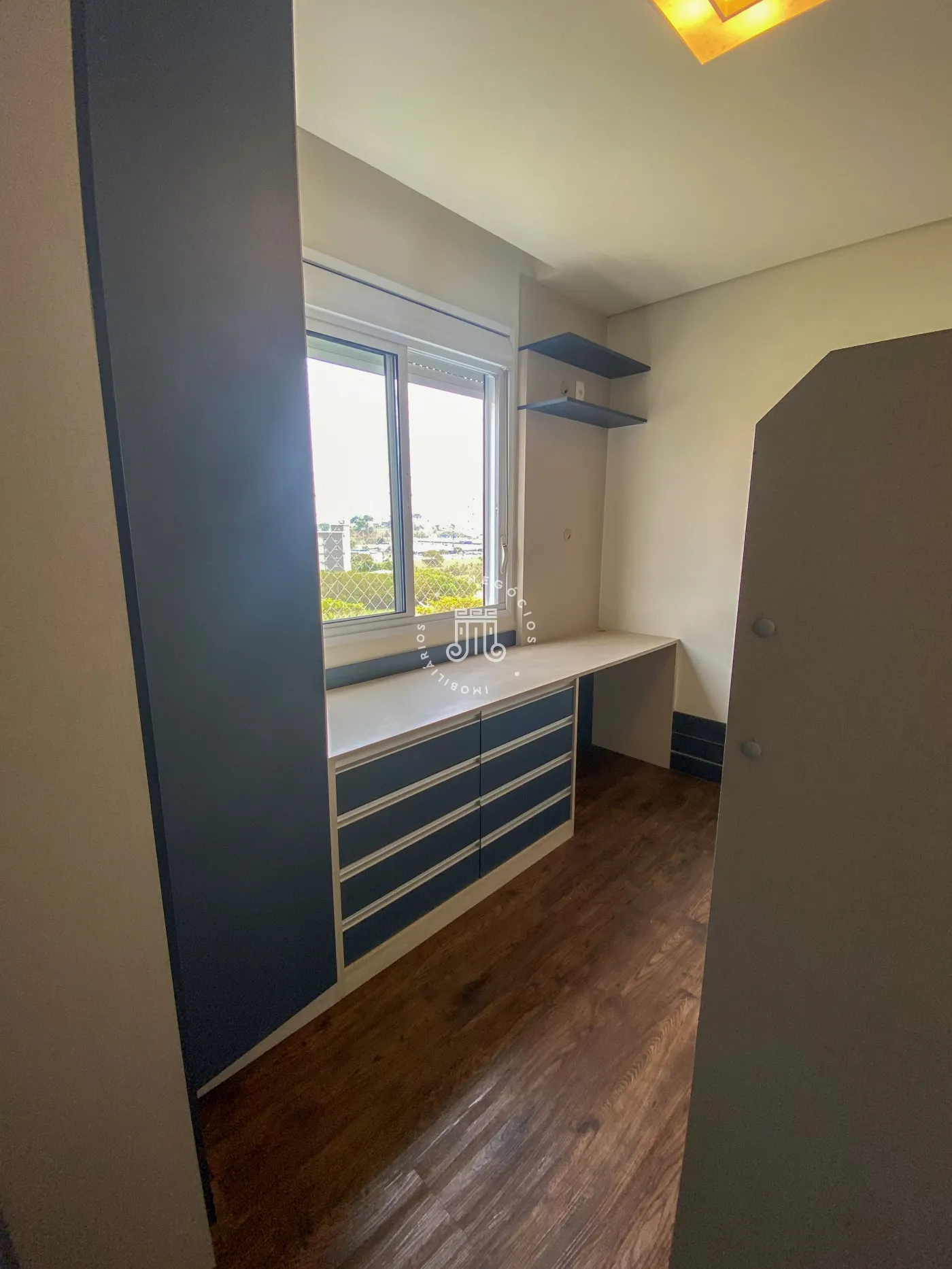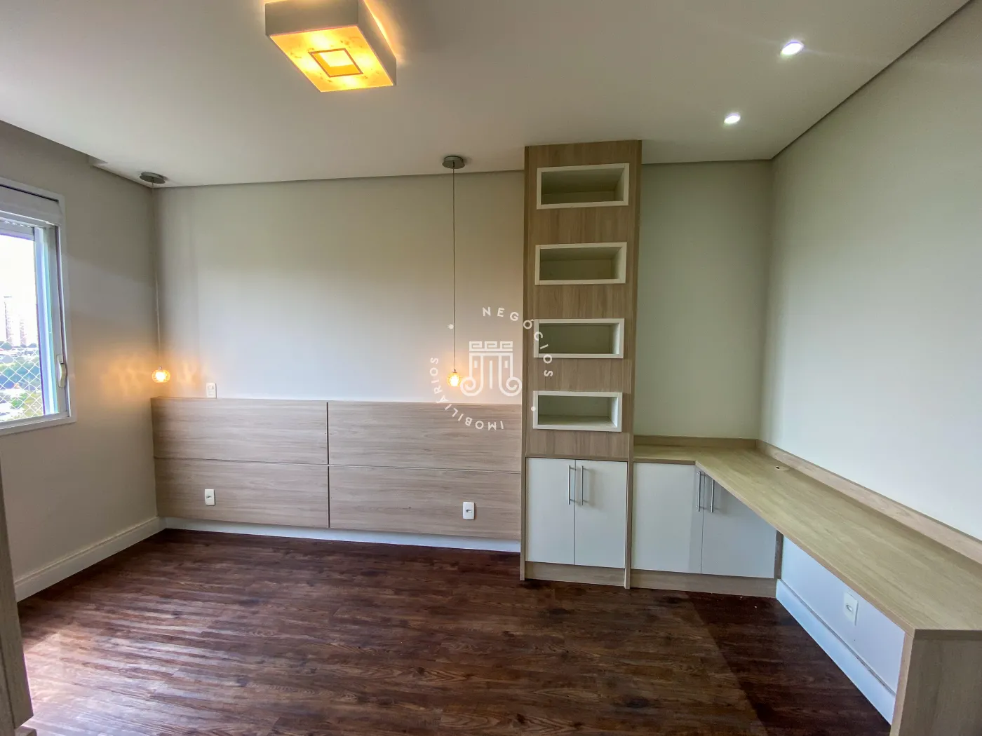 O imóvel possui três dormitórios, sendo uma suíte, um quarto de solteiro e um quarto utilizado como closet. Na saída, há duas vagas fixas e cobertas. O espaço comum oferece cinema, piscina, quadra poliesportiva e área de jogos. As crianças dispõem de playgrounds, brinquedoteca e sala de balé. Há também espaço destinado a animais de estimação, sala de estudos e acesso à internet em área compartilhada.