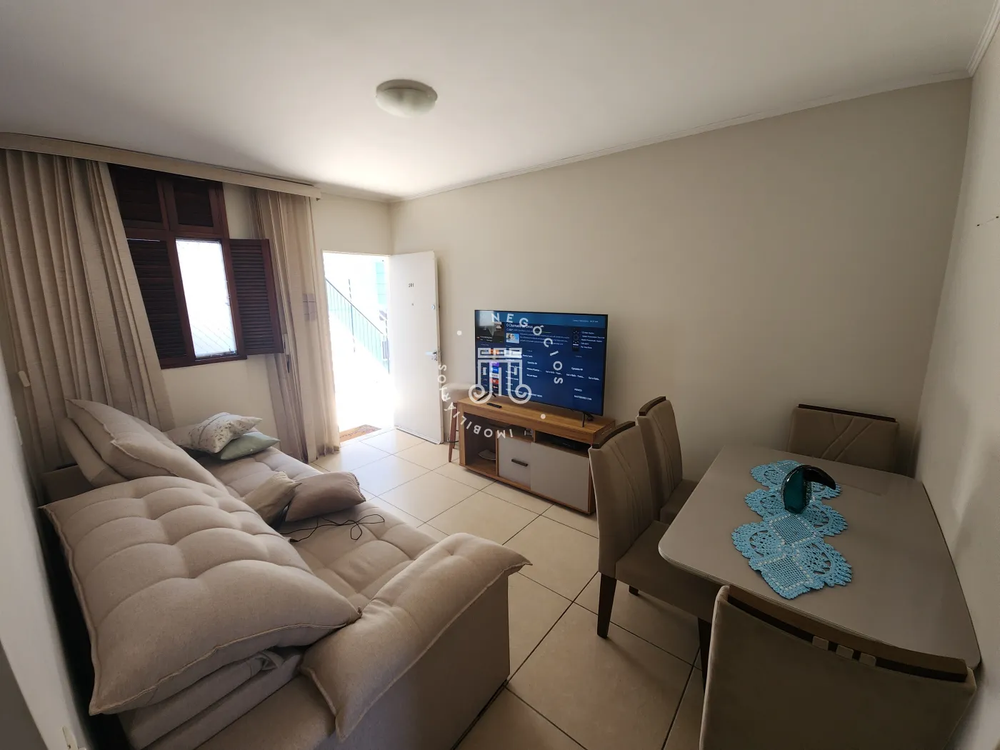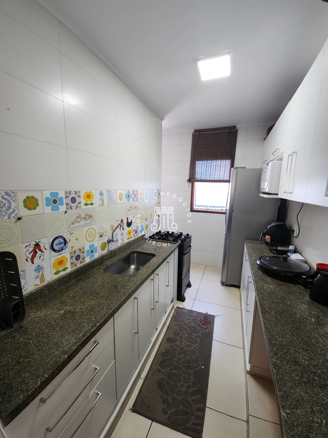 Composto por 2 dormitórios com armários, banheiro social com box de vidro, pia e gabinete, sala ampla, cozinha com armários, área de serviço e 1 vaga de garagem coberta.