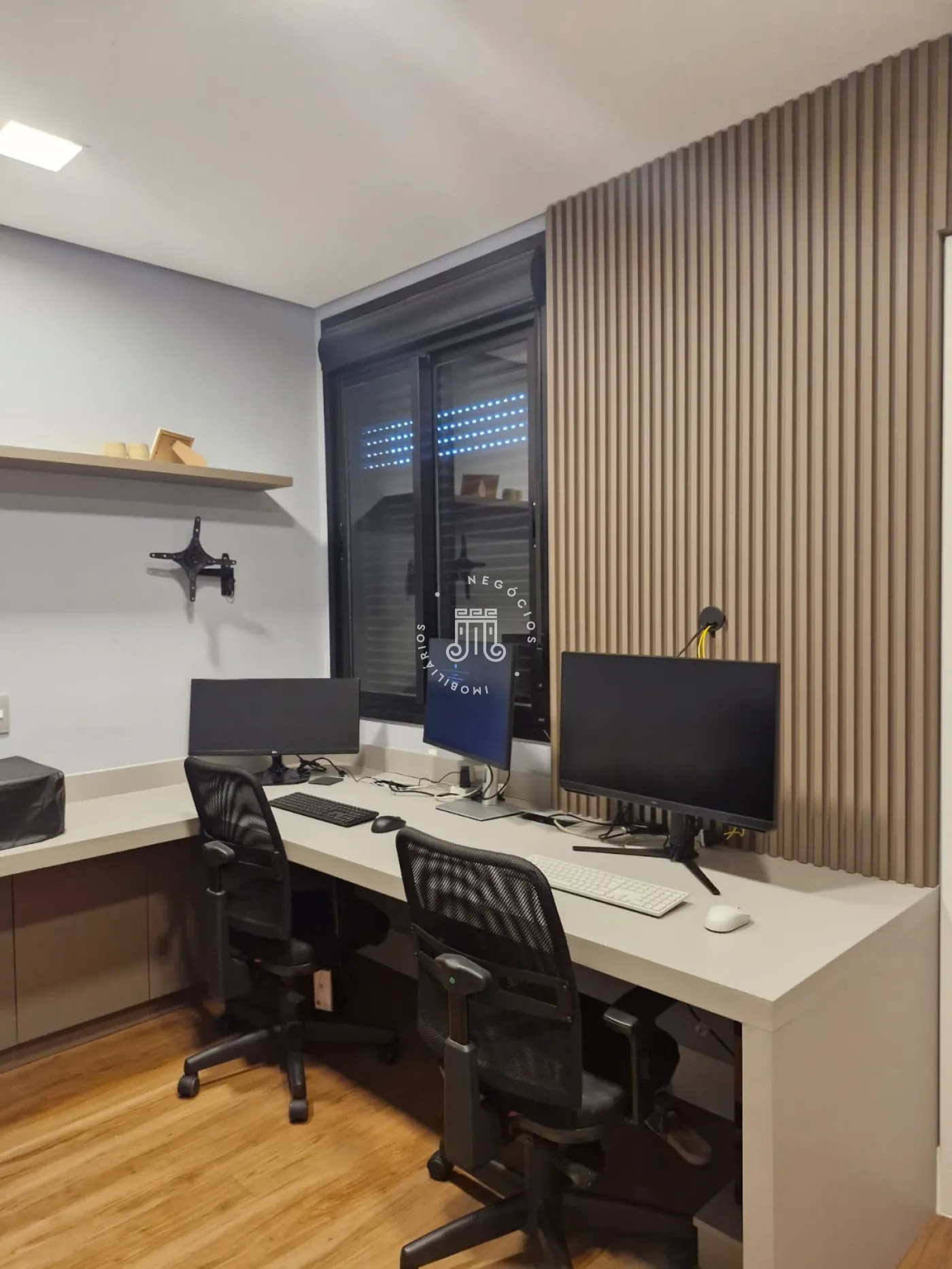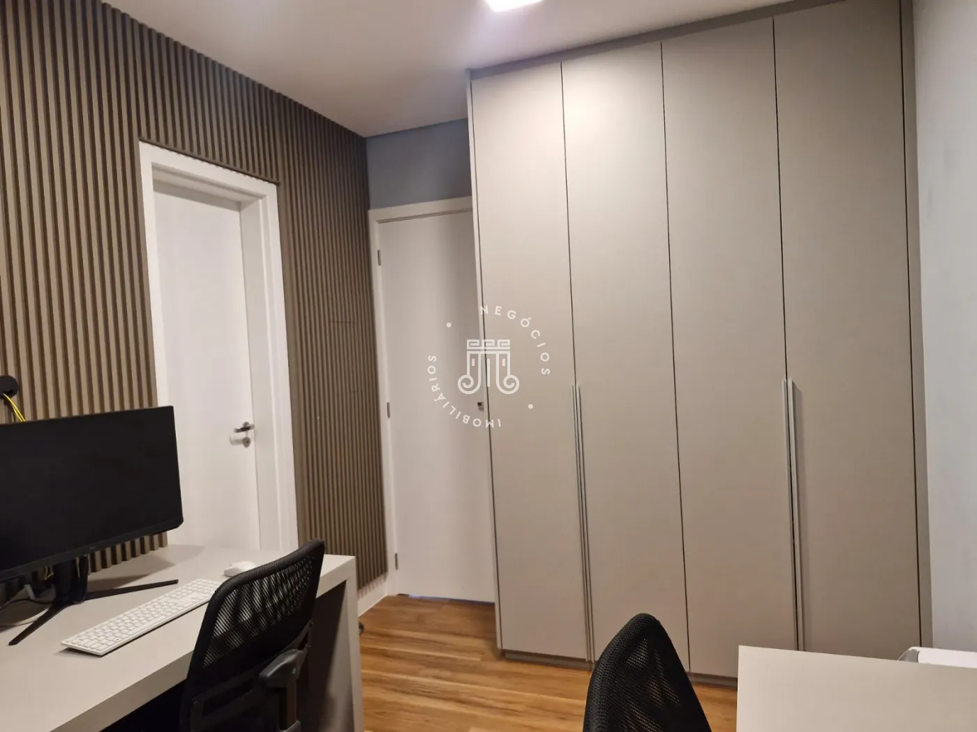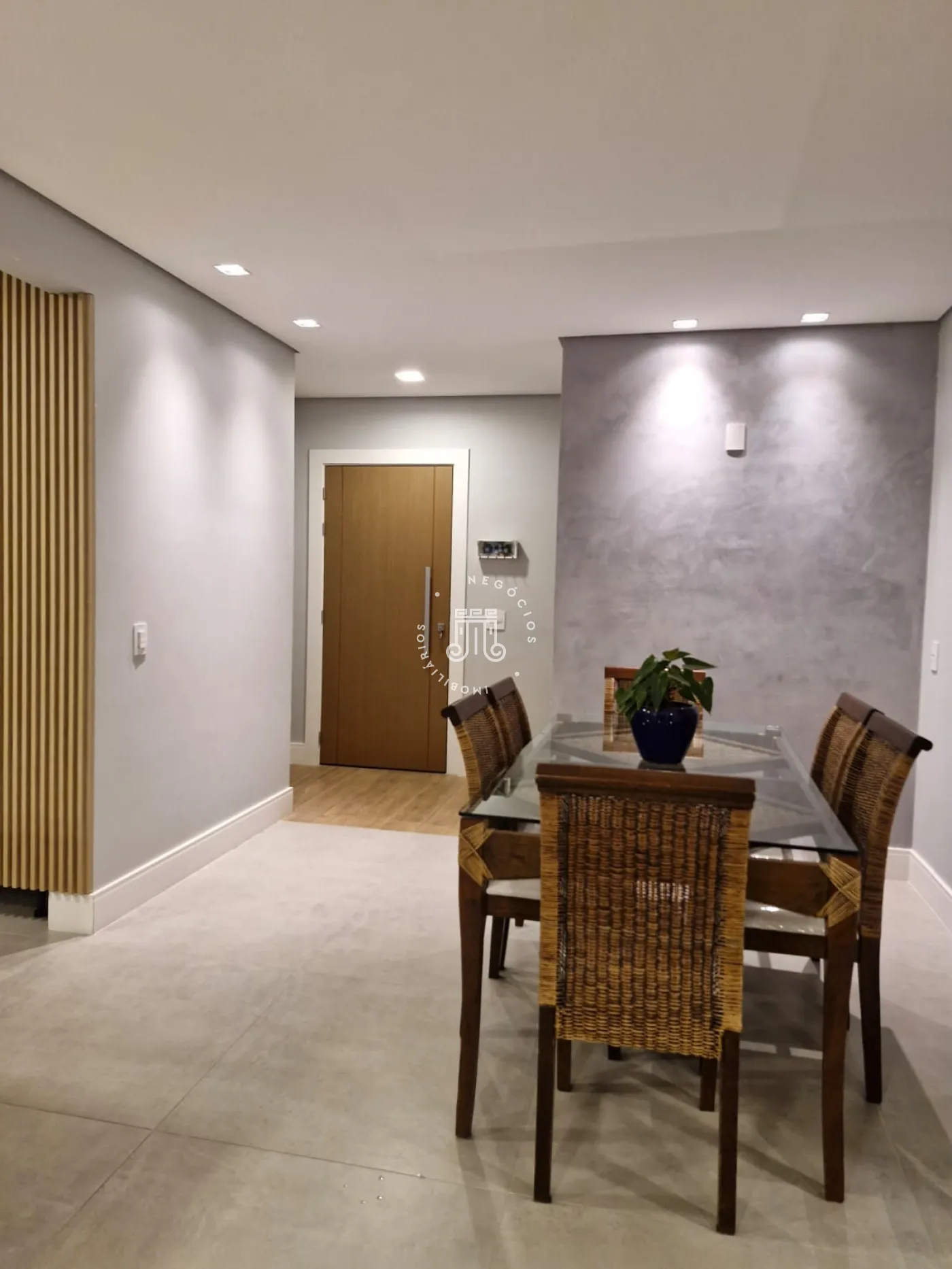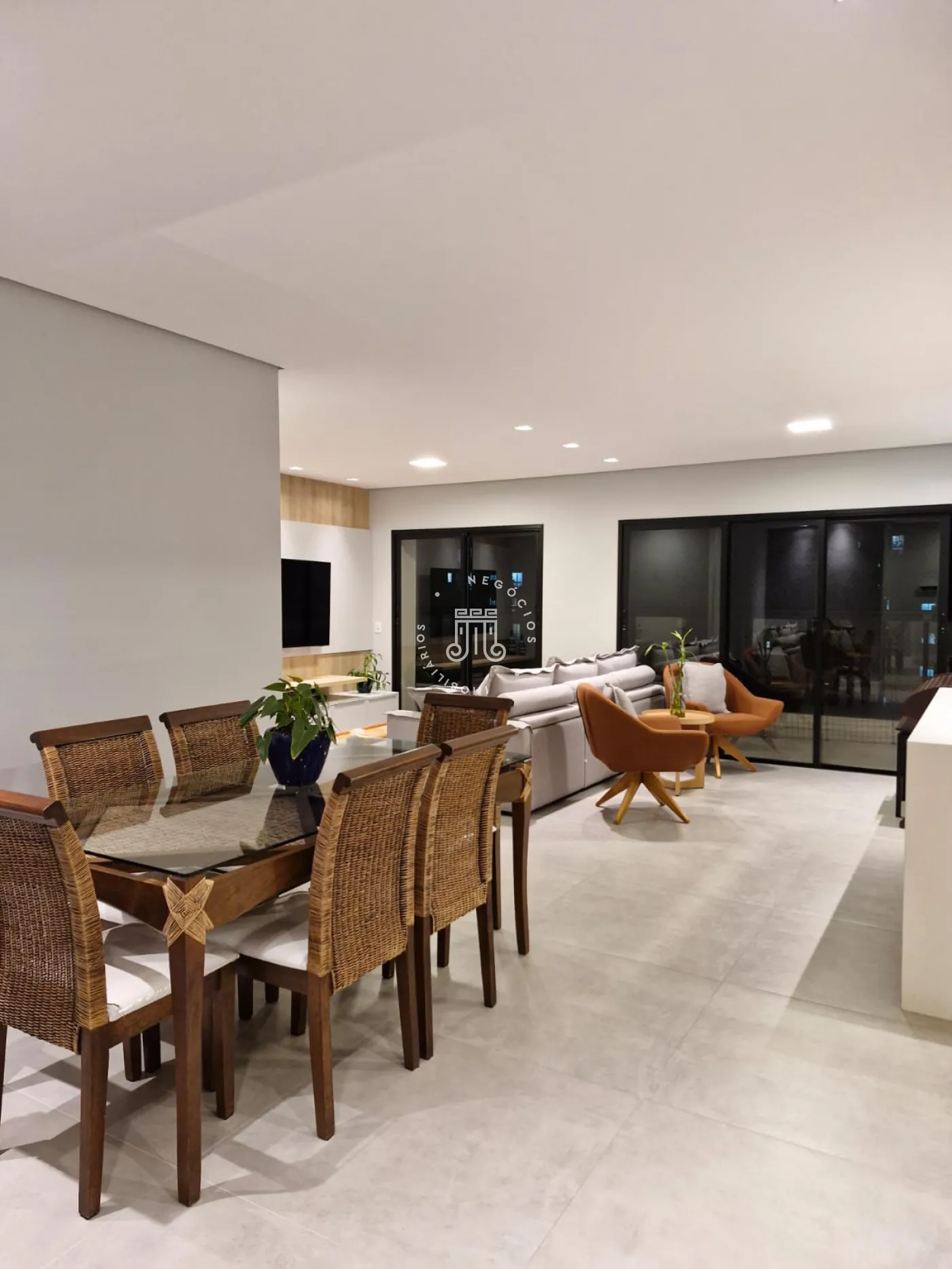 O imóvel possui: 03 suítes sendo 1 máster com closet todas com armários planejados, sala ampliada em piso porcelanato, lavabo, varanda com fechamento de vidro, cozinha americana com armários planejados cooktop, forno e coifa embutidos, área de serviço, 03 pontos de ar condicionado com infraestrutura e 03 vagas cobertas + depósito.