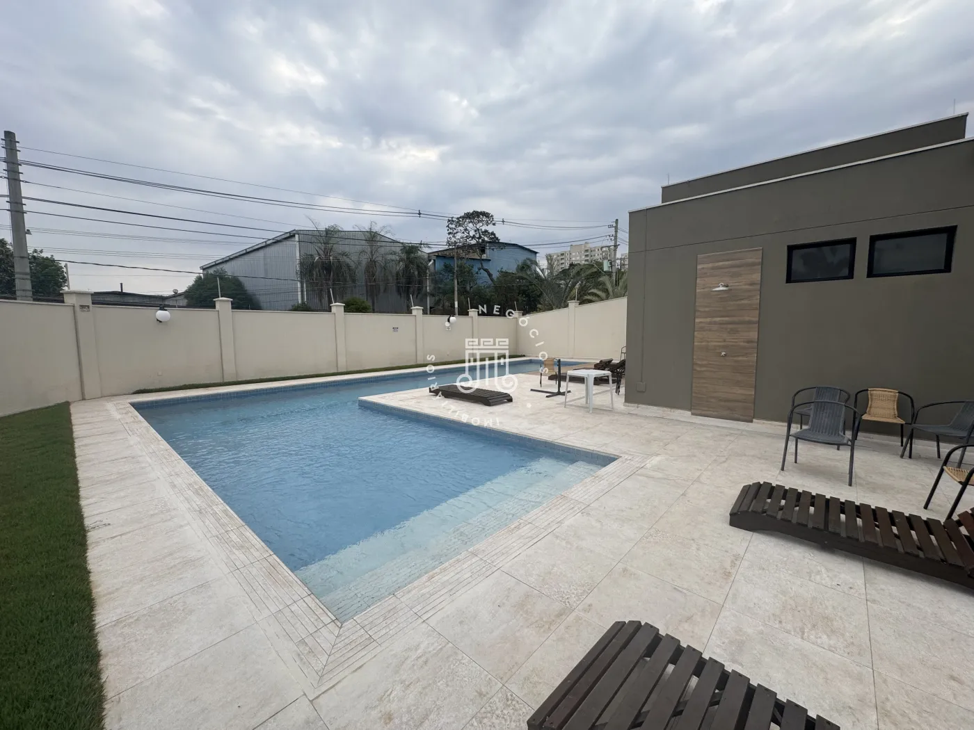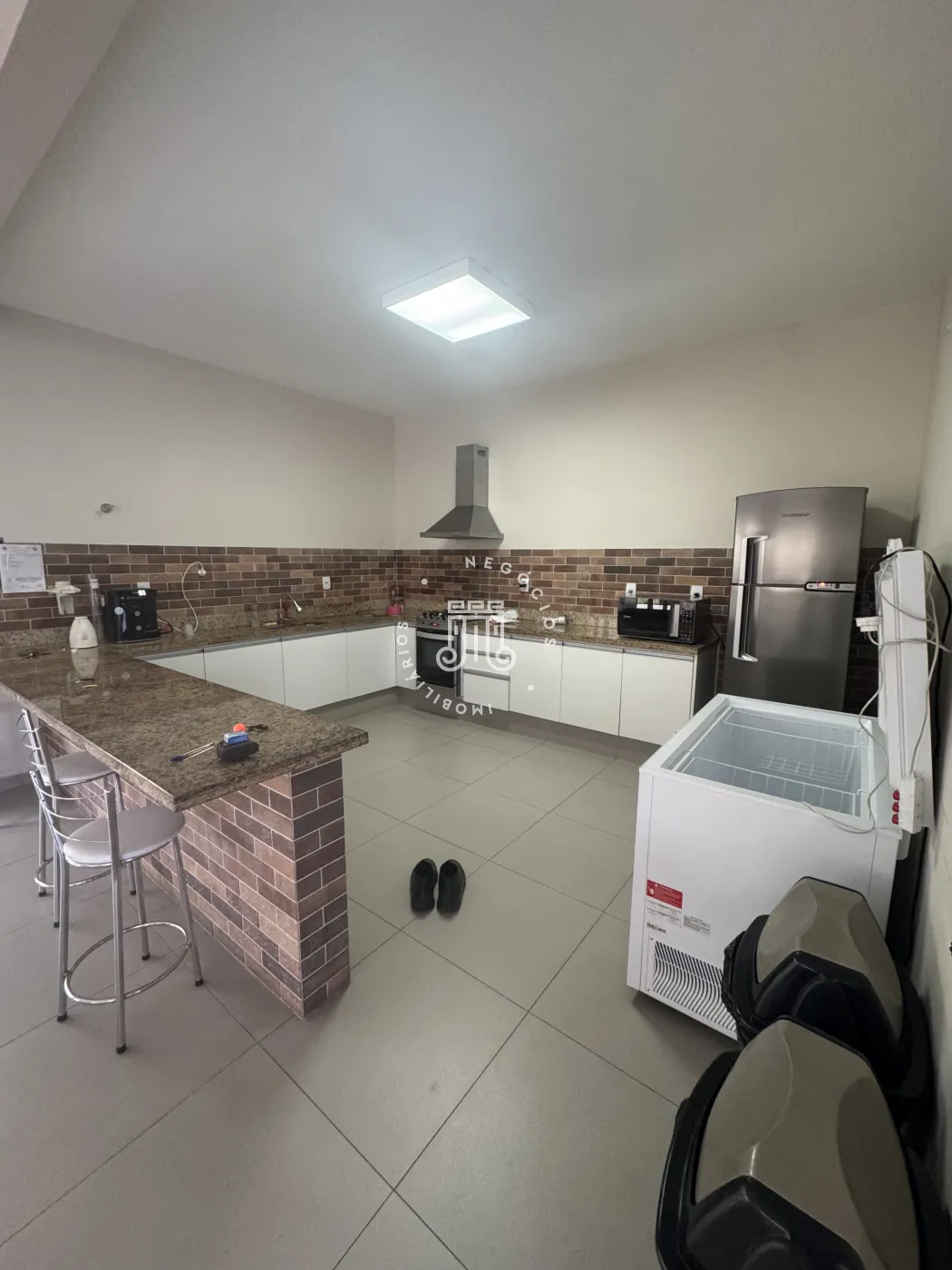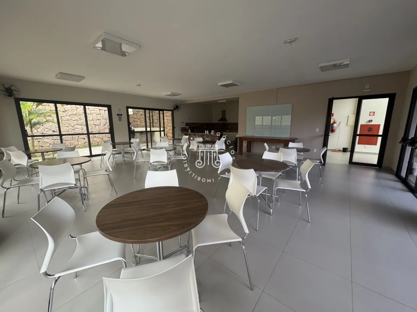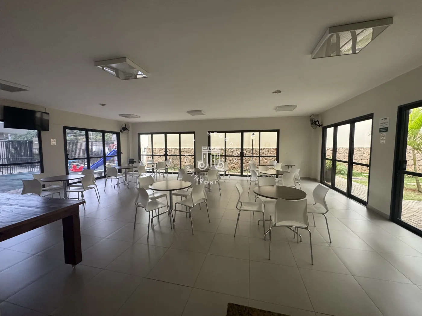 O condomínio oferece uma área de lazer completa com piscina, sauna, academia, salão de festas com churrasqueira, vestiários, quiosques, campo de futebol e salão de jogos.