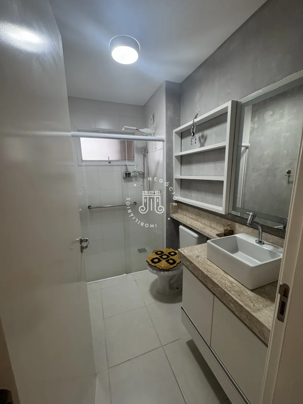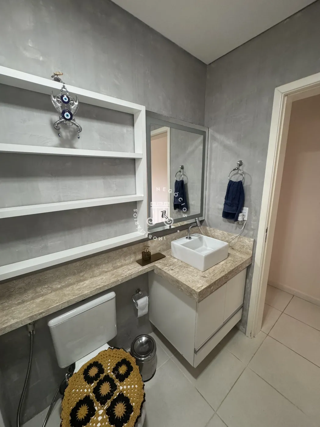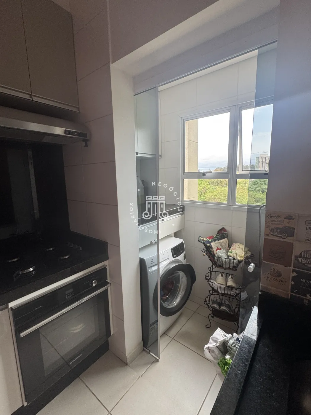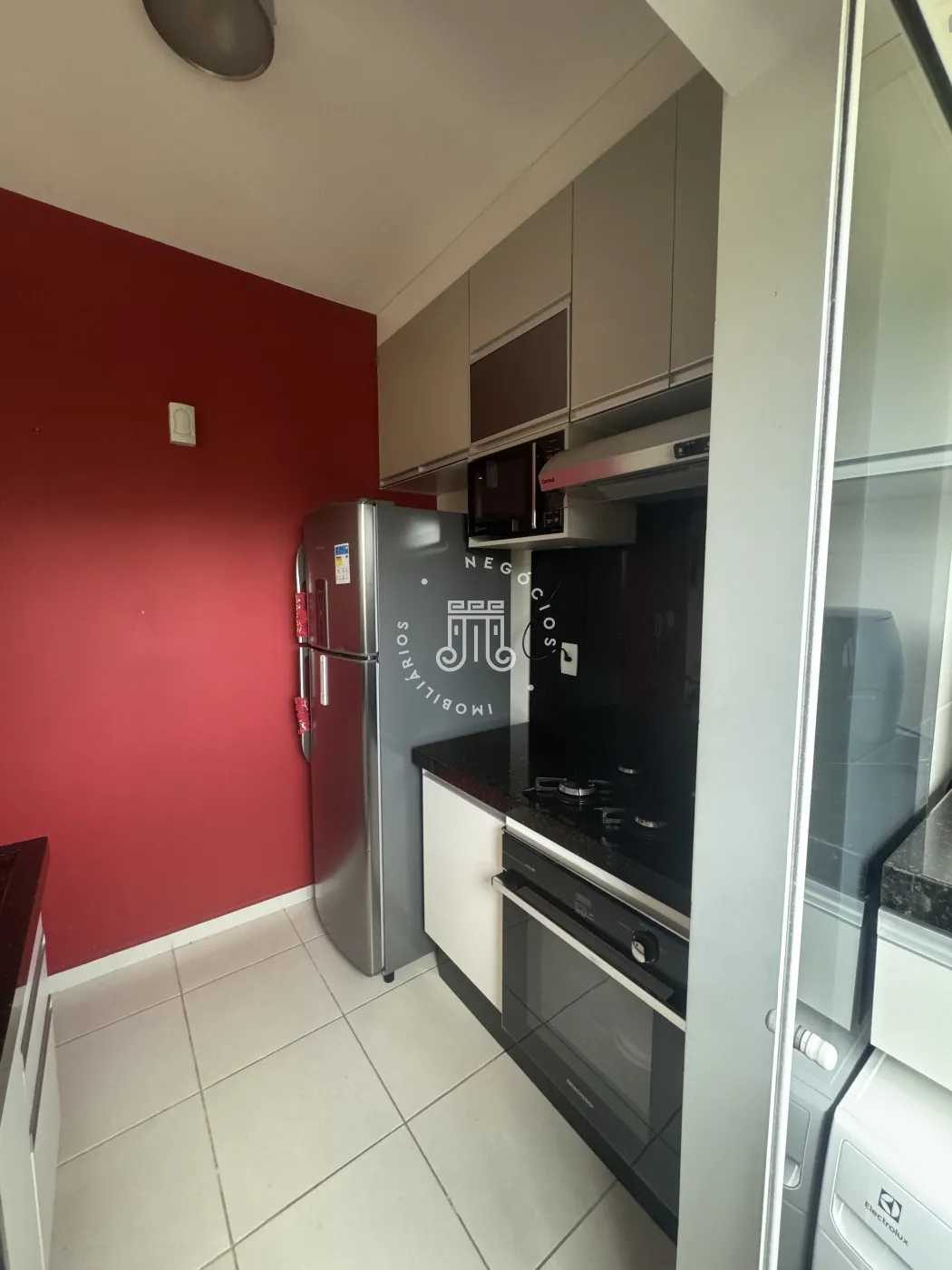 O imóvel conta com 2 quartos, sendo um deles com planejado, banheiro social com gabinete e box de vidro, sala com painel, cozinha com planejados, cooktop, forno e exaustor, área de serviço com armário, varanda envidraçada com planejado e vaga coberta para 1 carro. Sol da manhã.