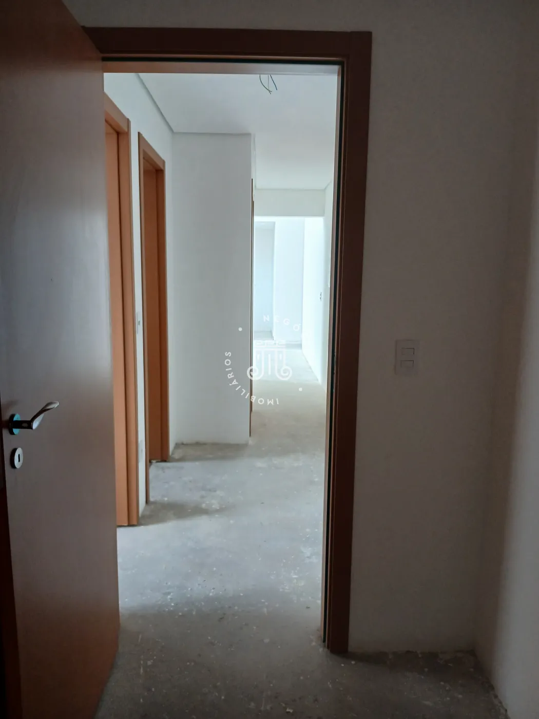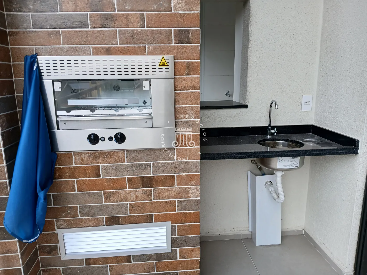 A planta conta com 3 dormitórios (sendo 1 suíte), sala ampla integrada à cozinha, terraço gourmet com churrasqueira a gás e área técnica para ar-condicionado.