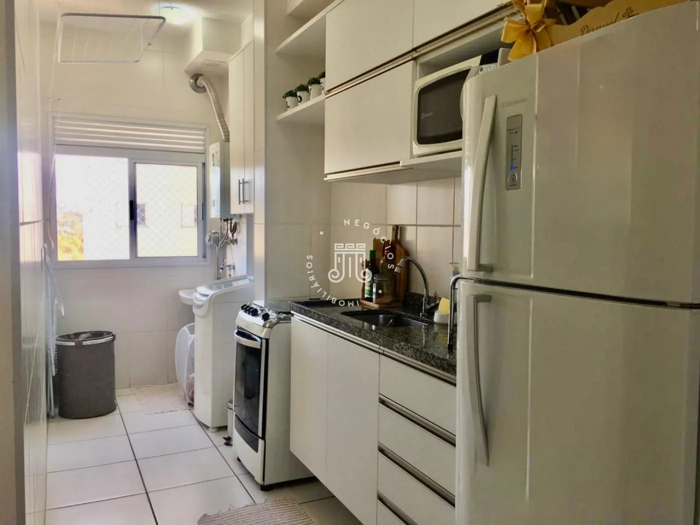 Apartamento a venda com 2 quartos, sendo 1 suíte, com armários planejados, banheiro social, sala 2 ambientes integrada com espaço gourmet com churrasqueira, cozinha com armários planejados, área de serviço, piso porcelanato, sol da tarde, vista livre para Serra do Japi, 1 vaga coberta.