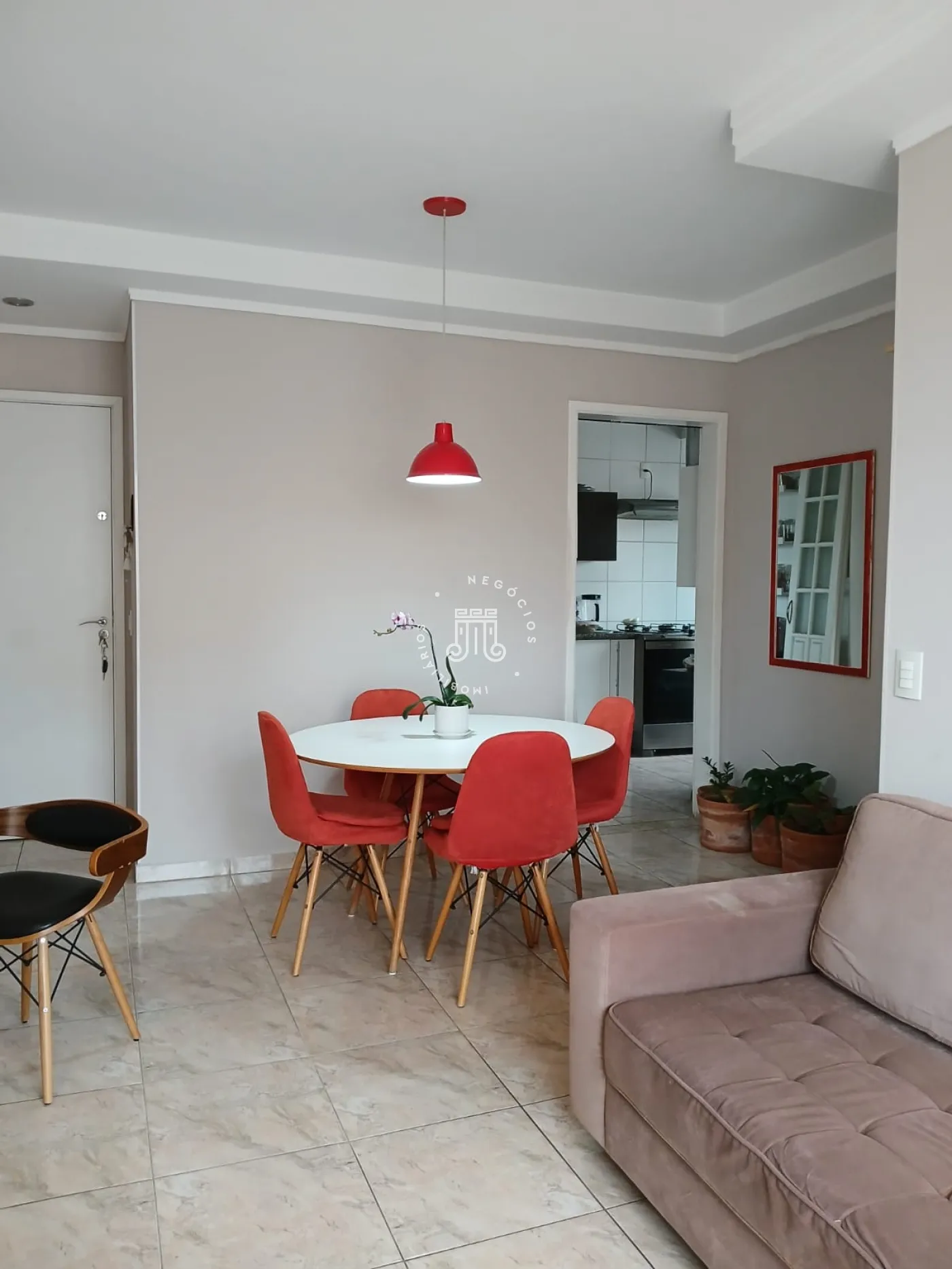 Com 02 dormitórios, cozinha com armários , área de serviço, sacada, banheiro social e 01 vaga de garagem, fino acabamento com piso frio, último andar.