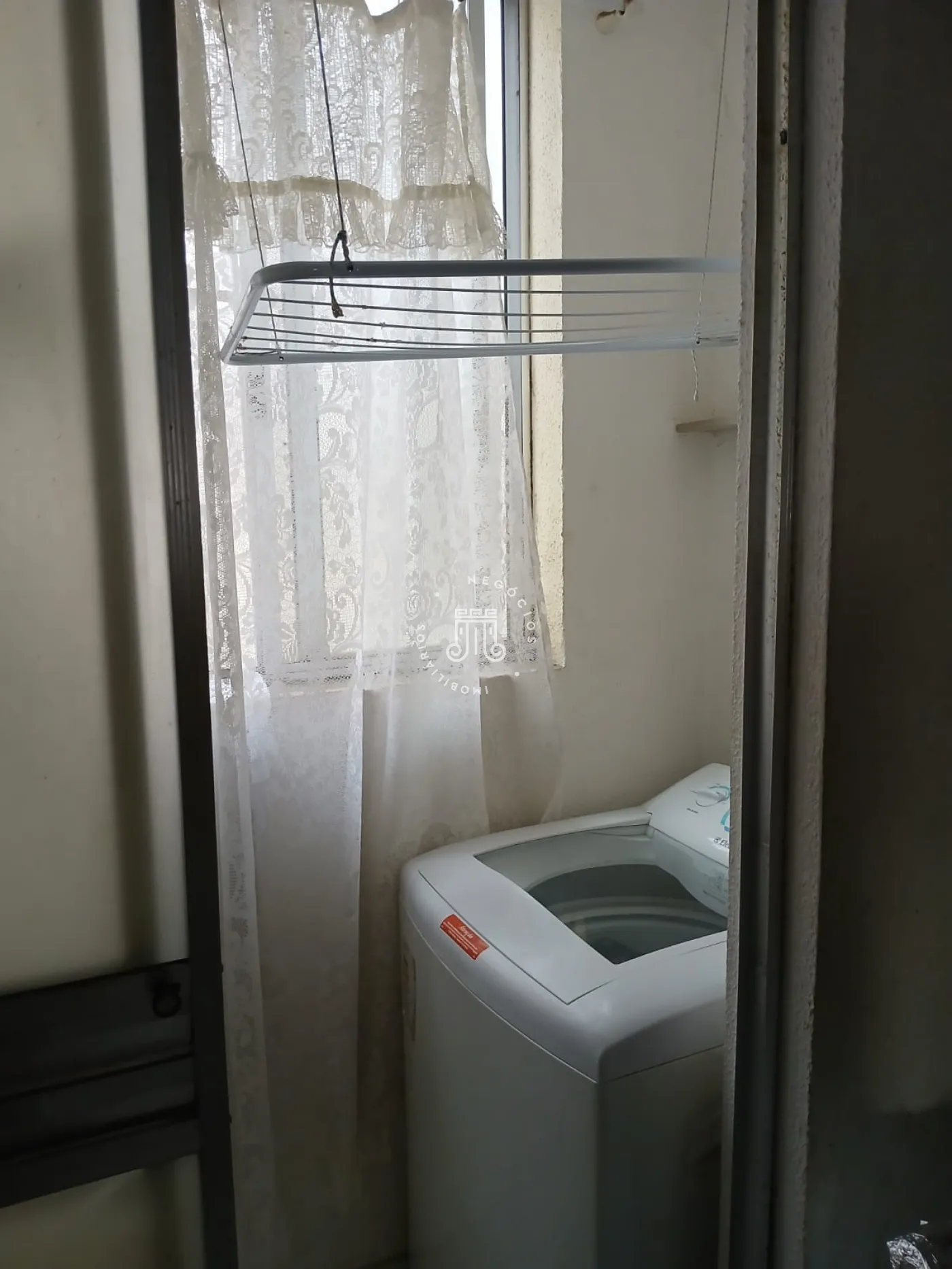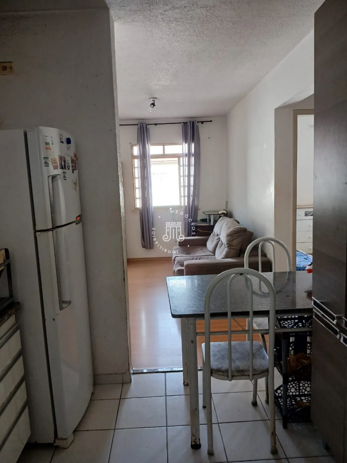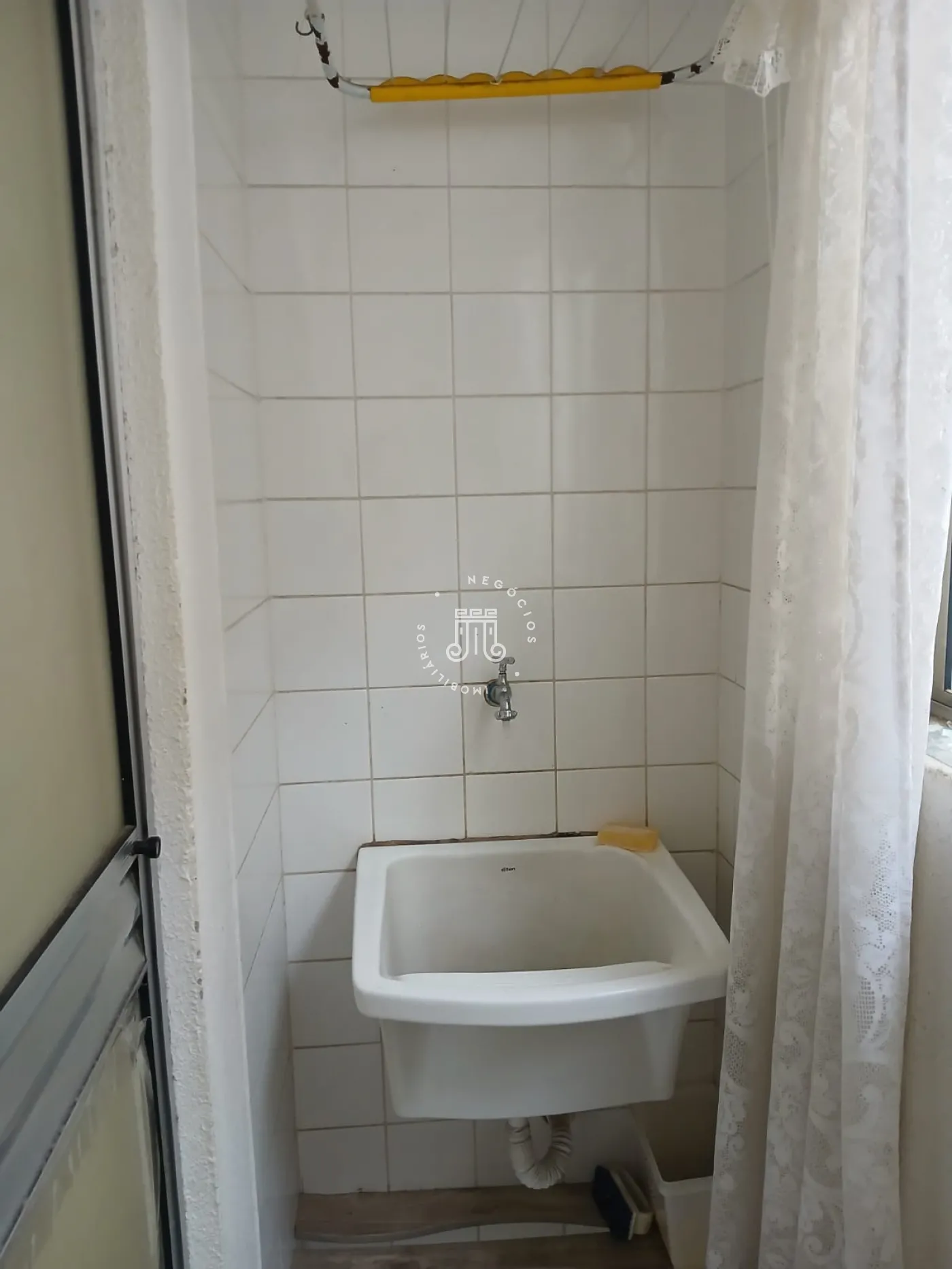 Apartamento com 60m², distribuídos em 2 quartos, sala, cozinha, área de serviço e 1 banheiro.