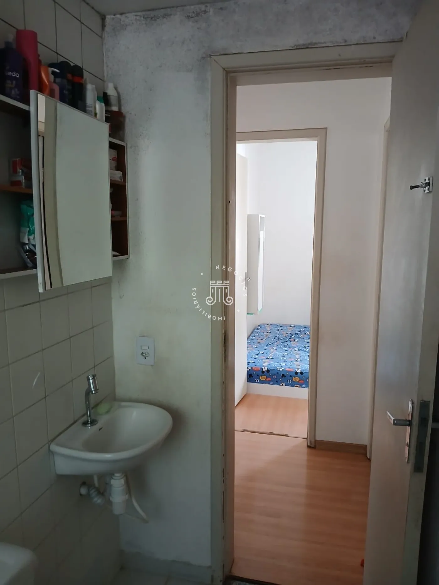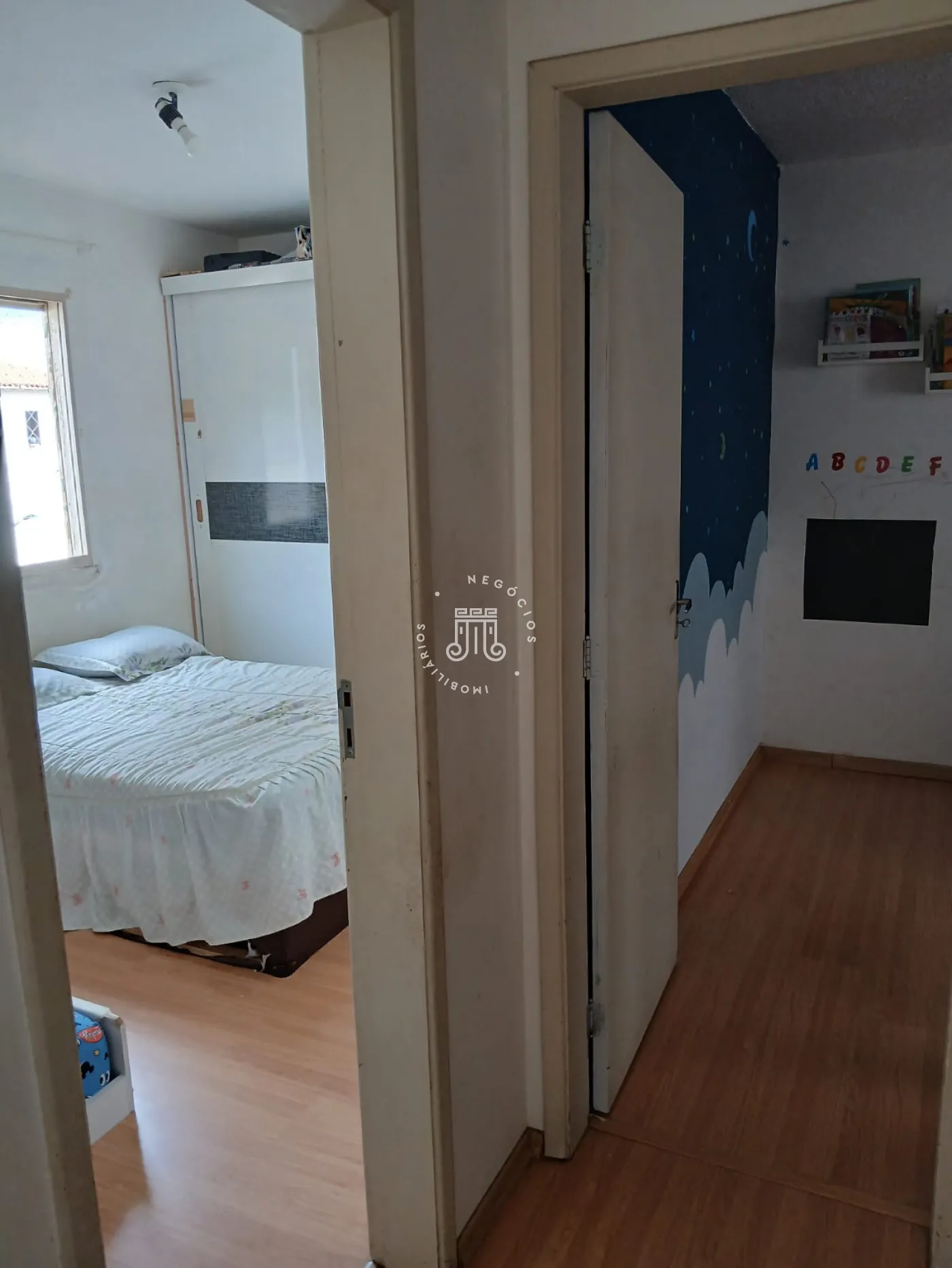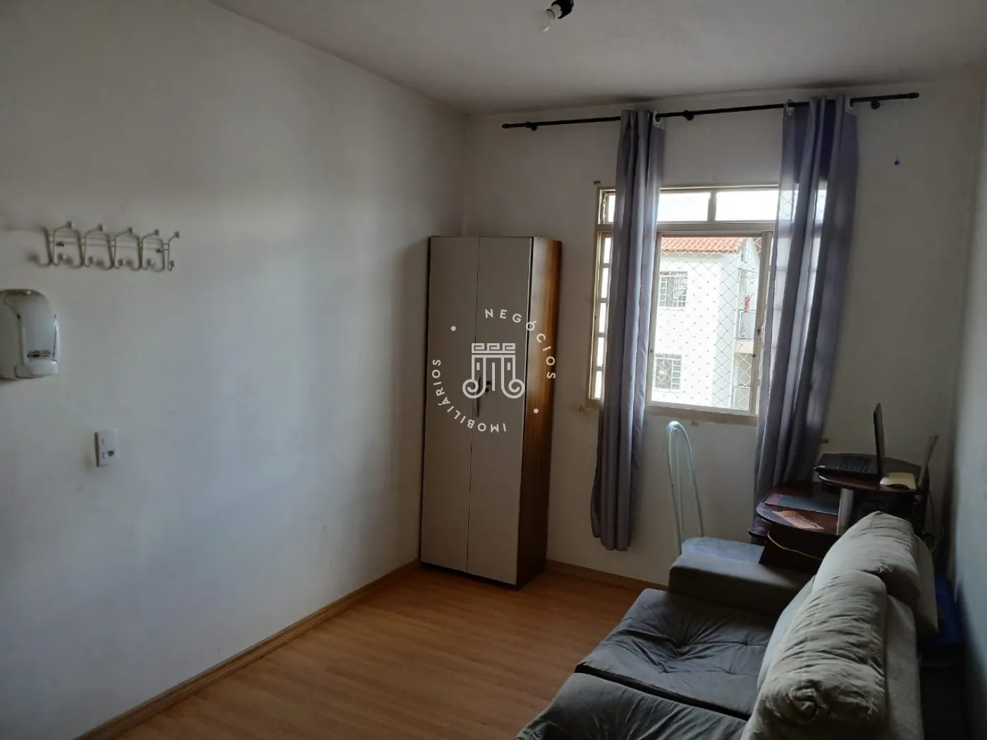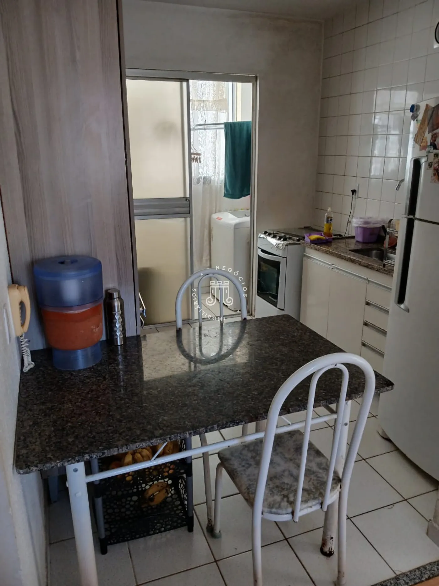 Apartamento com 60m², distribuídos em 2 quartos, sala, cozinha, área de serviço e 1 banheiro.