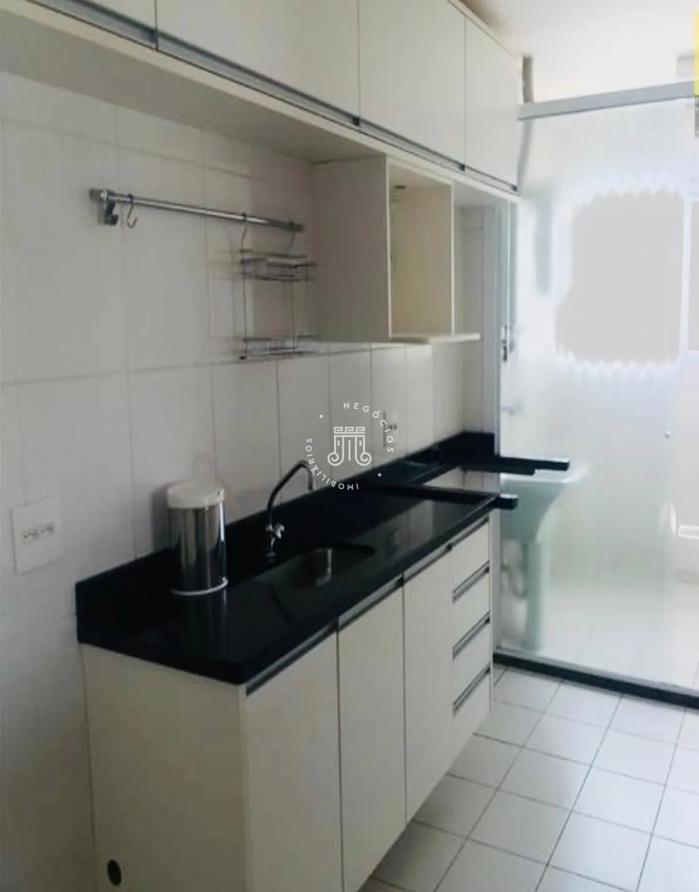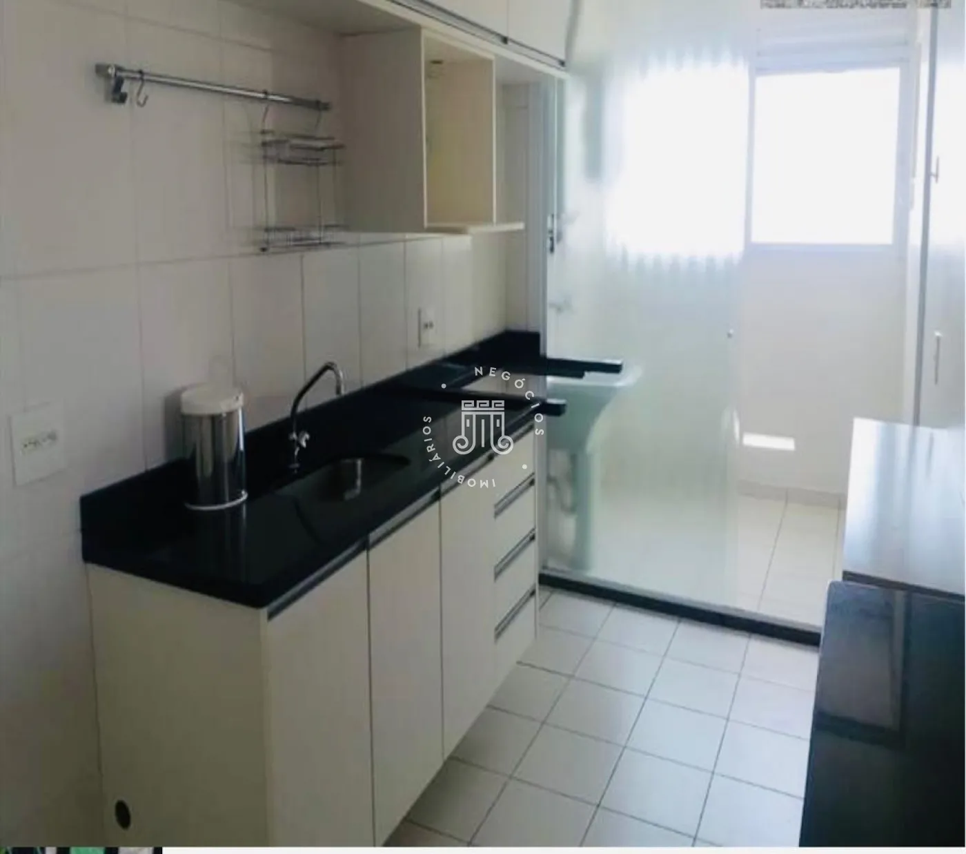 Apartamento à venda com 3 quartos sendo um deles suíte. Sala de estar integrada com sala de jantar, cozinha com armários planejados, lavanderia, banheiro e varanda. Andar alto. 2 vagas de garagem cobertas.