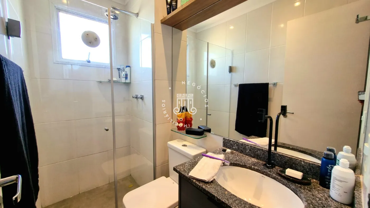 O condomínio dispõe de portaria 24 horas, vagas para visitantes e área de lazer completa com piscina, academia, quadra, espaço gourmet, salão de festas, brinquedoteca, playground, salão de jogos e sauna.
