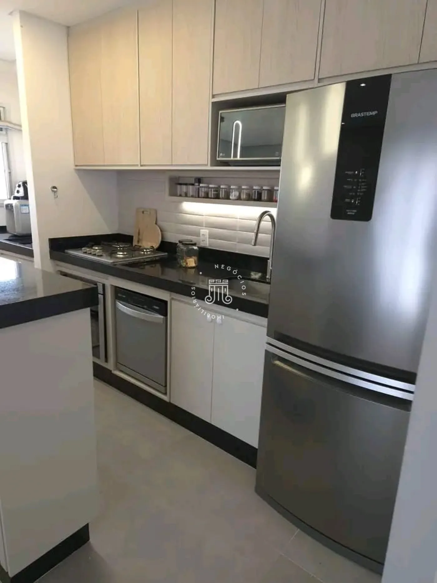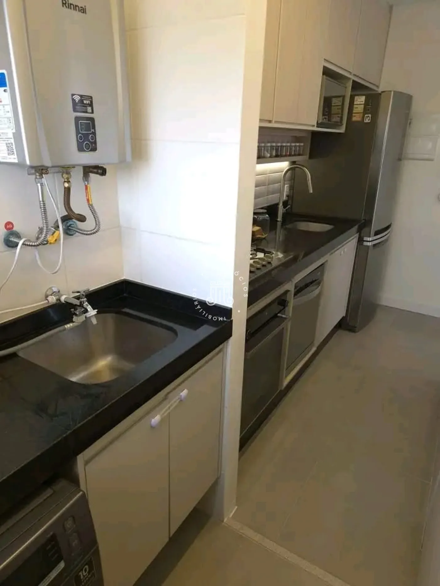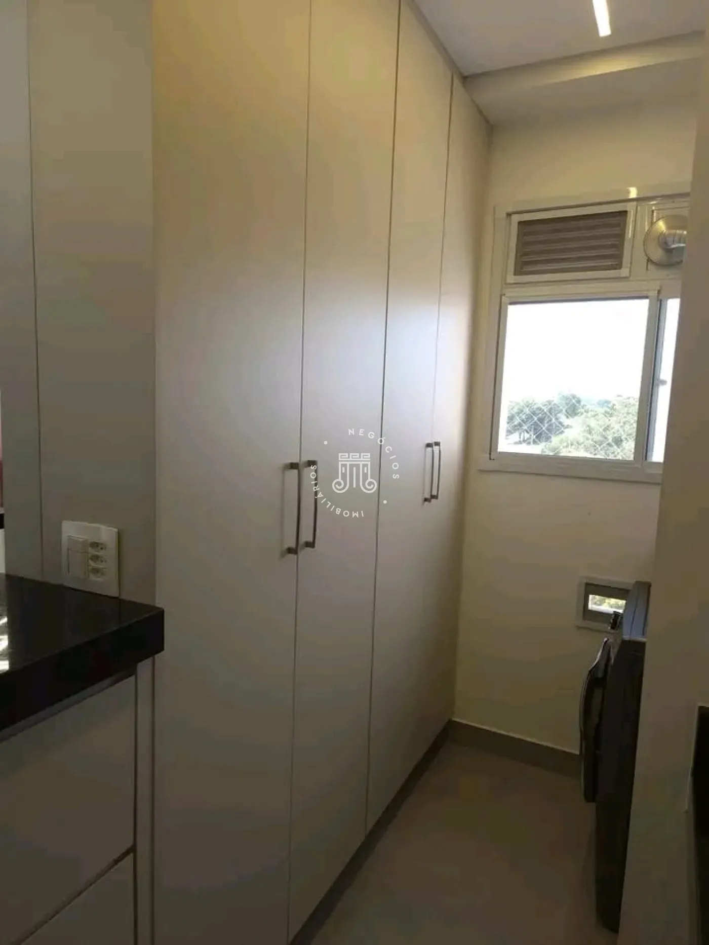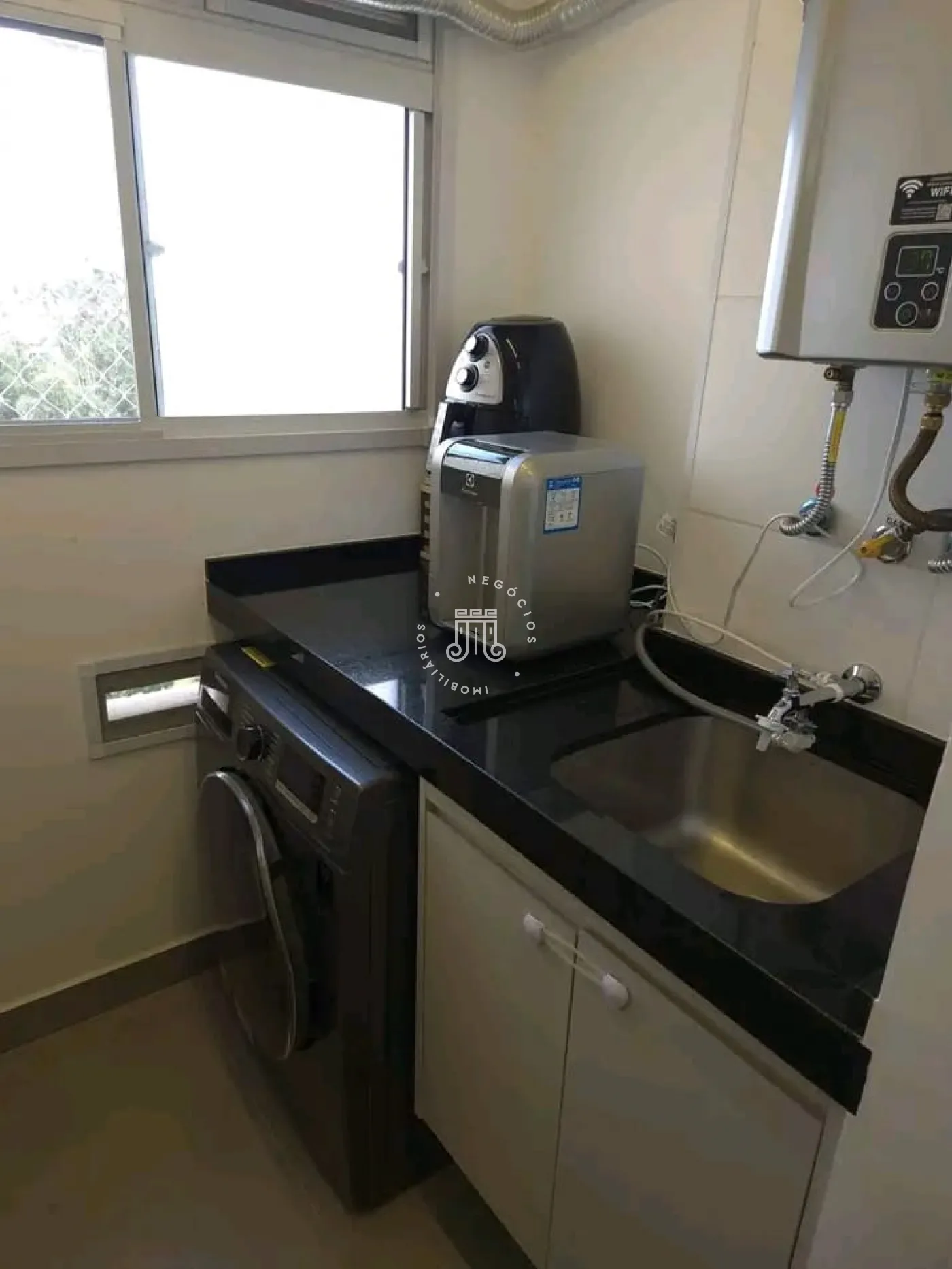 Com 3 dormitórios, sendo 1 suíte, todos planejados, sala para 2 ambientes com varanda gourmet, cozinha planejada, lavanderia com armários, banheiro social completo, 1 vaga de garagem. Possui ainda linda vista, mármores na cozinha, lavanderia, sacada e banheiros, aquecimento à gás.