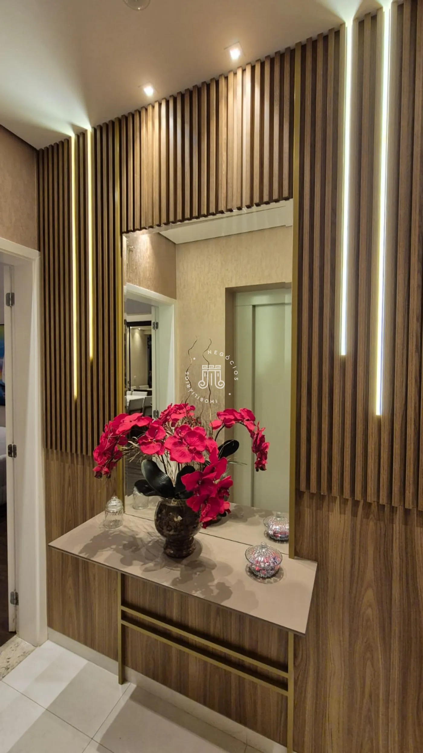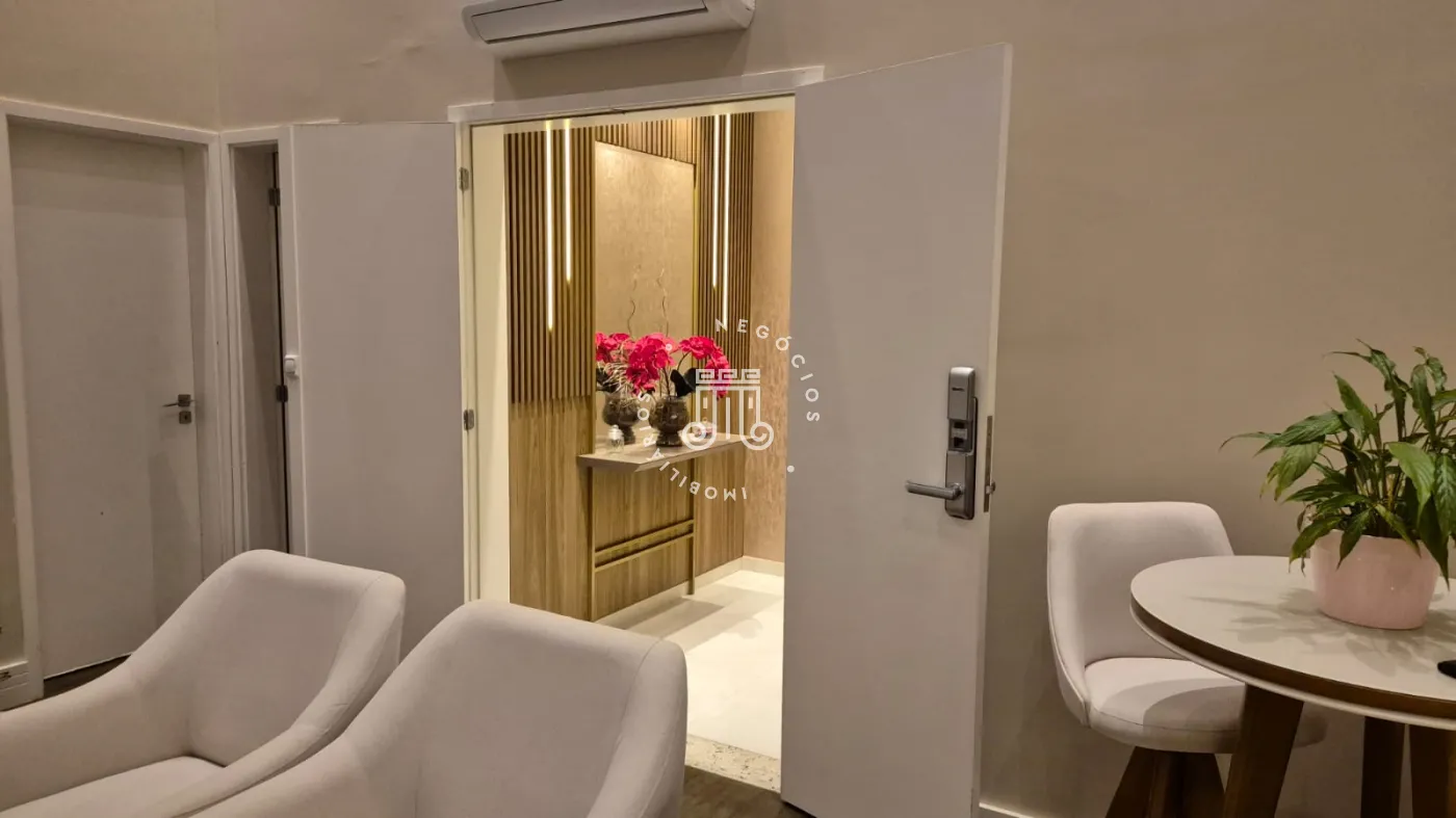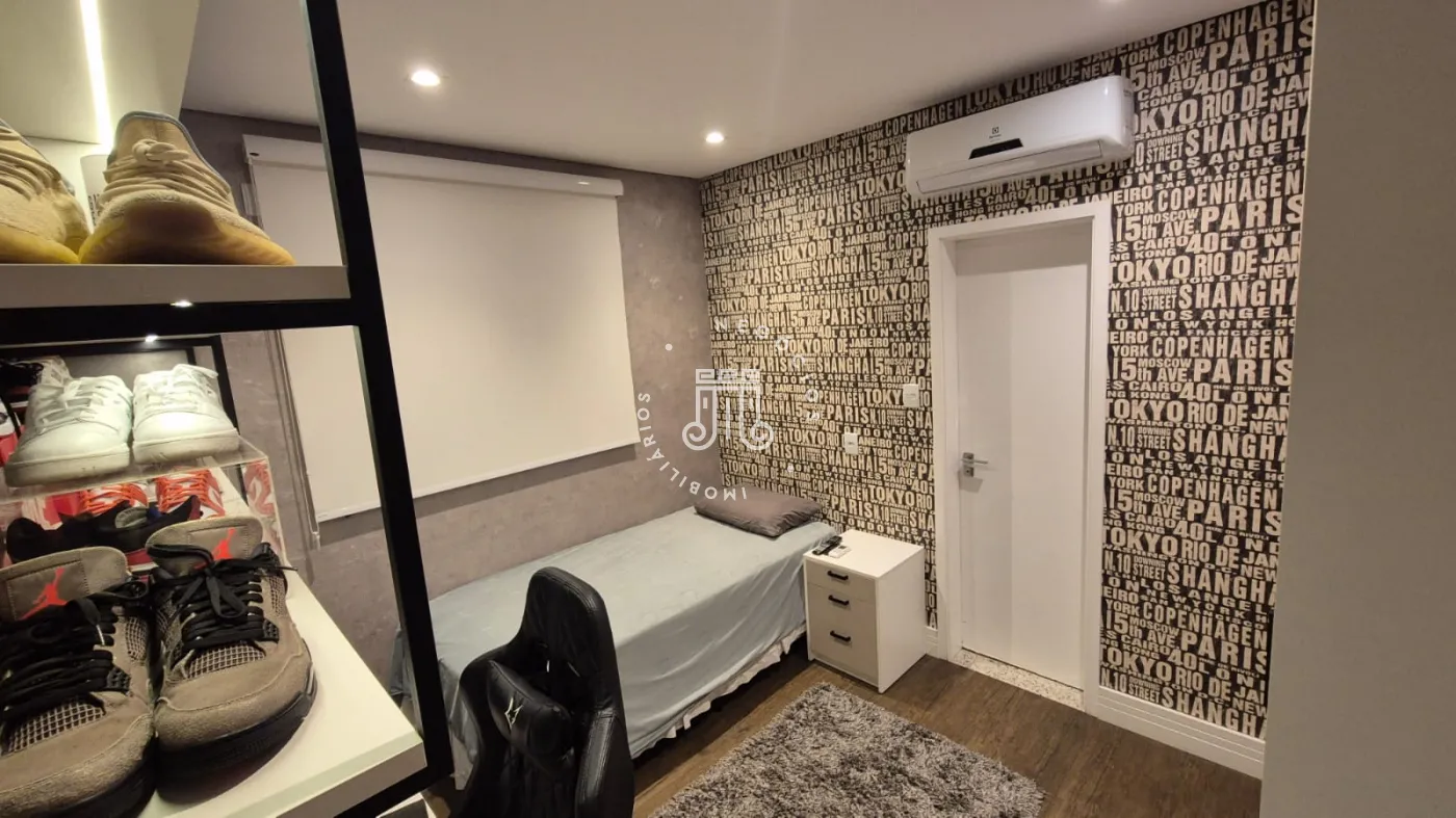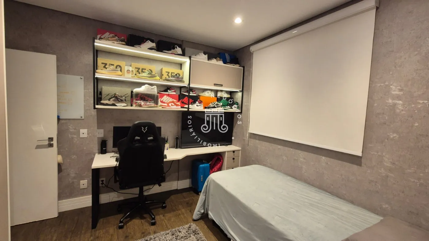Imóvel possui quatro suítes todas com móveis planejados, todos os banheiros com box de vidro, escritório planejado, lavabo, área gourmet, área de serviço com armários planejados, banheiro de serviço, cozinha planejada com cooktop e forno embutido, sala ampla, sendo de jantar e TV. Todos os planejados, alguns móveis e eletrodomésticos ficam no apartamento.