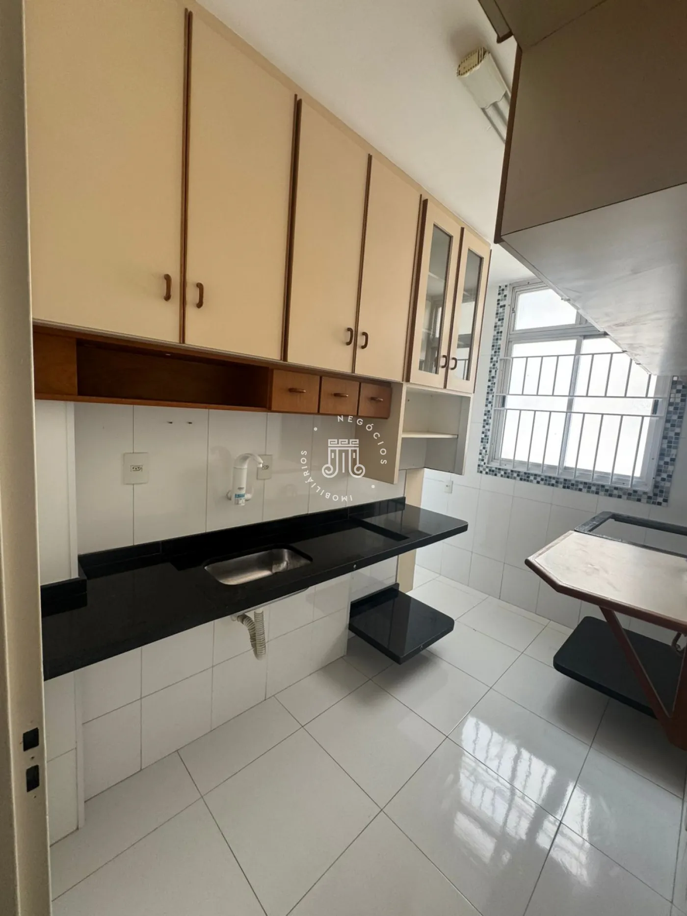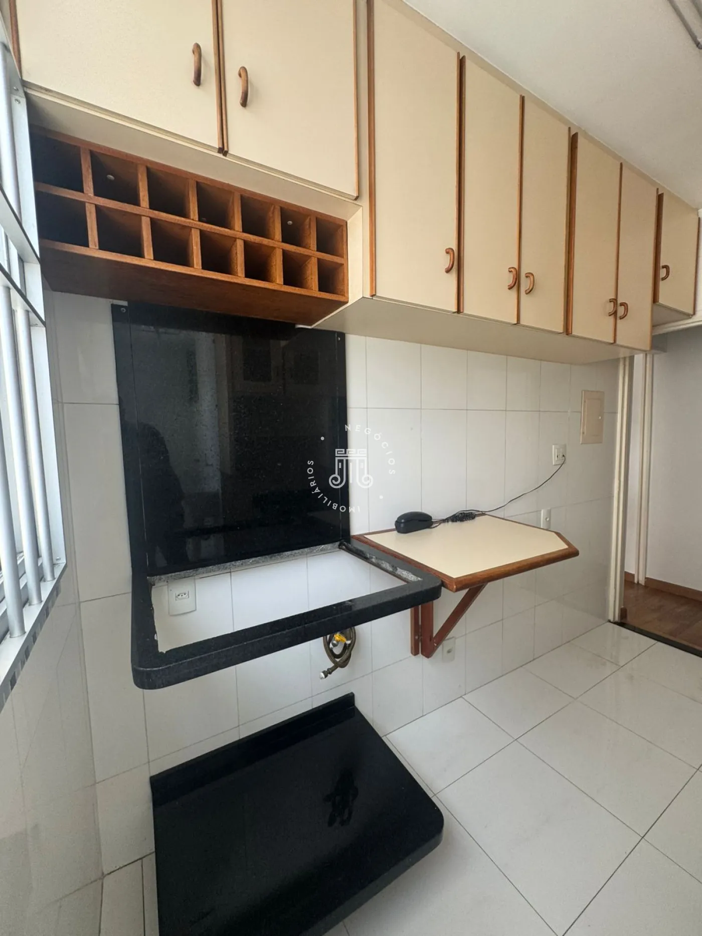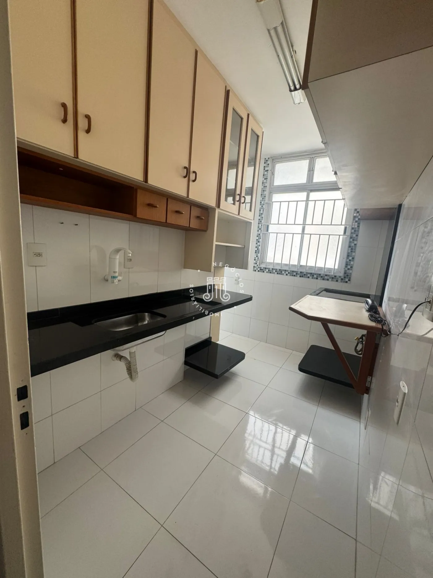 Está disponível para venda um apartamento com área útil de 70 metros quadrados. O imóvel possui três dormitórios, sendo um deles suíte, todos equipados com armários. Conta ainda com banheiro social, sala dividida em dois ambientes, cozinha com armários, área de serviço e uma vaga de garagem.