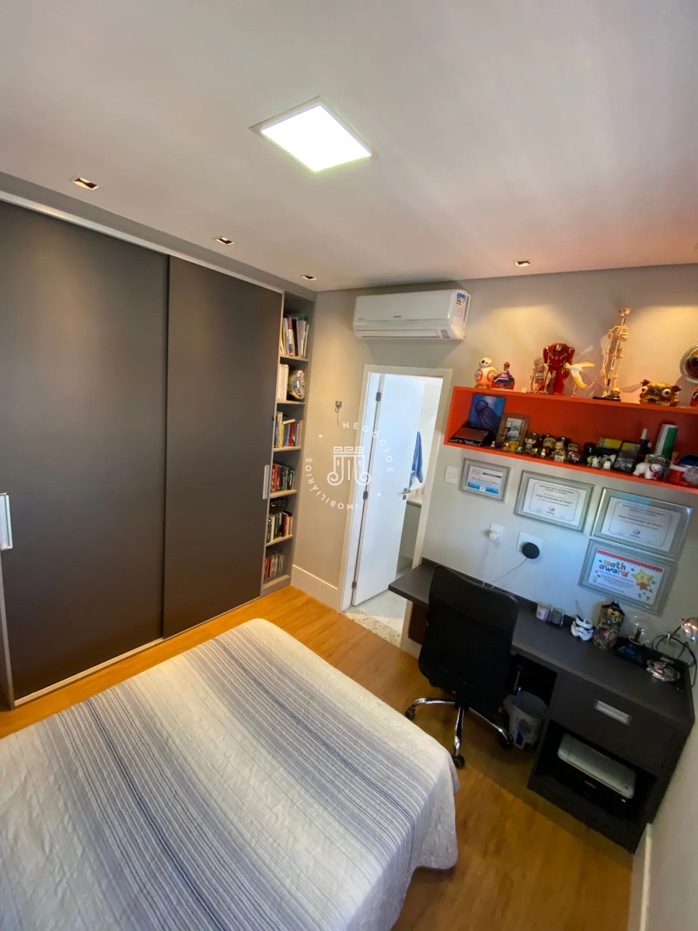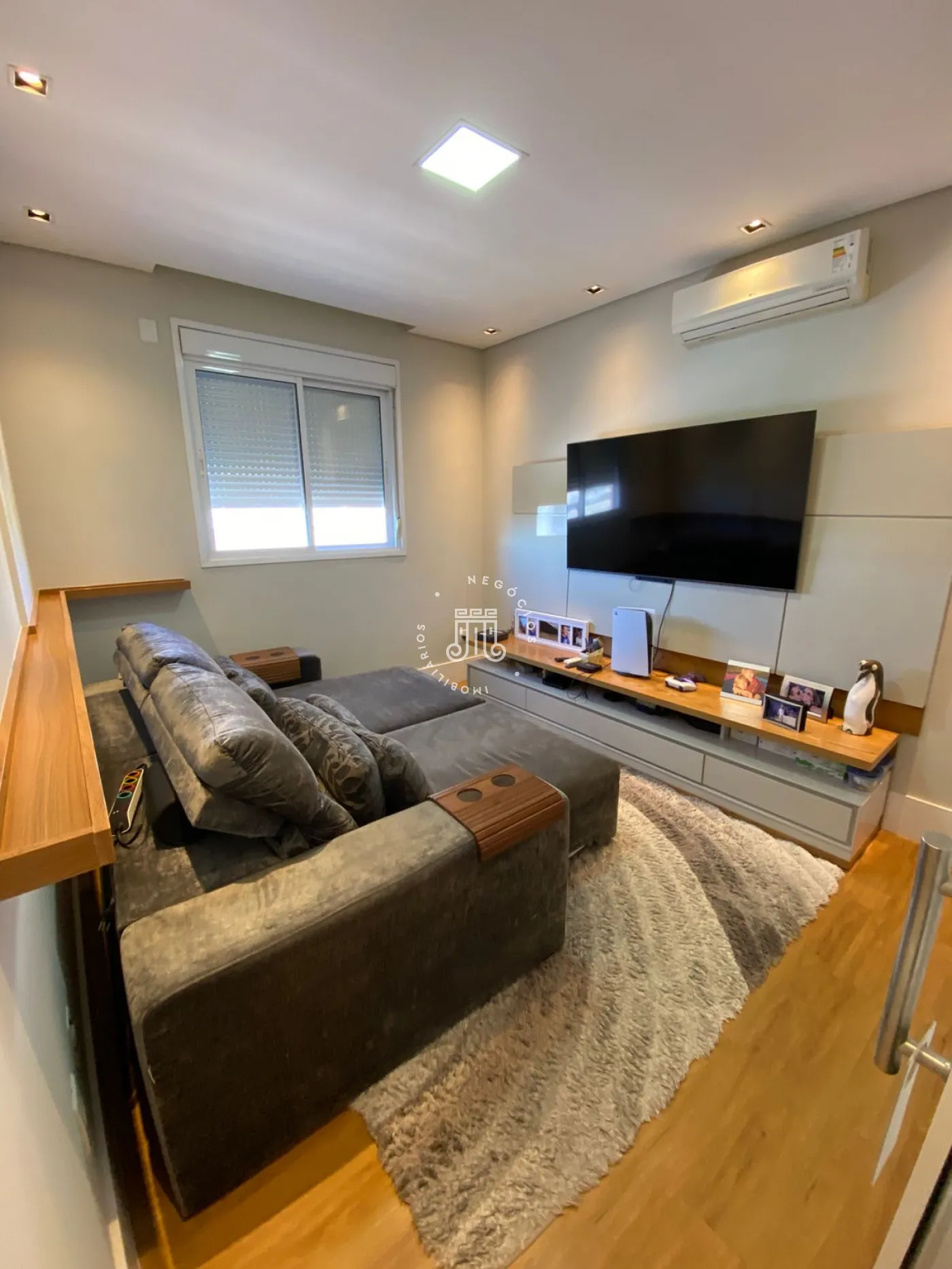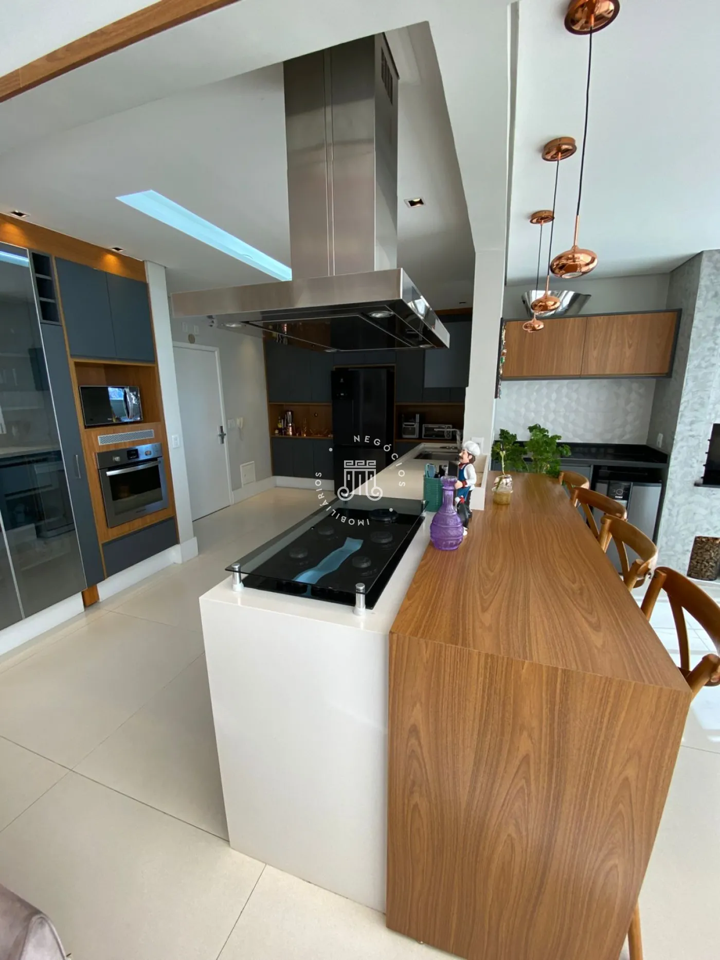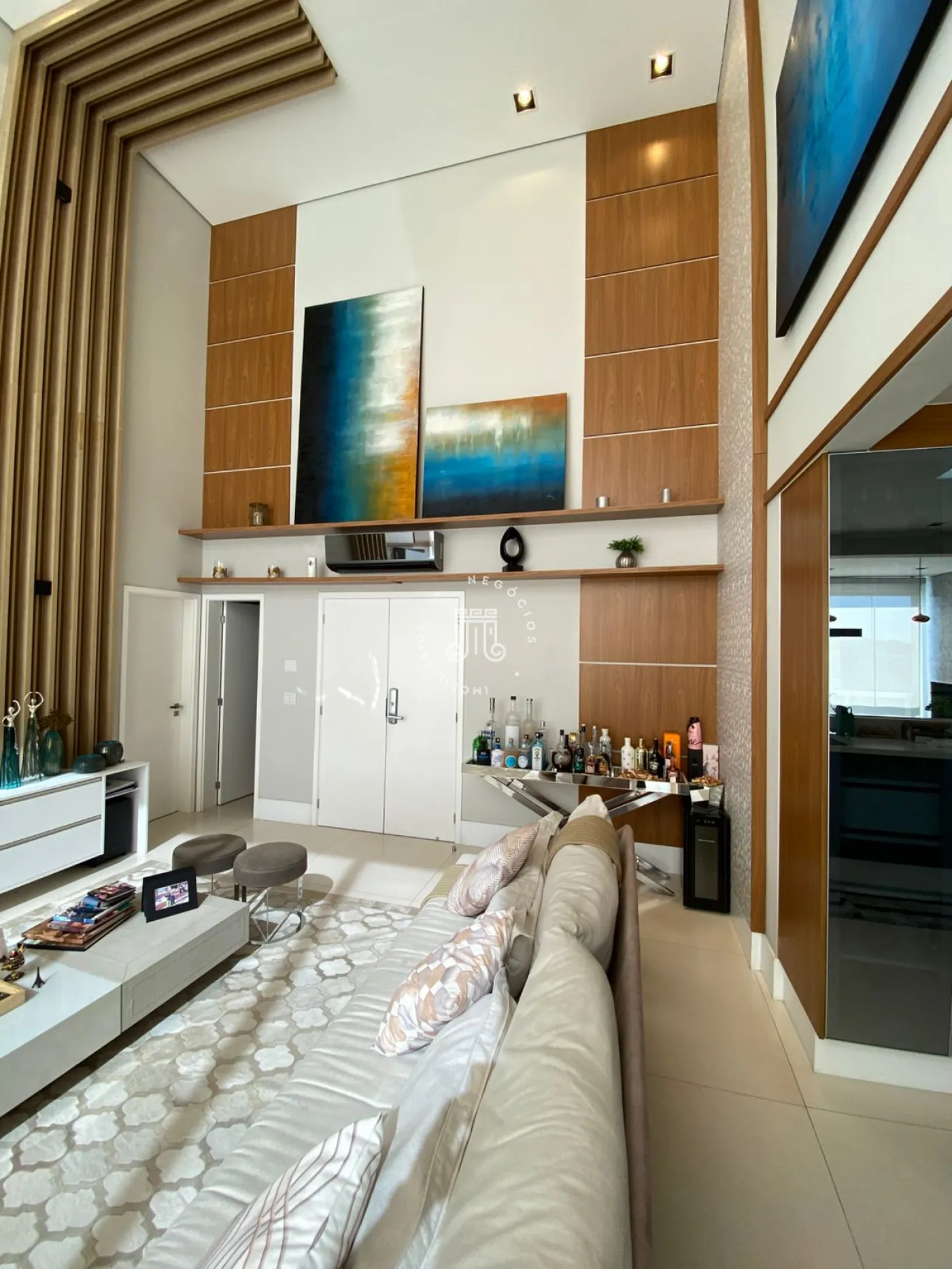 Imóvel com móveis planejados em todos os cômodos e ar-condicionado instalado em todos os ambientes. Piso vinílico nos quartos e porcelanato na sala e na cozinha. Cozinha integrada à sala e à área gourmet. Sacada com vista para o pôr do sol. 3 vagas de garagem cobertas.