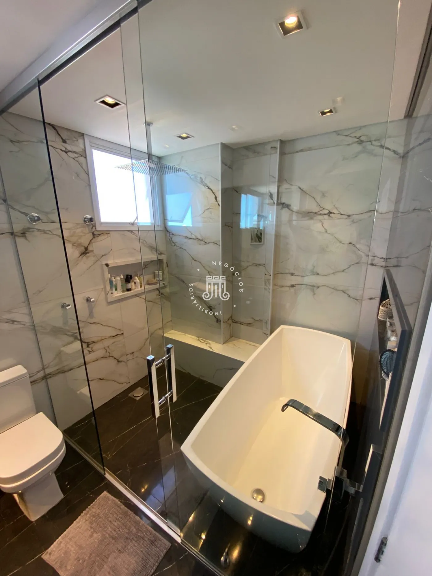 Apartamento com 189m², composto por 3 suítes, sendo 1 suíte máster com banheiro ampliado e banheira de imersão.