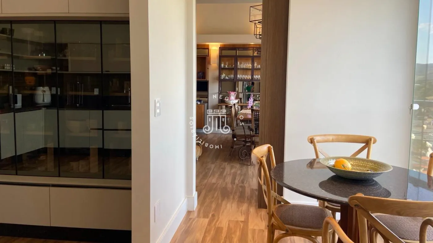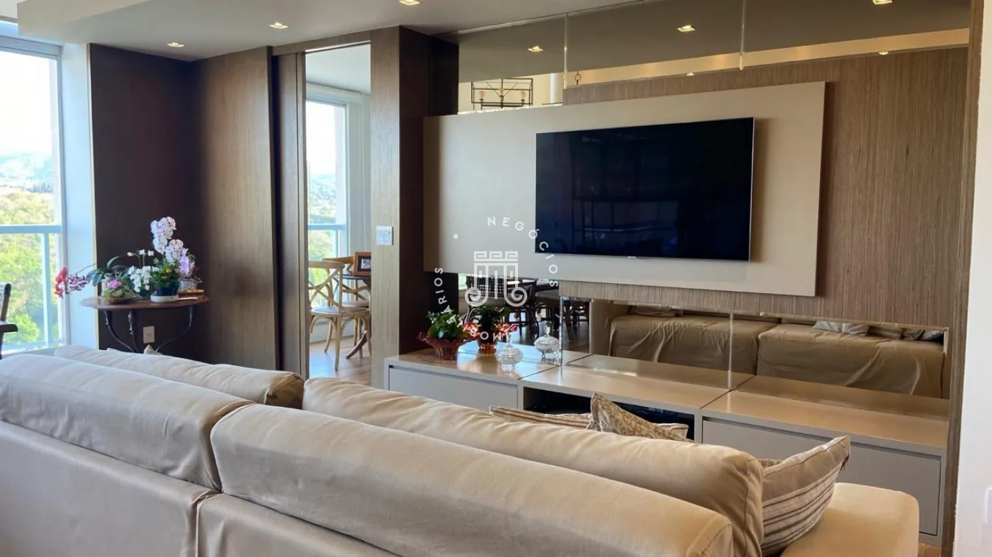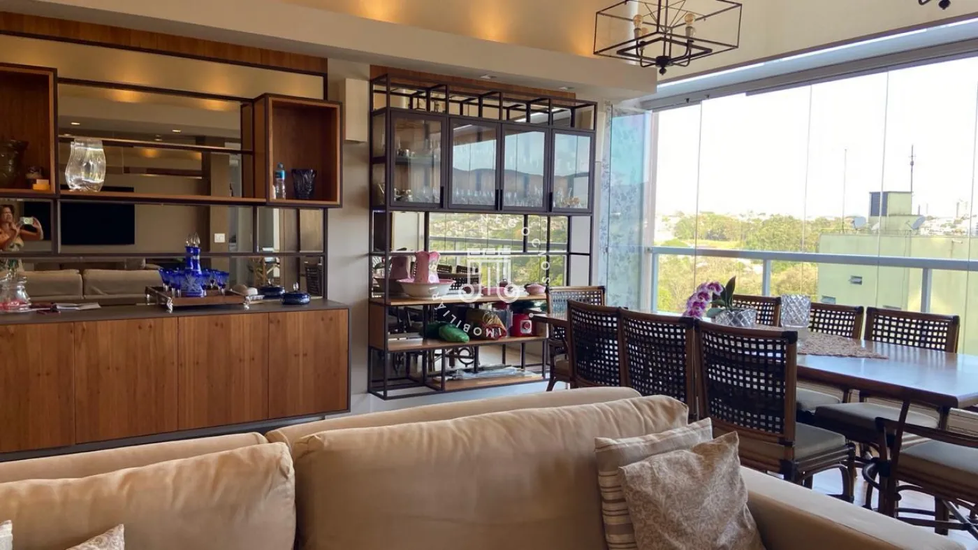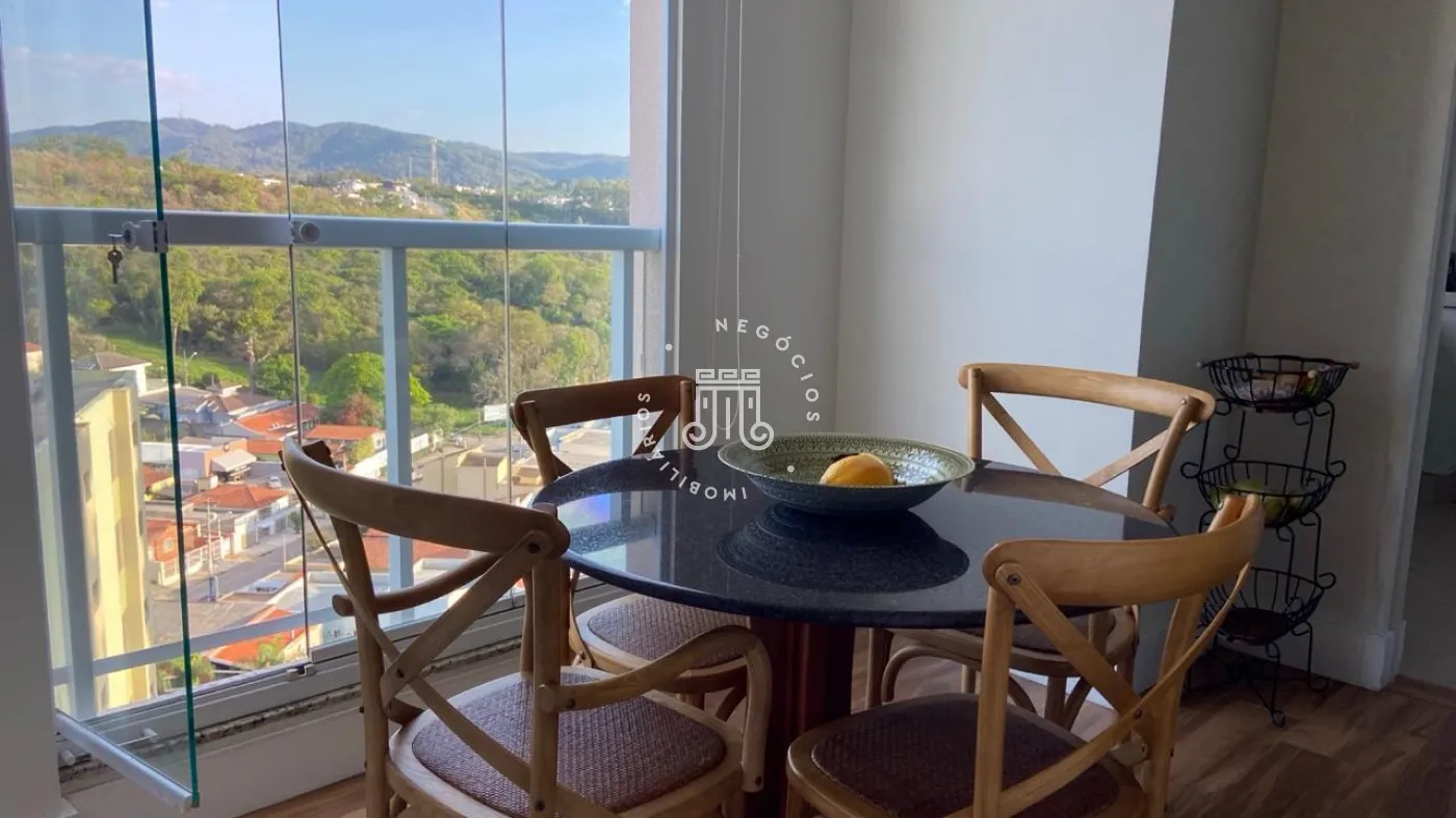Apartamento a venda com 189m², vista para Serra do Japi, 3 suítes todos com armários planejados, escritório com moveis planejados, sala de jantar e estar integrados com a varanda com pé direito duplo, piso nivelado e fechamento em vidro, persianas automatizadas, lavabo, cozinha com armários planejados, cooktop, coifa, maquina lava louças, torre com microondas e forno, todos da marca Elettromec, área de serviço com armários, banheiro de serviço, todos os cômodos com ar condicionado inverter Fujitsu e Daikin, piso porcelanato, 3 vagas, ponto para instalação de carregador para carro elétrico.