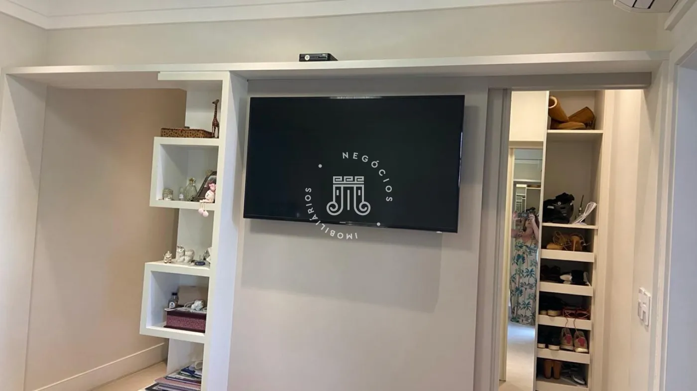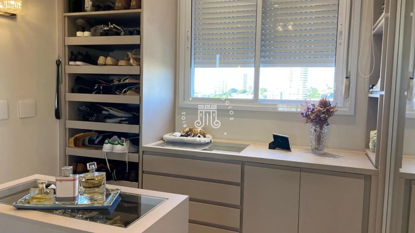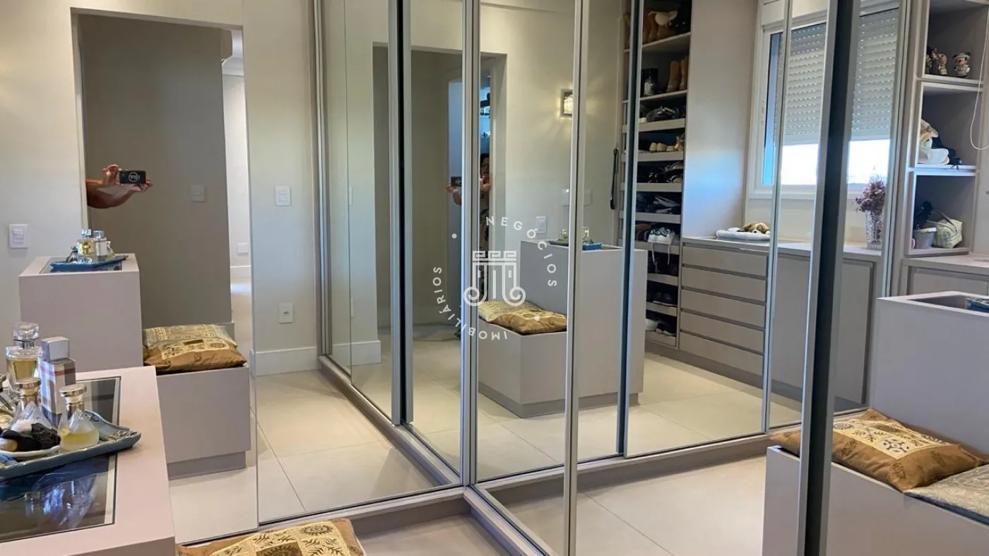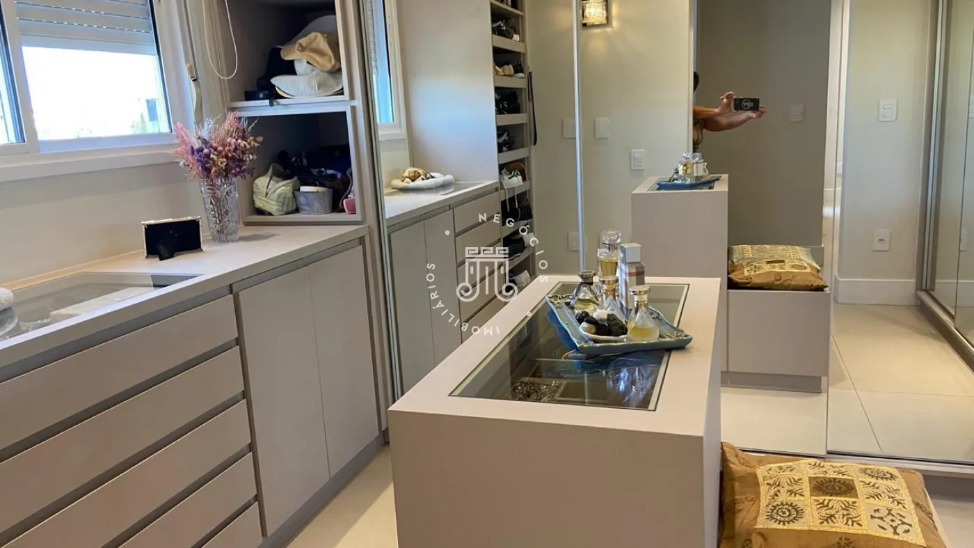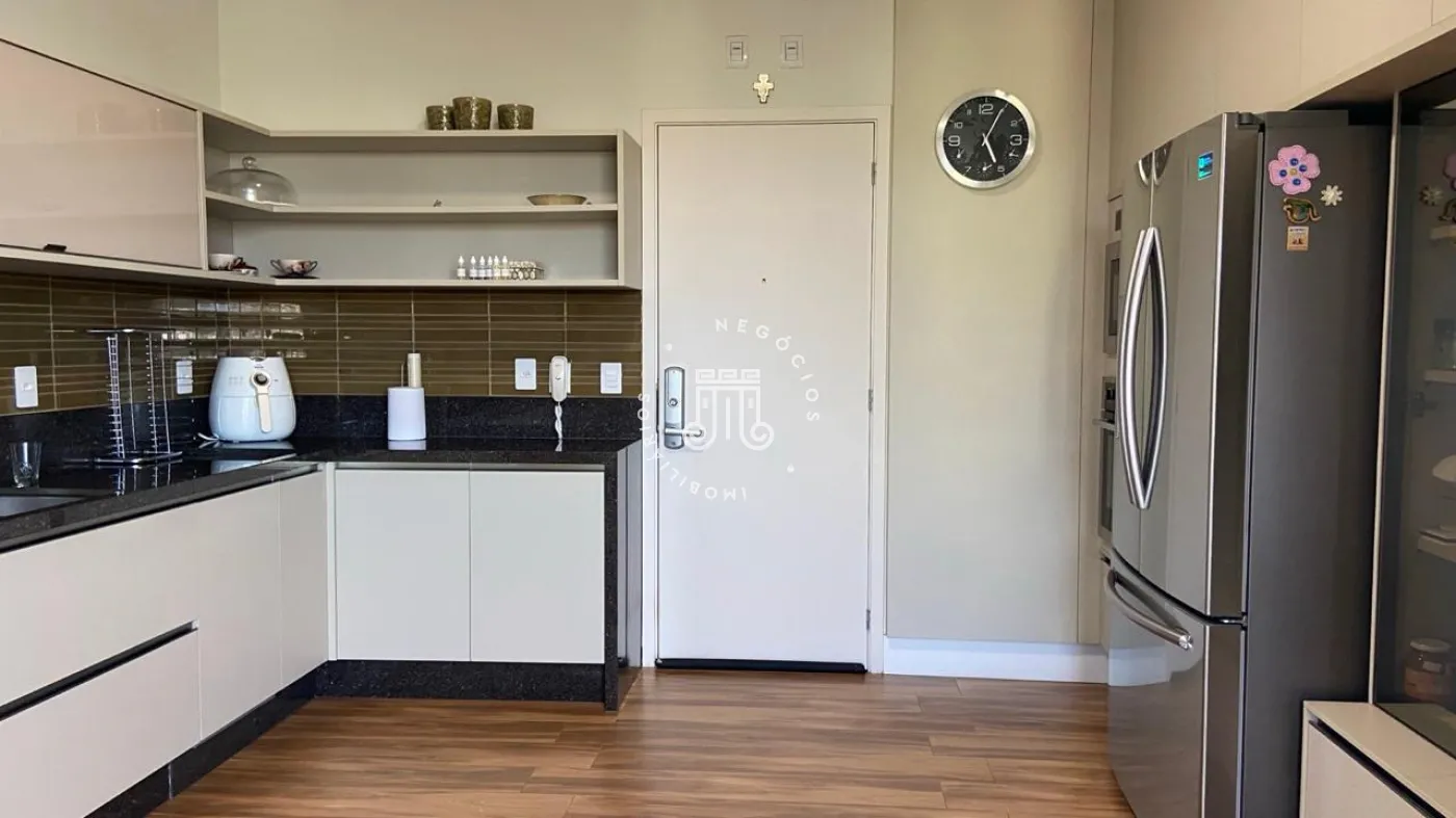 Apartamento a venda com 189m², vista para Serra do Japi, 3 suítes todos com armários planejados, escritório com moveis planejados, sala de jantar e estar integrados com a varanda com pé direito duplo, piso nivelado e fechamento em vidro, persianas automatizadas, lavabo, cozinha com armários planejados, cooktop, coifa, maquina lava louças, torre com microondas e forno, todos da marca Elettromec, área de serviço com armários, banheiro de serviço, todos os cômodos com ar condicionado inverter Fujitsu e Daikin, piso porcelanato, 3 vagas, ponto para instalação de carregador para carro elétrico.