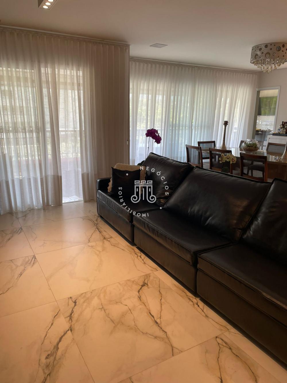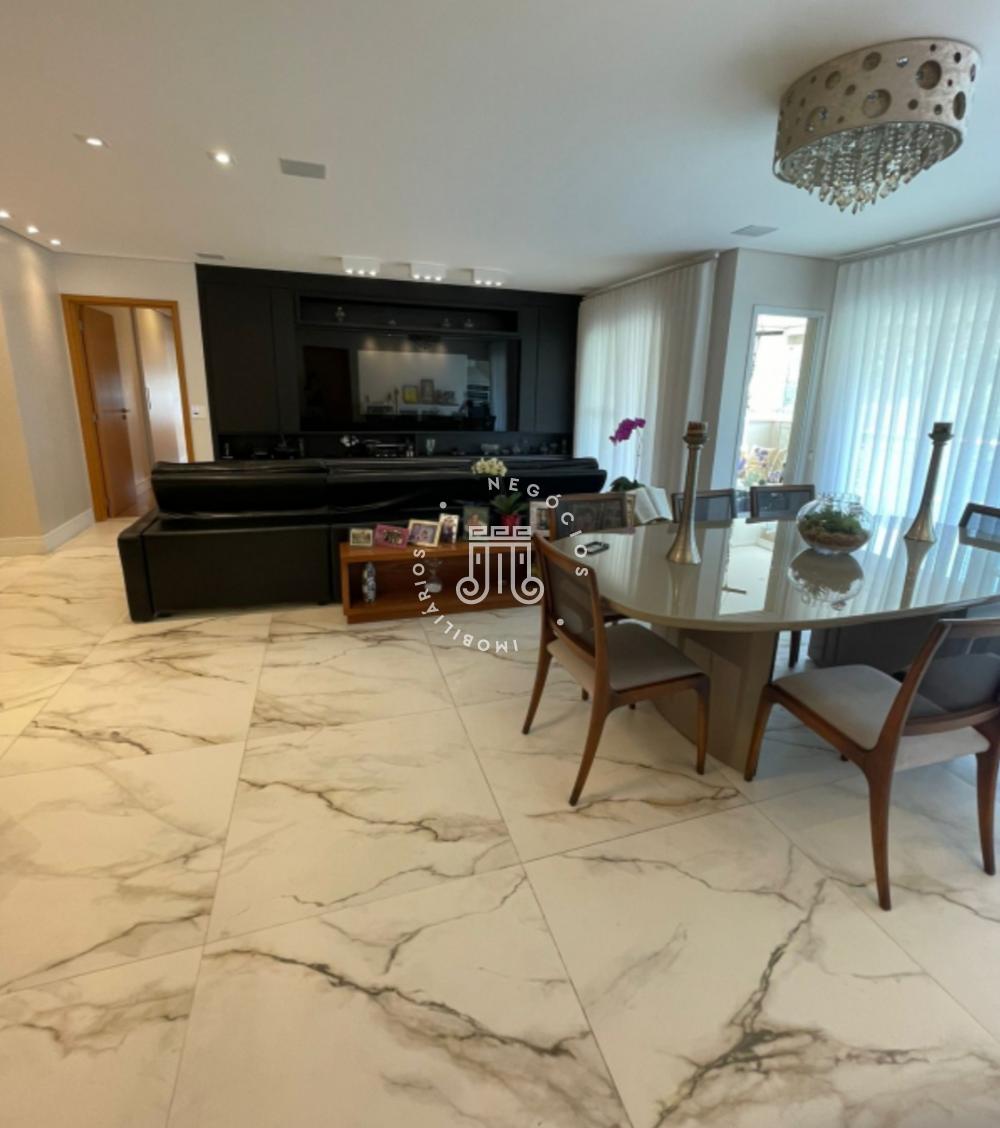 Composto por 4 suítes com armários planejados e ar-condicionado, sala para três ambientes com ar-condicionado, cozinha planejada, lavabo, área de serviço com armários, varanda gourmet, elevador social privativo e 4 vagas de garagem.