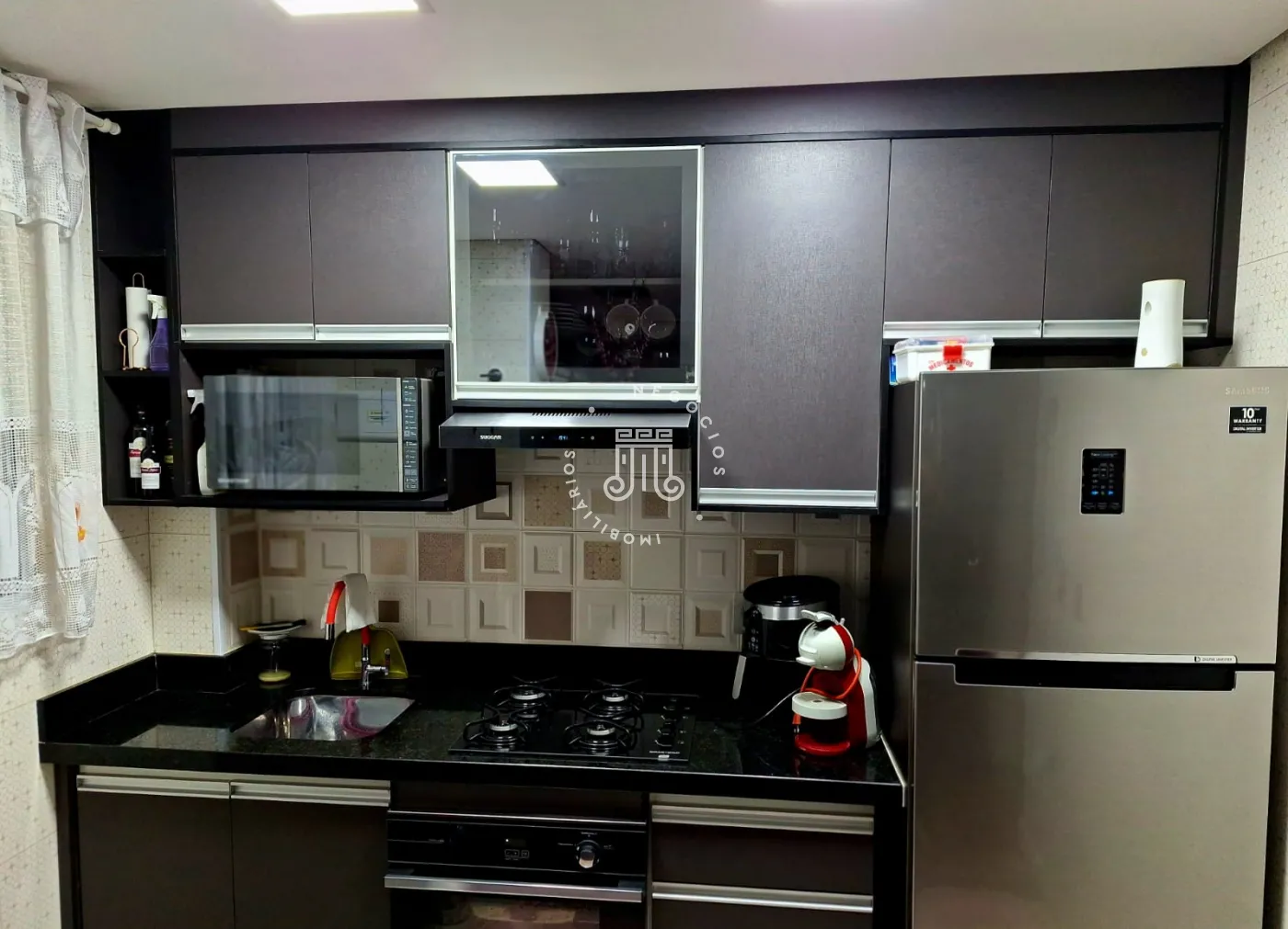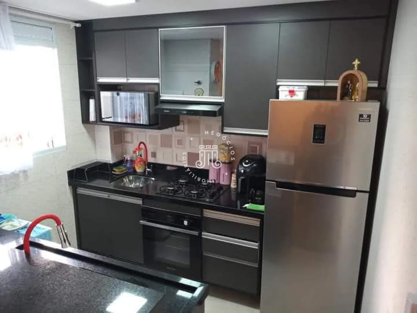 Apartamento à venda com 2 quartos, cozinha totalmente equipada com armários planejados e forno embutido. Sala de estar e jantar conectadas. Banheiro moderno com box de vidro. Uma vaga de garagem coberta.