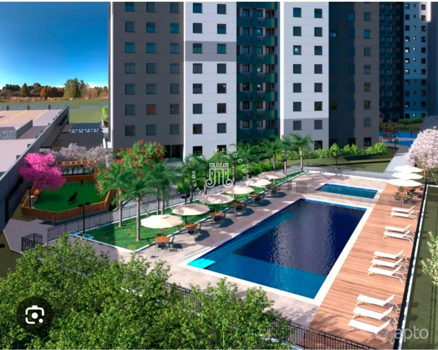 Lazer super completo, com piscina adulto, infantil, churrasqueiras, salões de festas, academia, brinquedoteca, quadra, salão jogos etc. Será entregue em Abril de 2026.