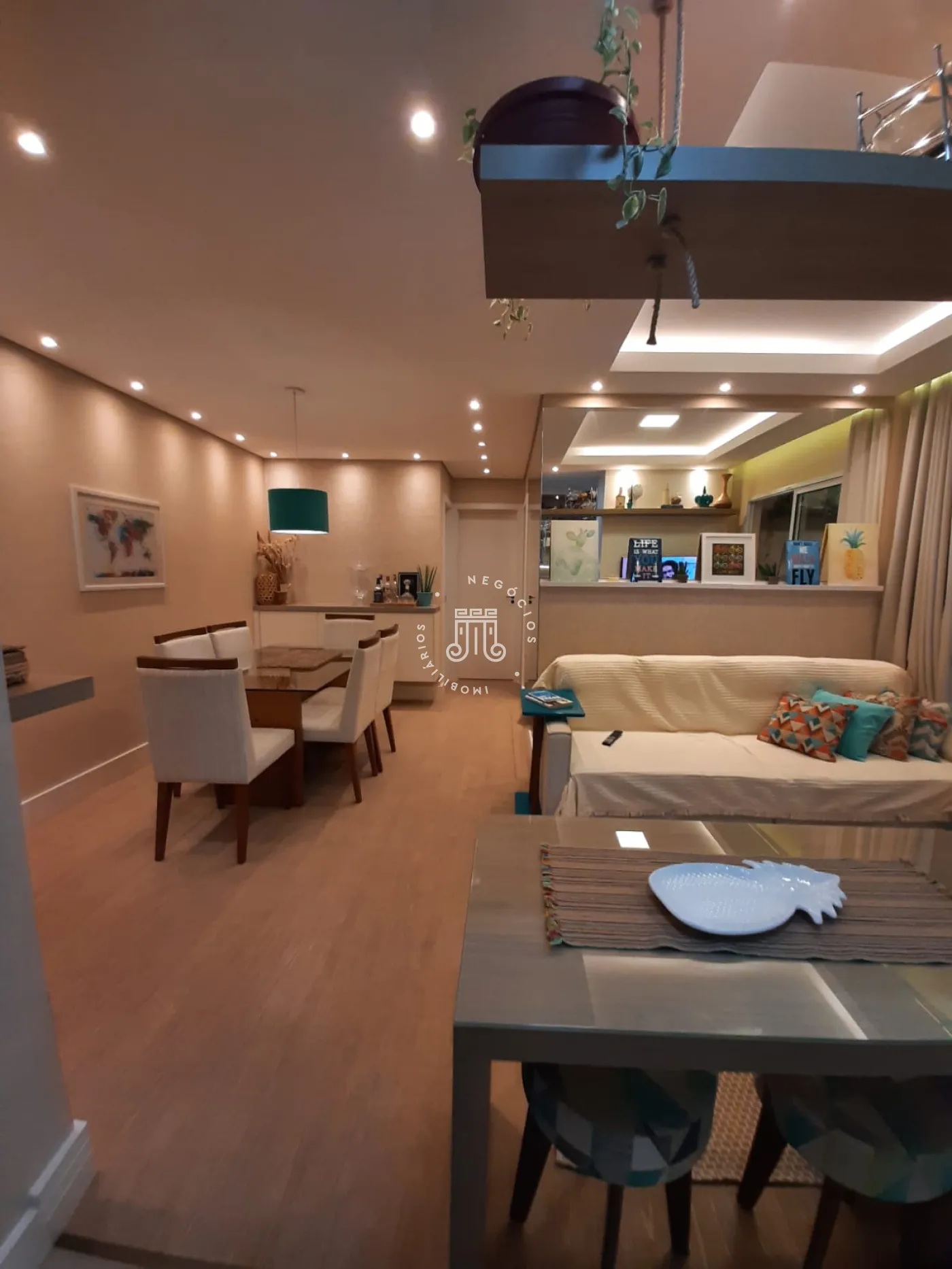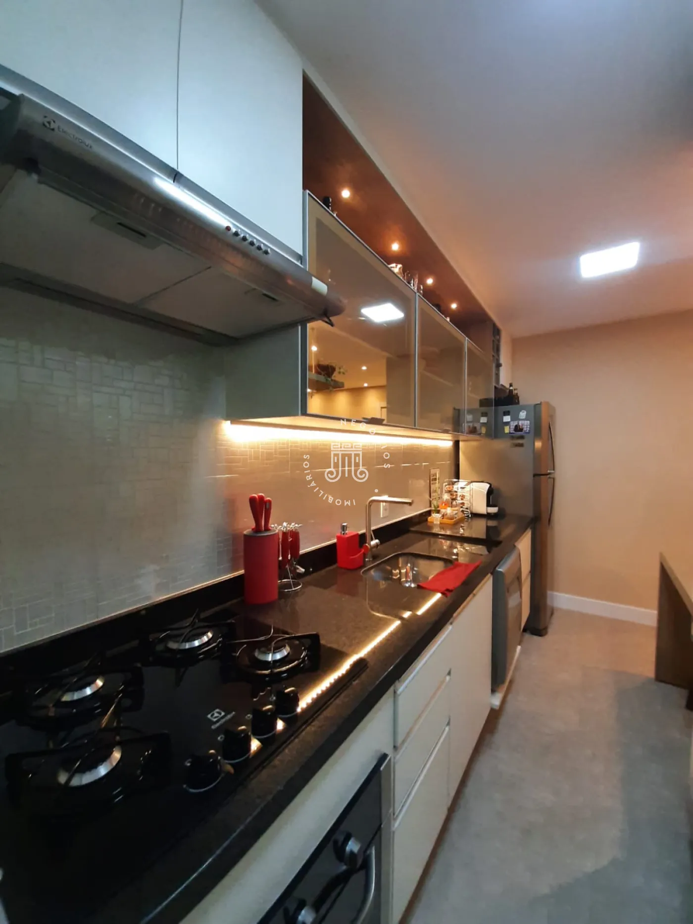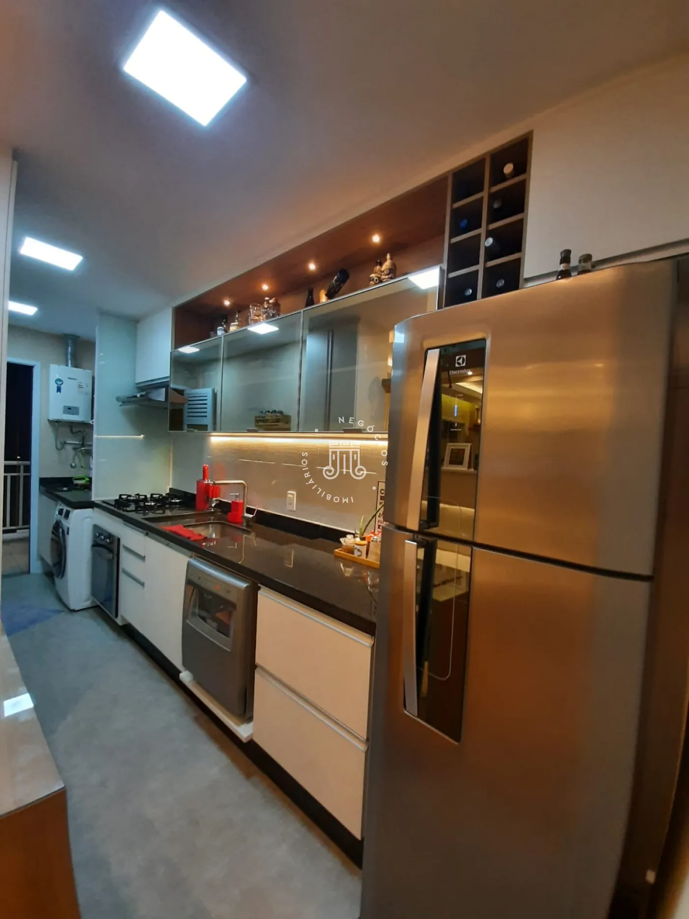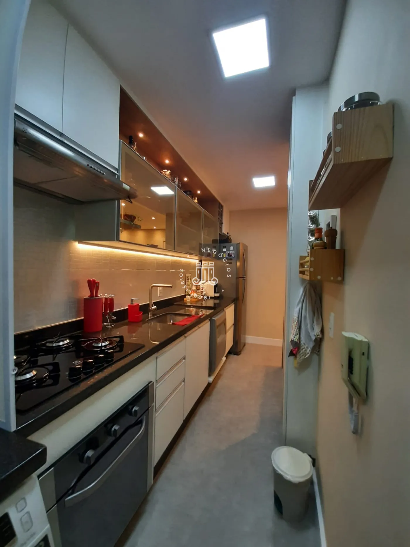 Apartamento com 02 dormitórios sendo 01 suíte com planejados, cozinha americana planejada, sala 02 ambientes, varanda envidraçada, WC social com planejados, 02 vagas de garagem descoberta.