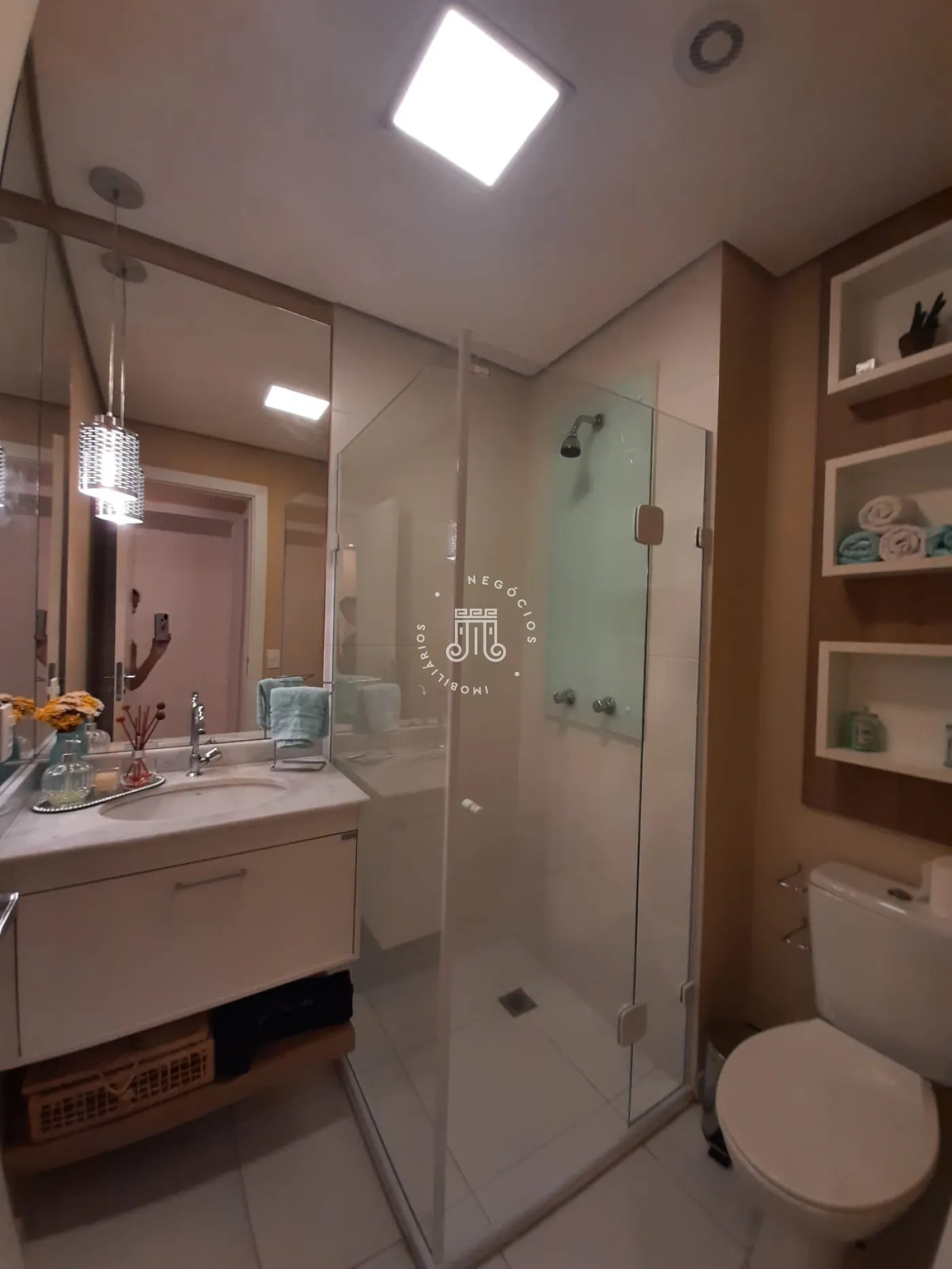 Mais conforto e espaço para receber suas visitas, Cozinha Americana, para conectar todos, onde quer que estejam, Terraço Gourmet, perfeito para curtir a vista e apreciar um bom churrasco, Lavabo, para suas visitas se sentirem em casa, sem prejudicar a privacidade da sua família, Suíte com Closet, que pode ser usada também para acomodar seu espaço de trabalho.