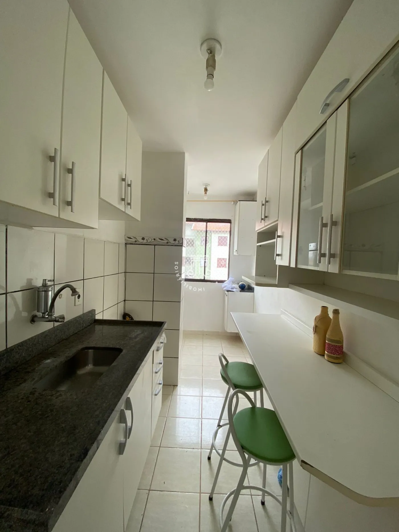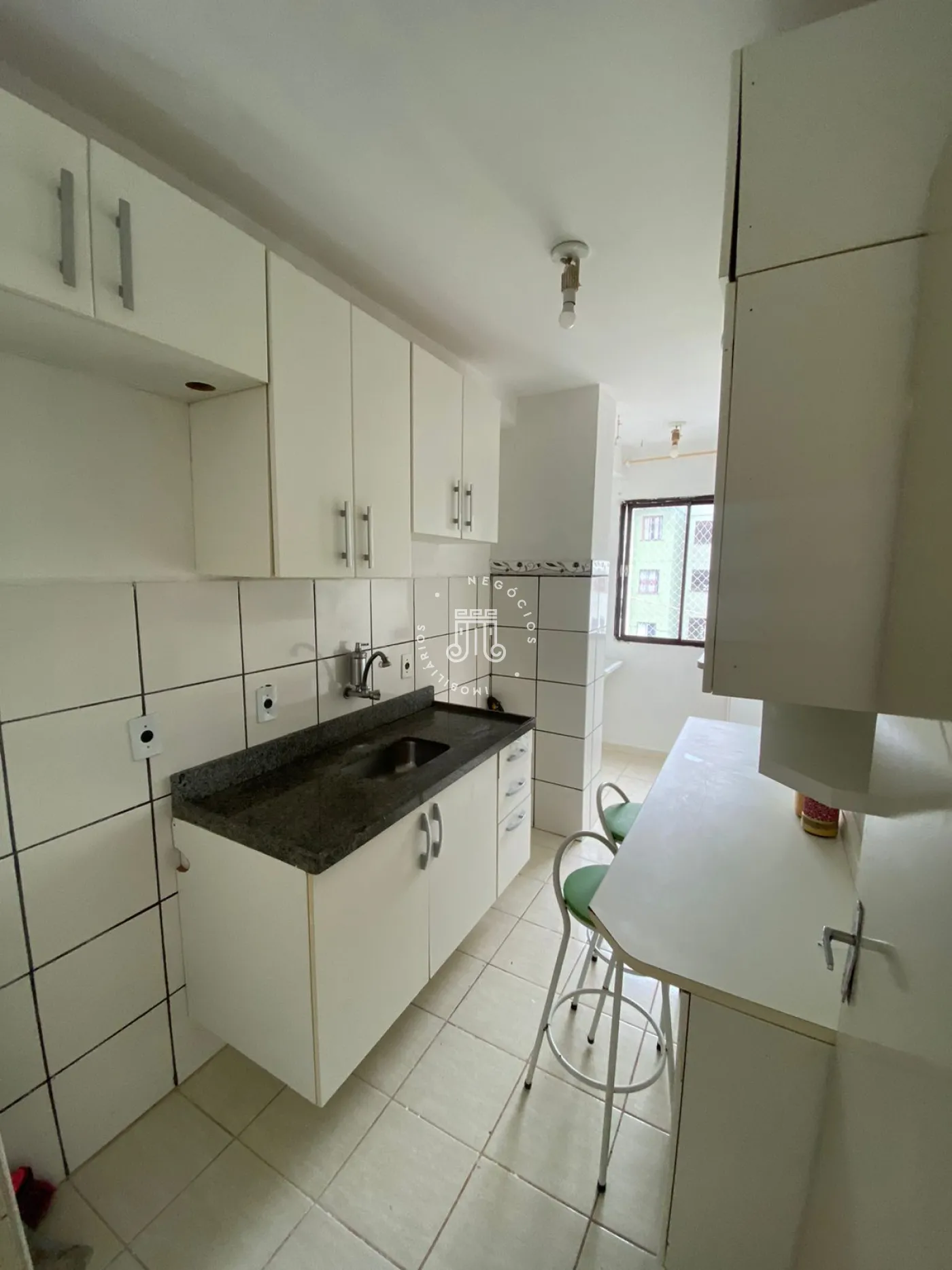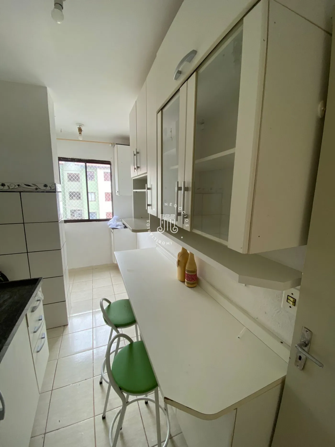 Composto por 2 dormitórios(um com guarda roupa),sala com painel, cozinha com armários, banheiro social, área de serviço com armários e 1 vaga de garagem